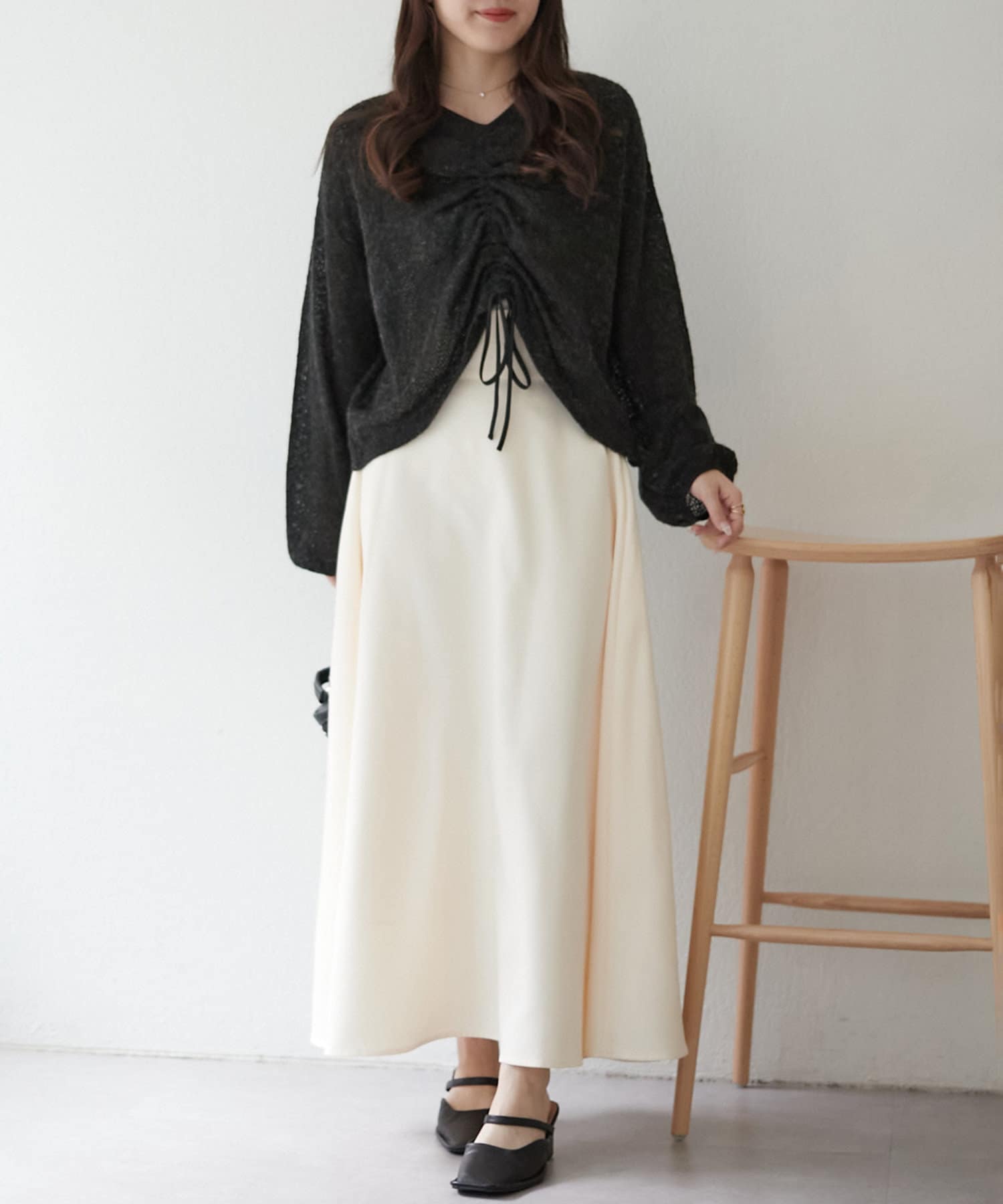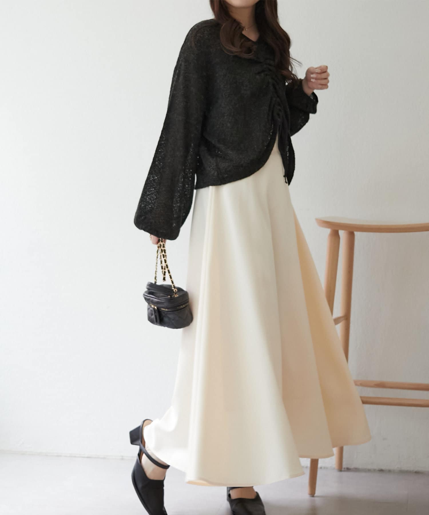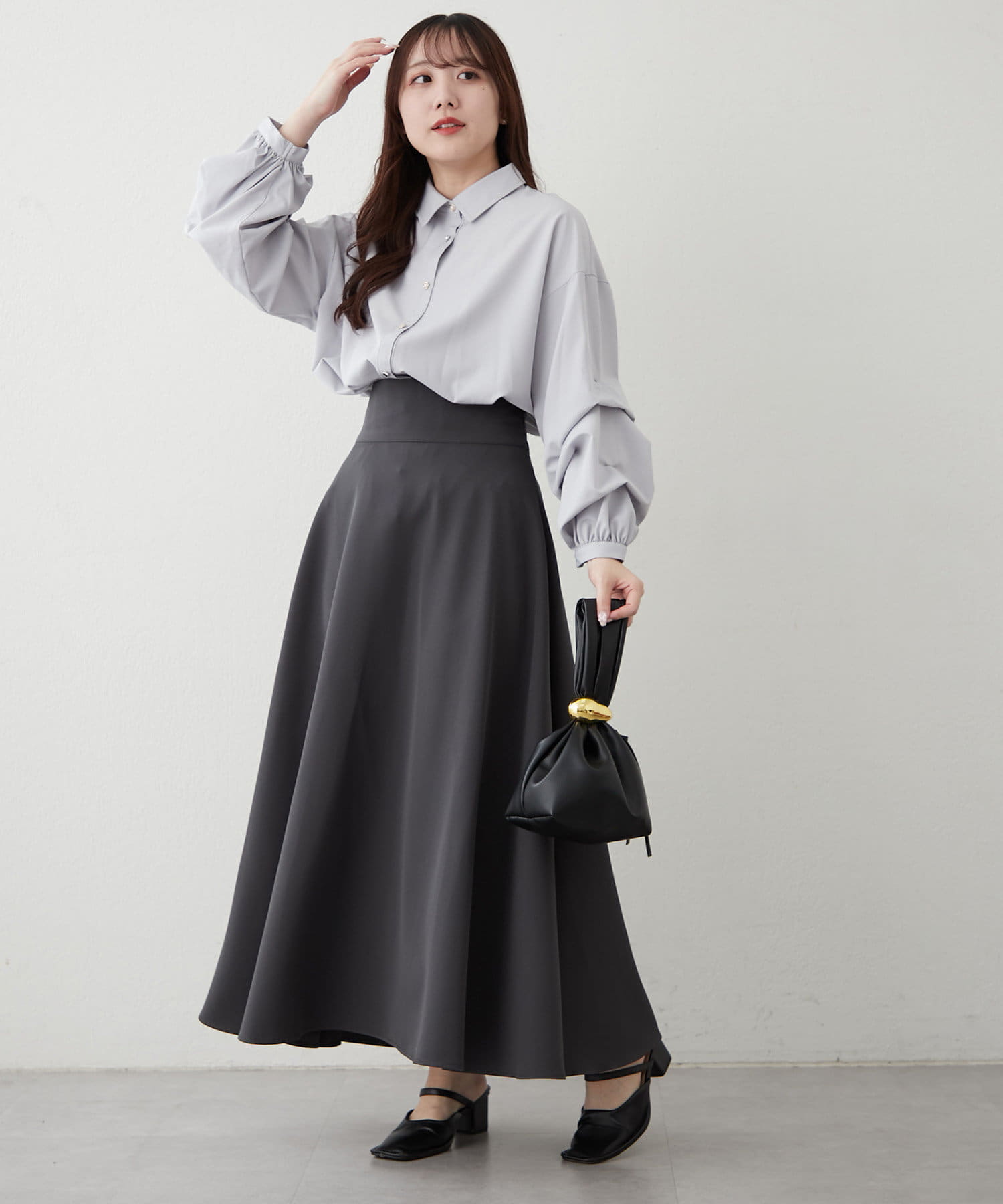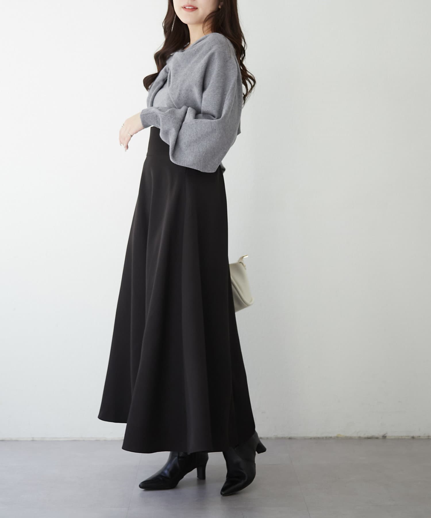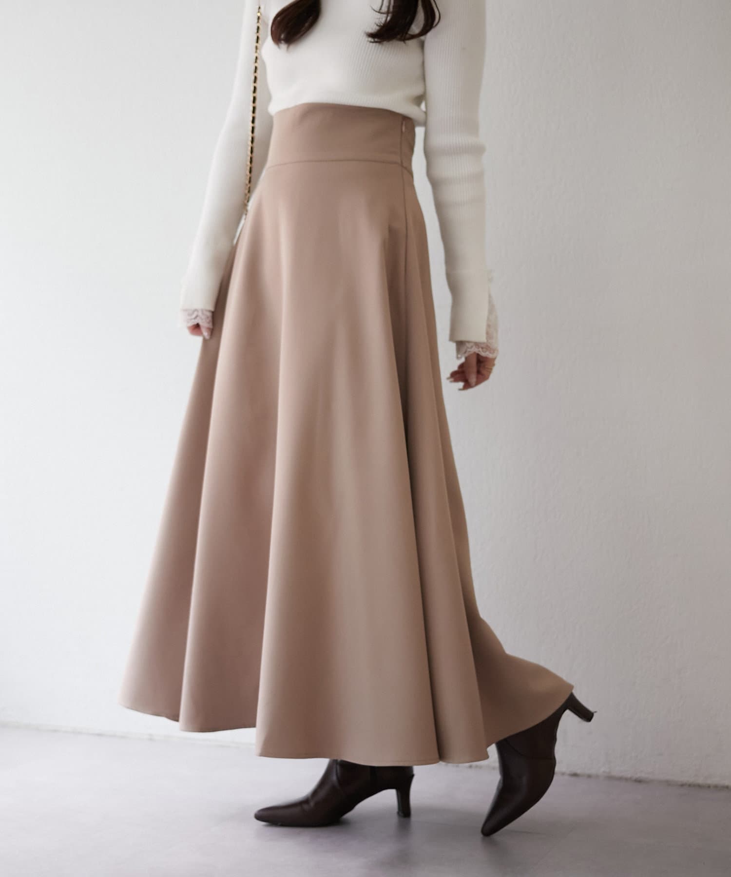 裾に向かって広がるシルエットが女性らしさをアップ。