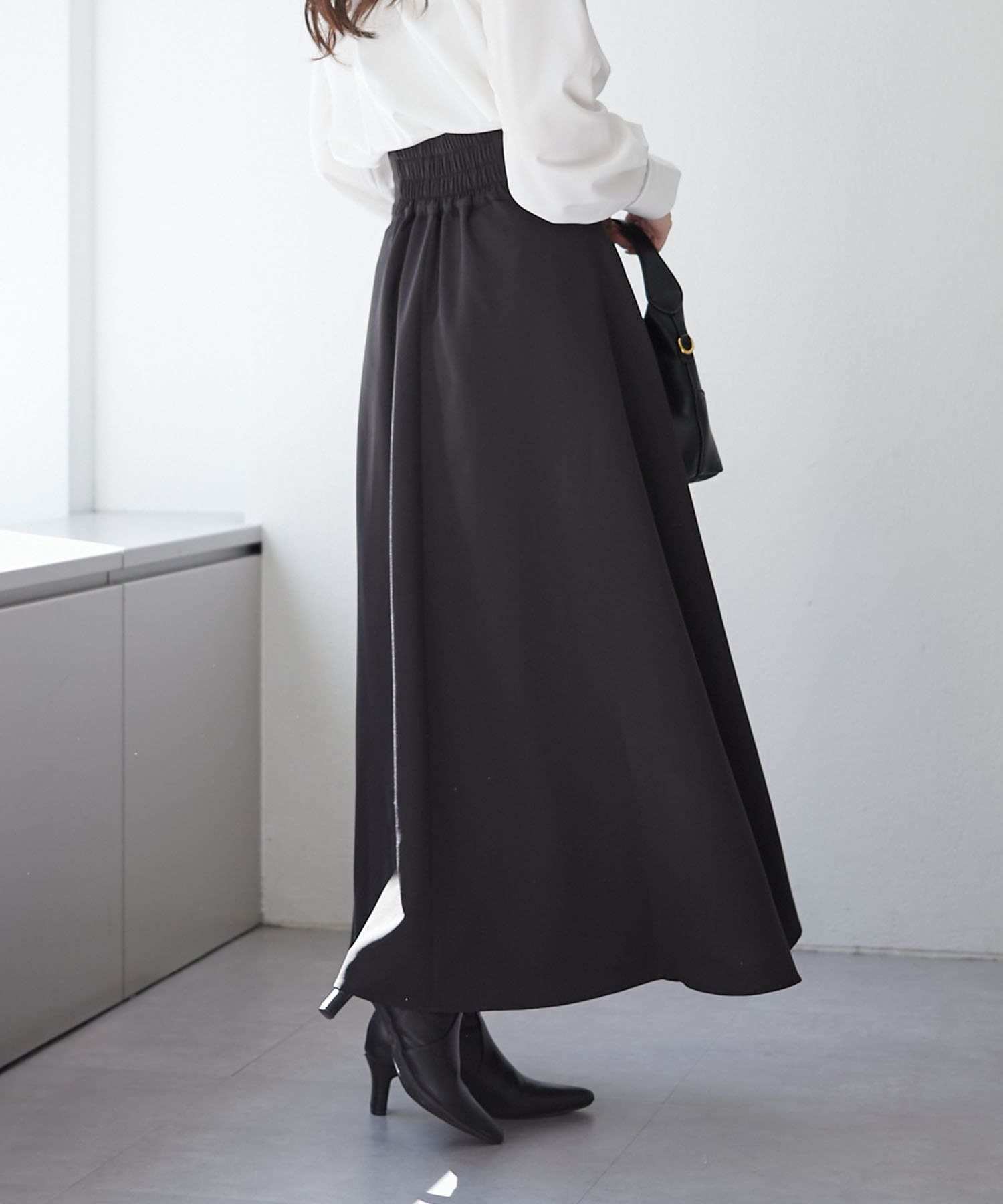シンプルそうに見えてこだわりデザインが詰まった細見えスカートです。
