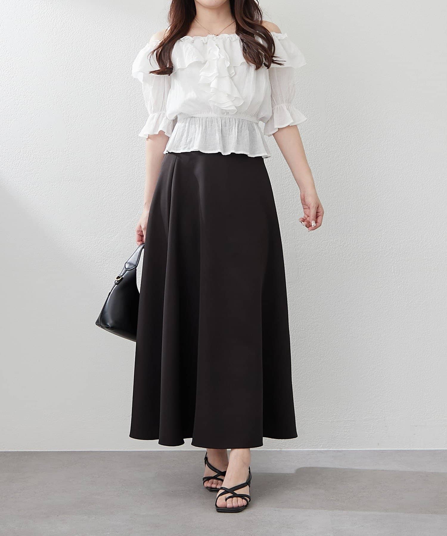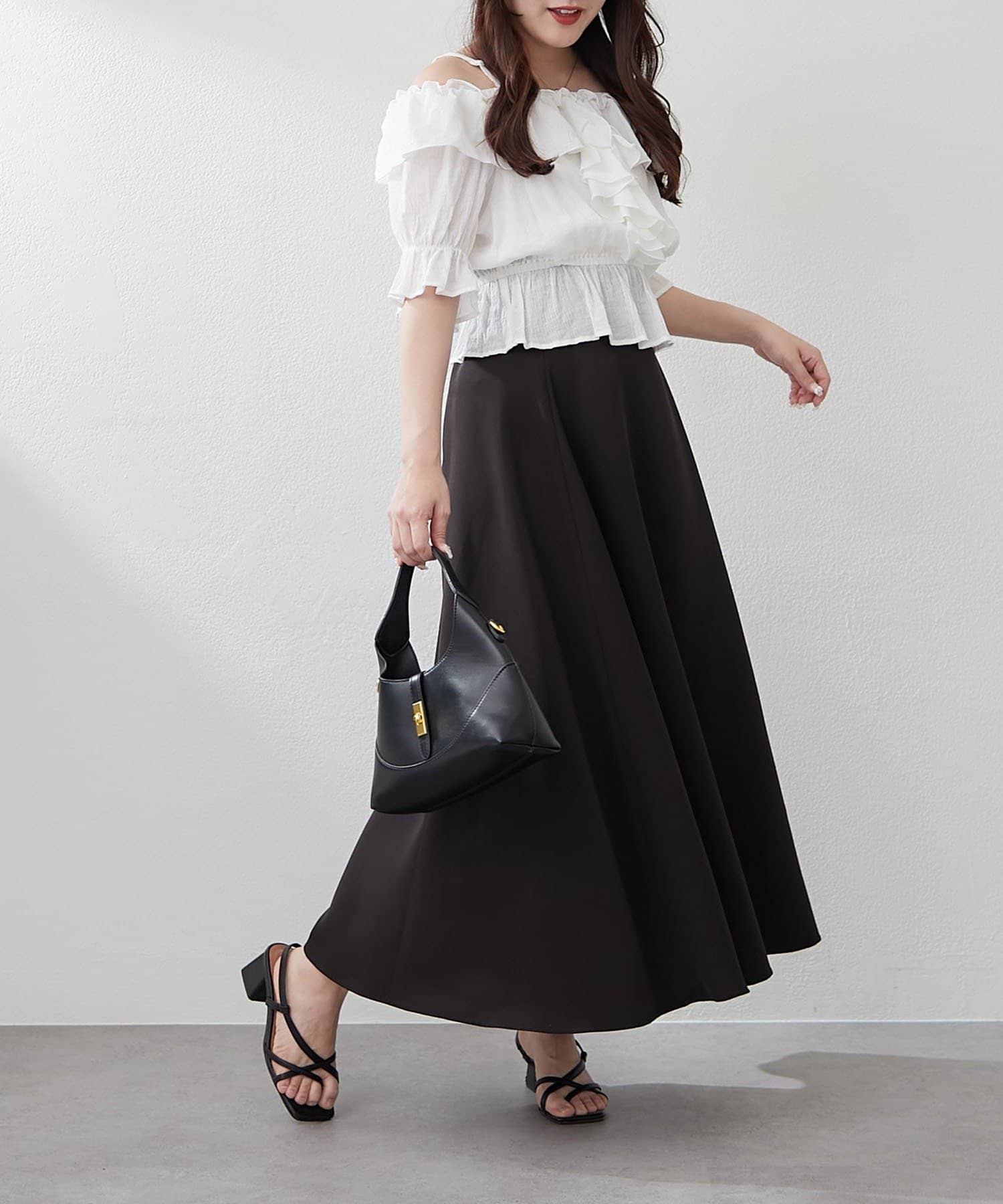 歩くたびふわっと広がるフレアが華やかな雰囲気を演出。
