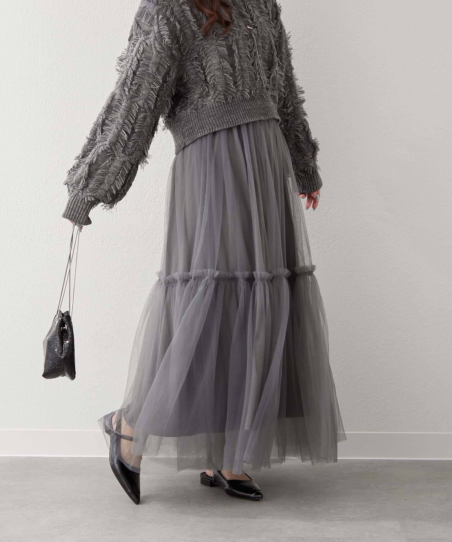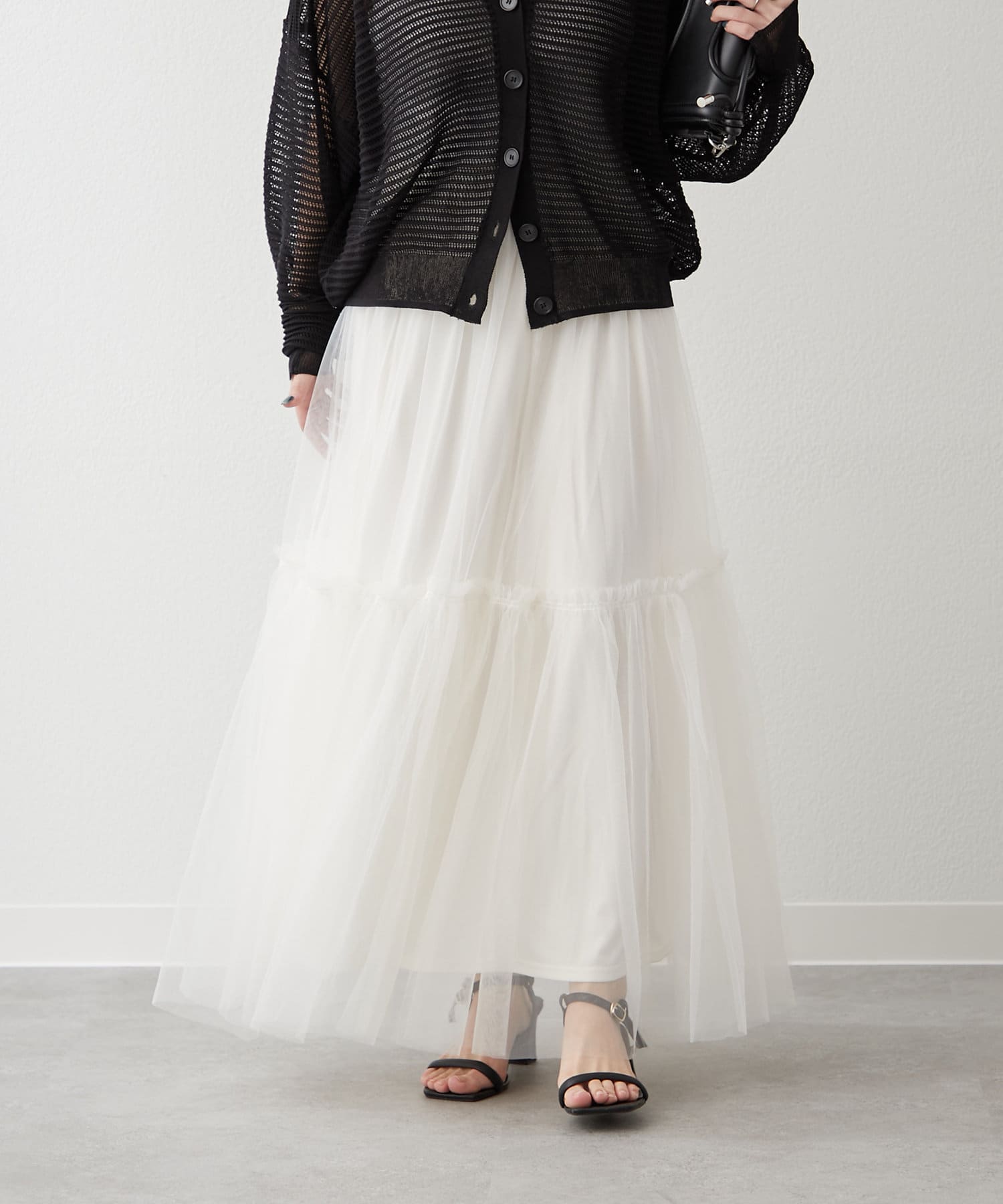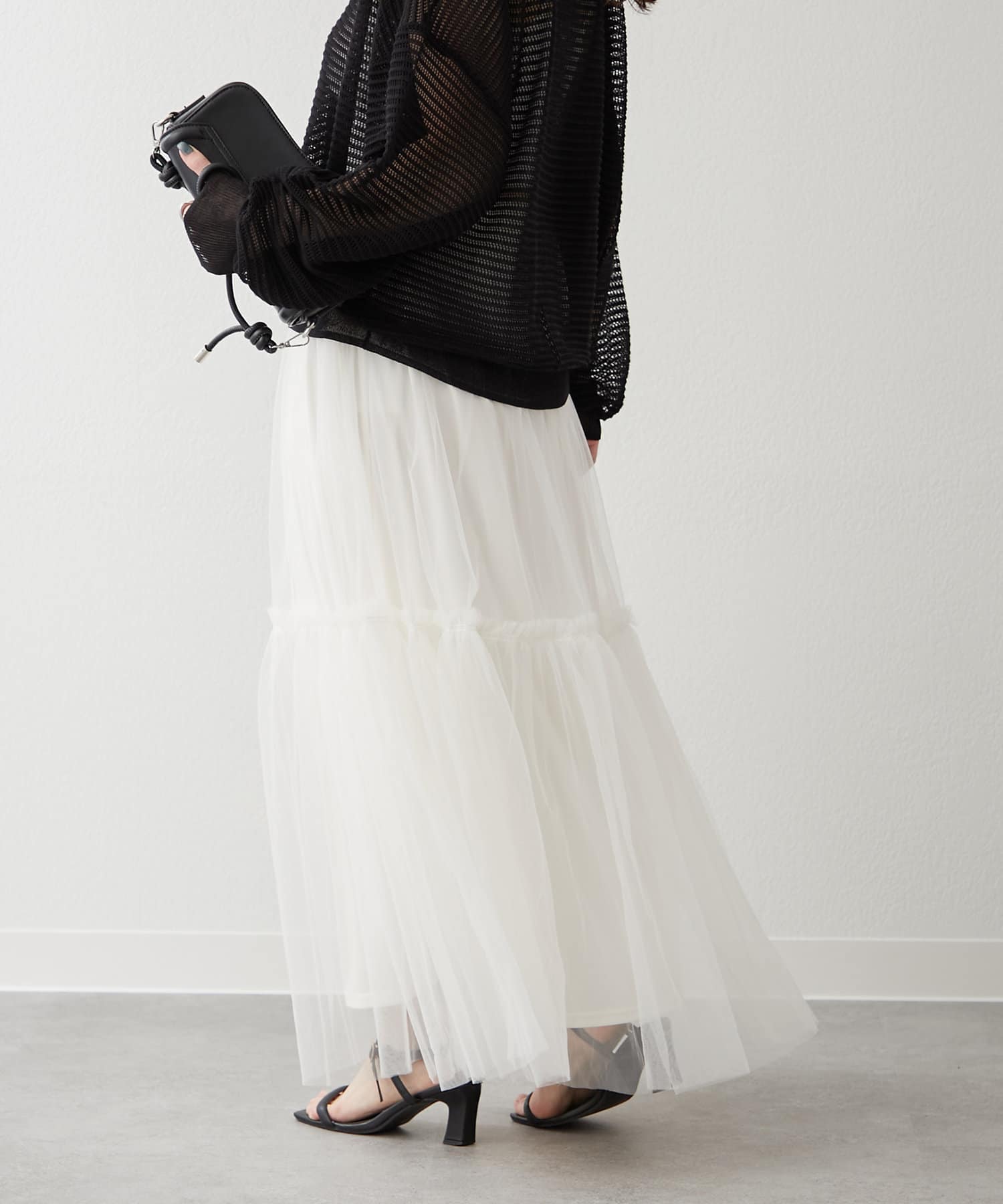 ・シーズンムード高まる軽やかなチュール素材をふんだんに使ったスカート。