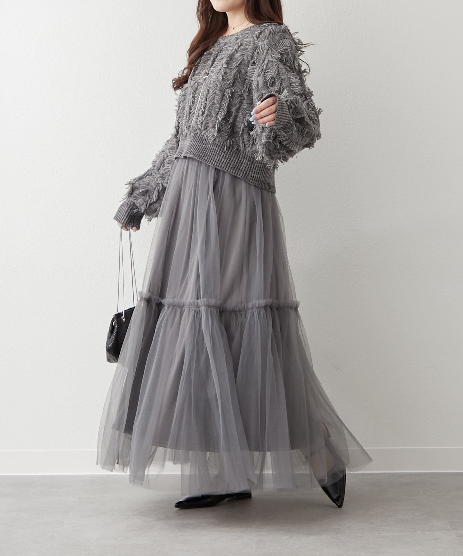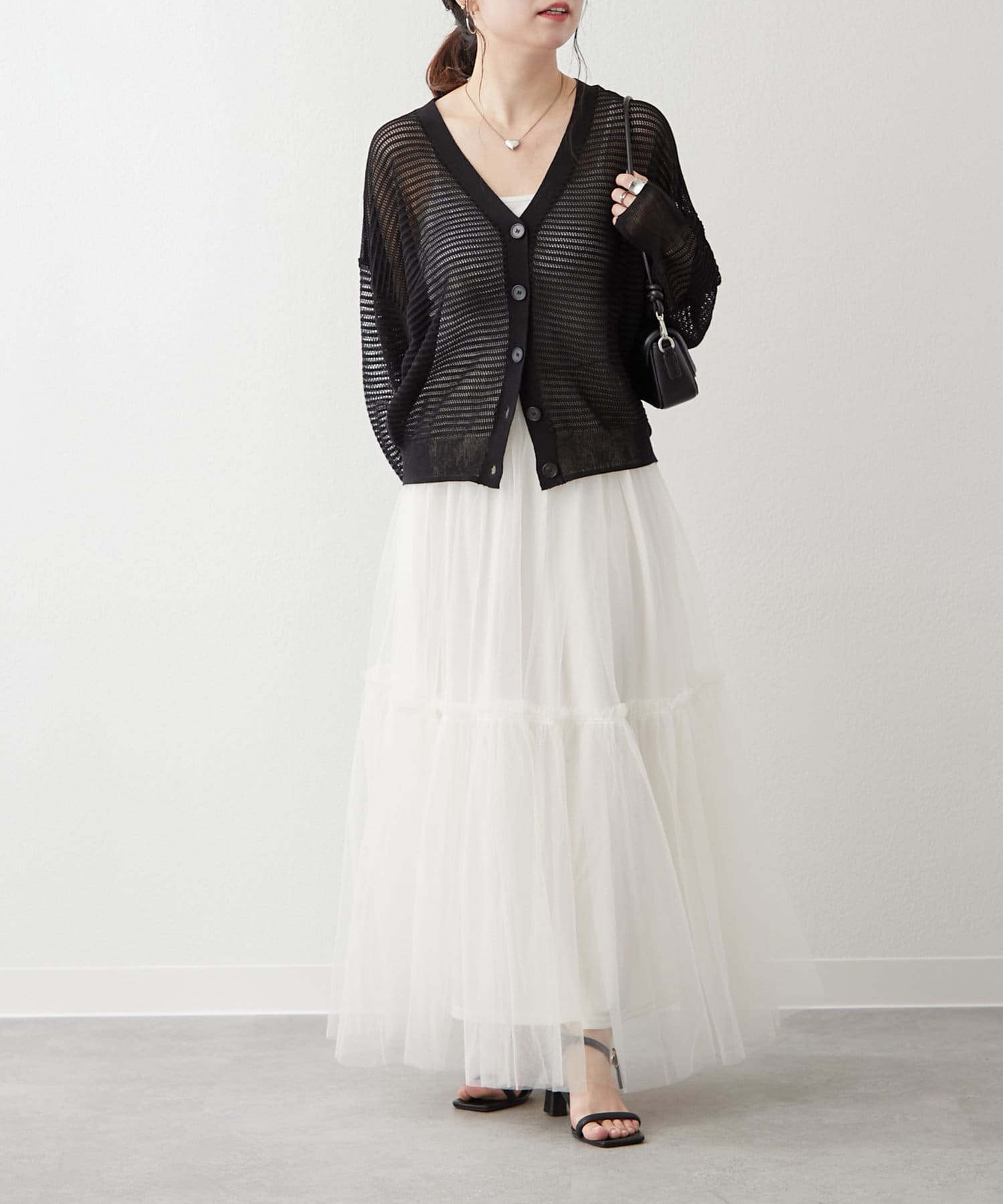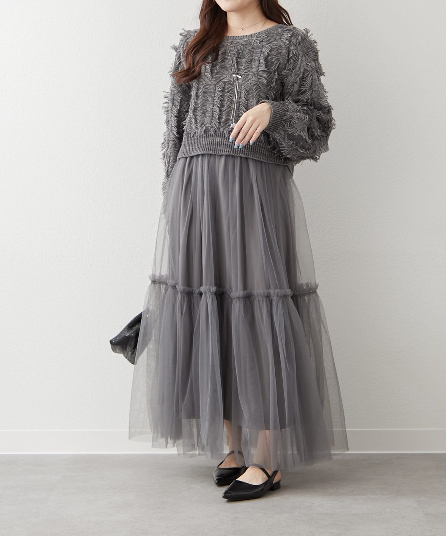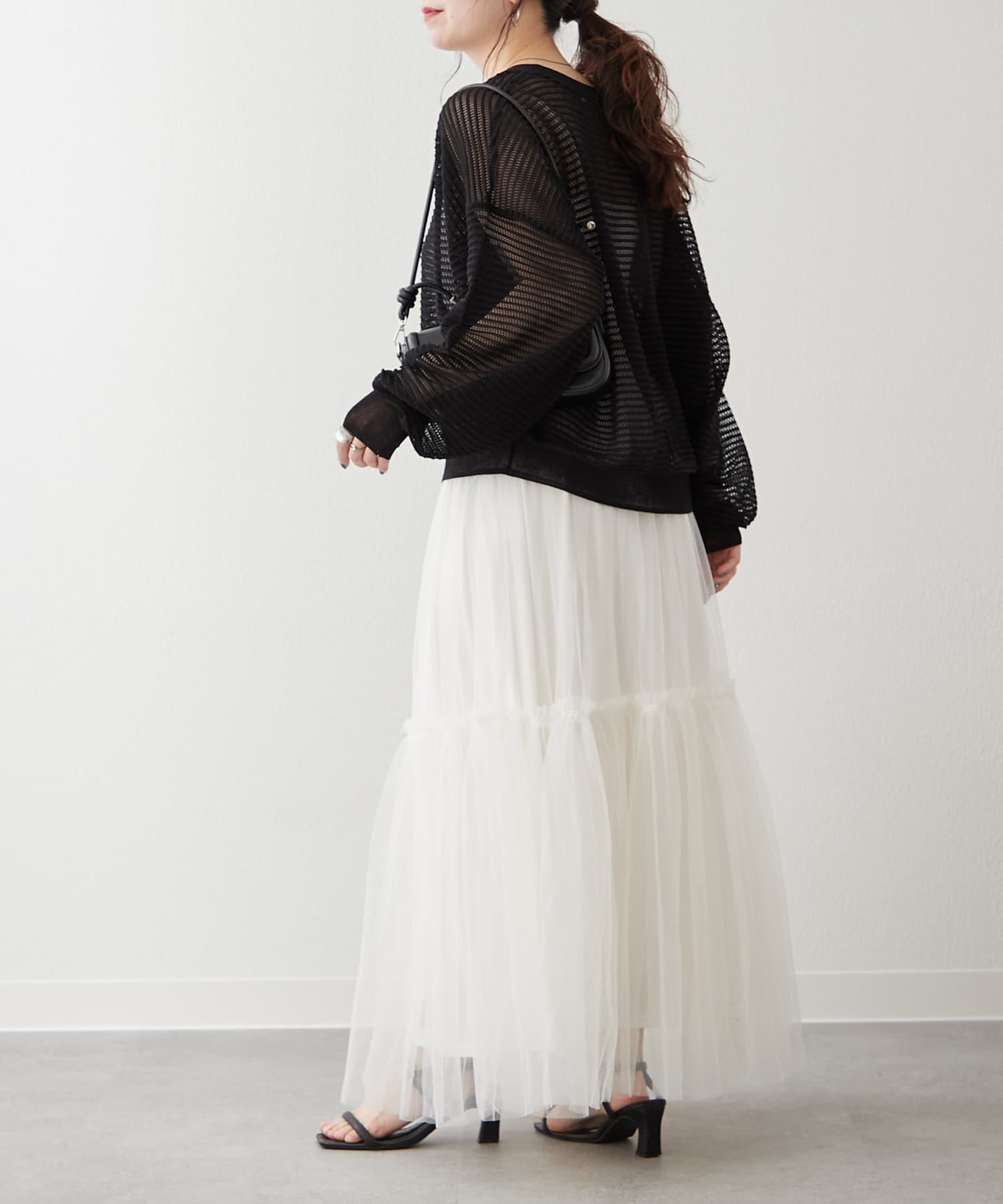 ・シーズンムード高まる軽やかなチュール素材をふんだんに使ったスカート。