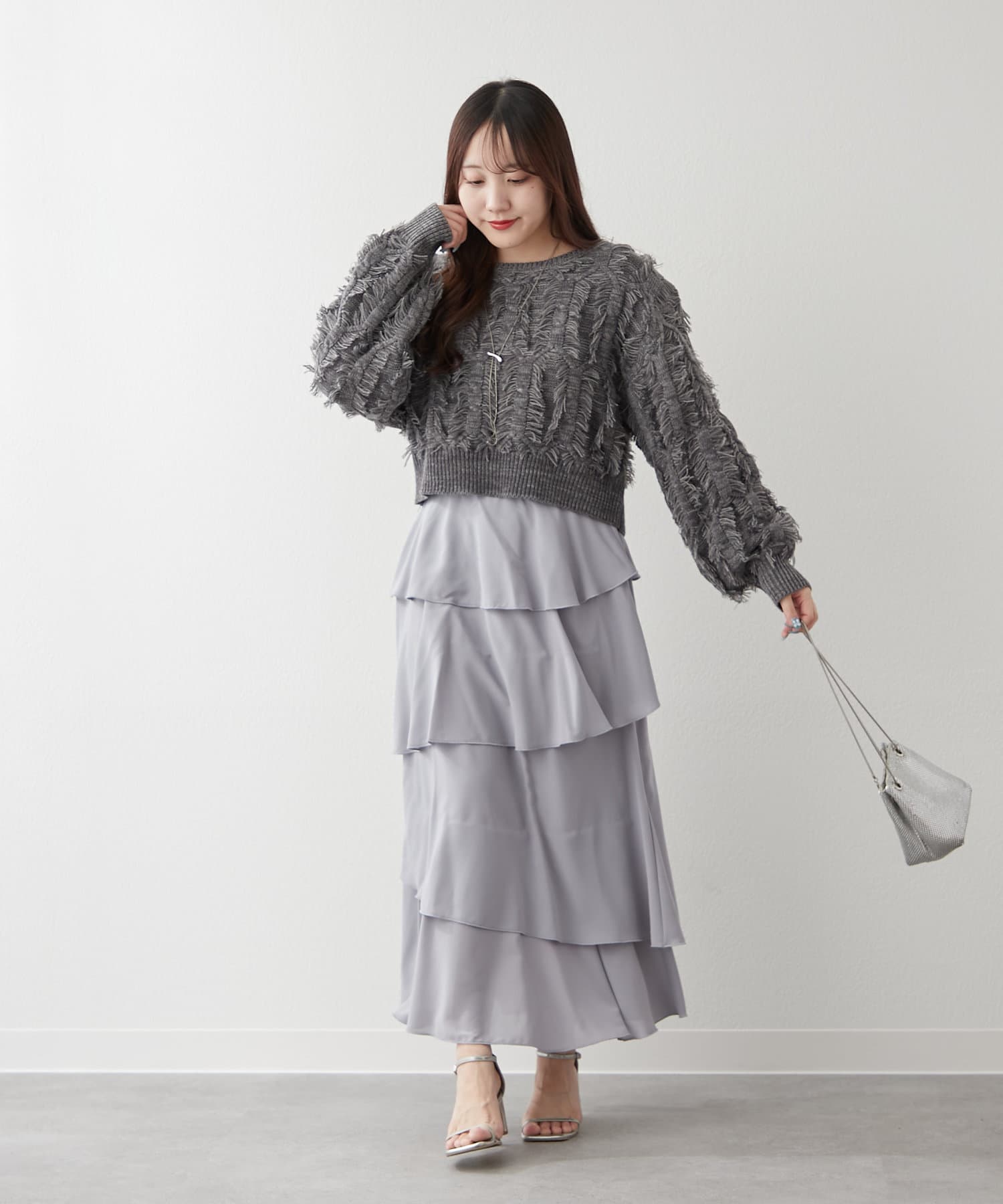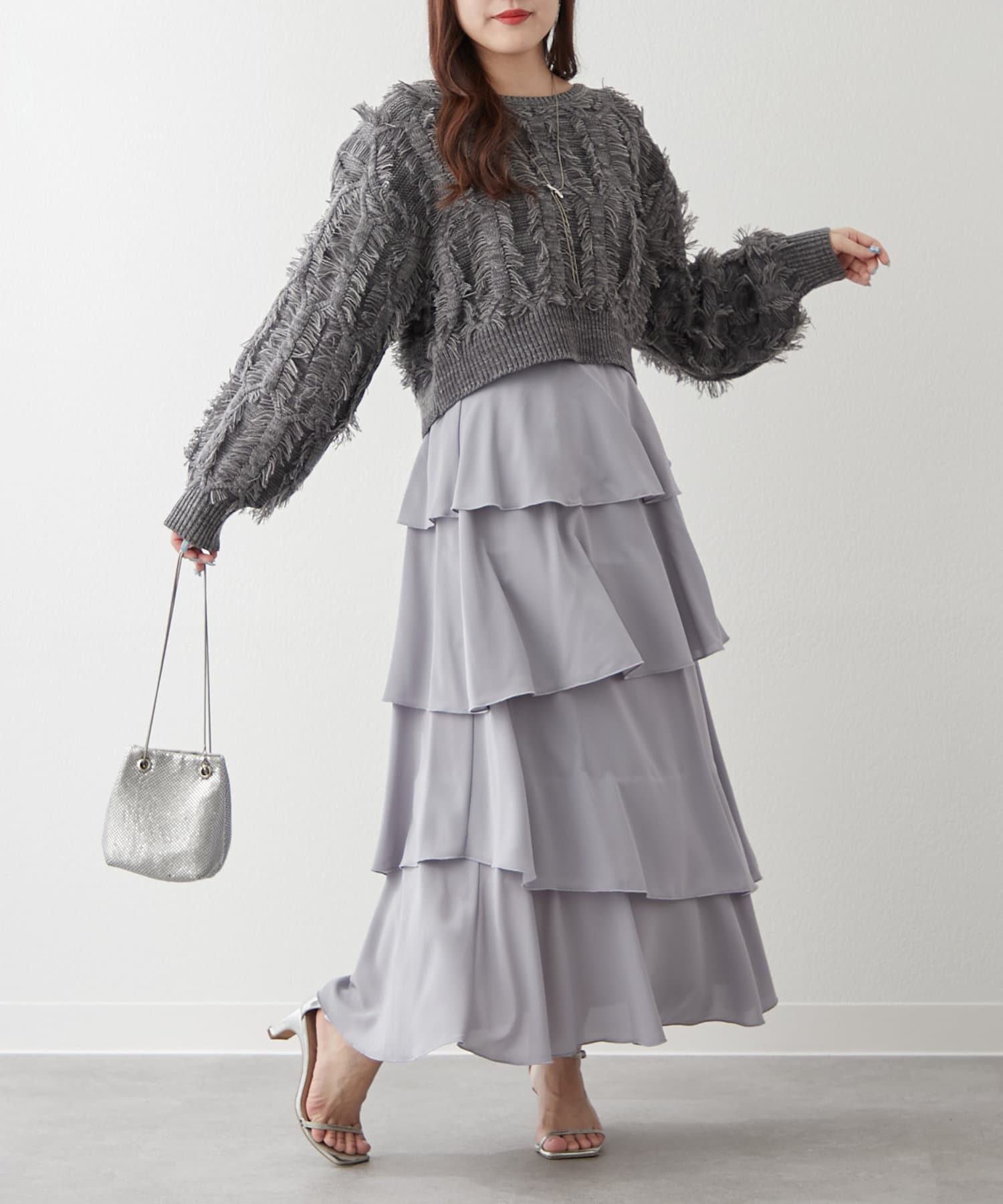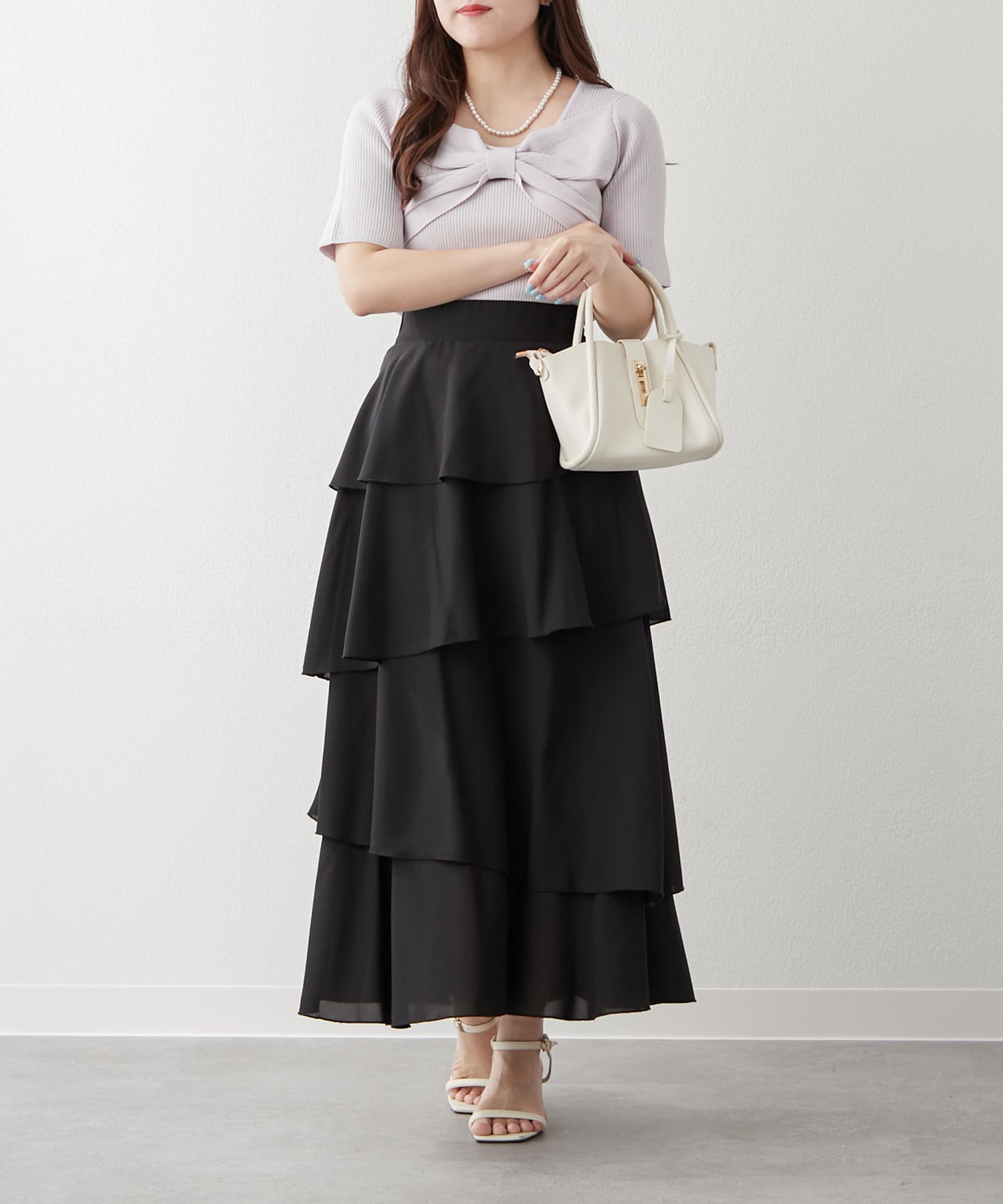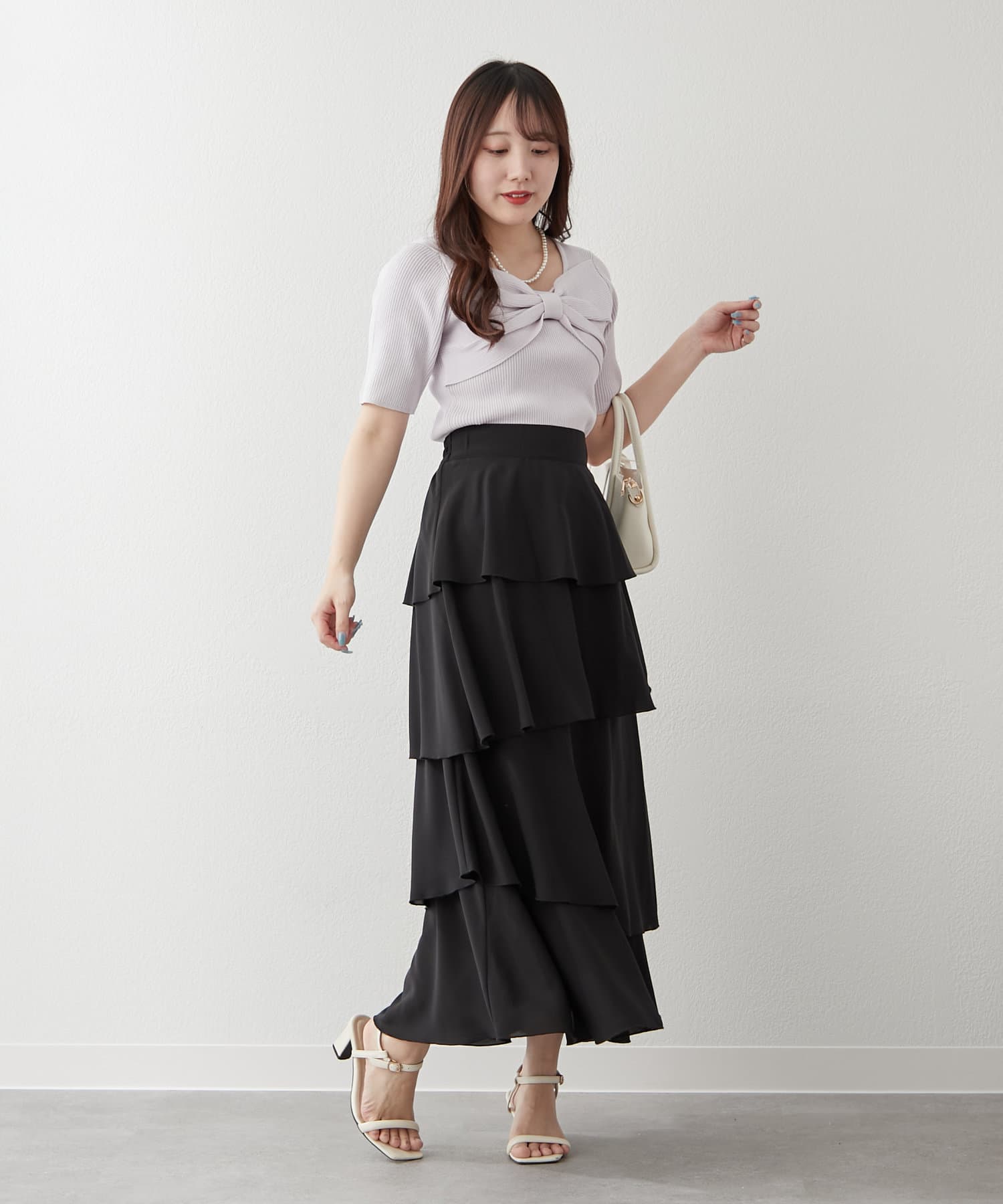 ・アシンメトリーに配置されたティアードが動くたびにふわっと揺れるスカート