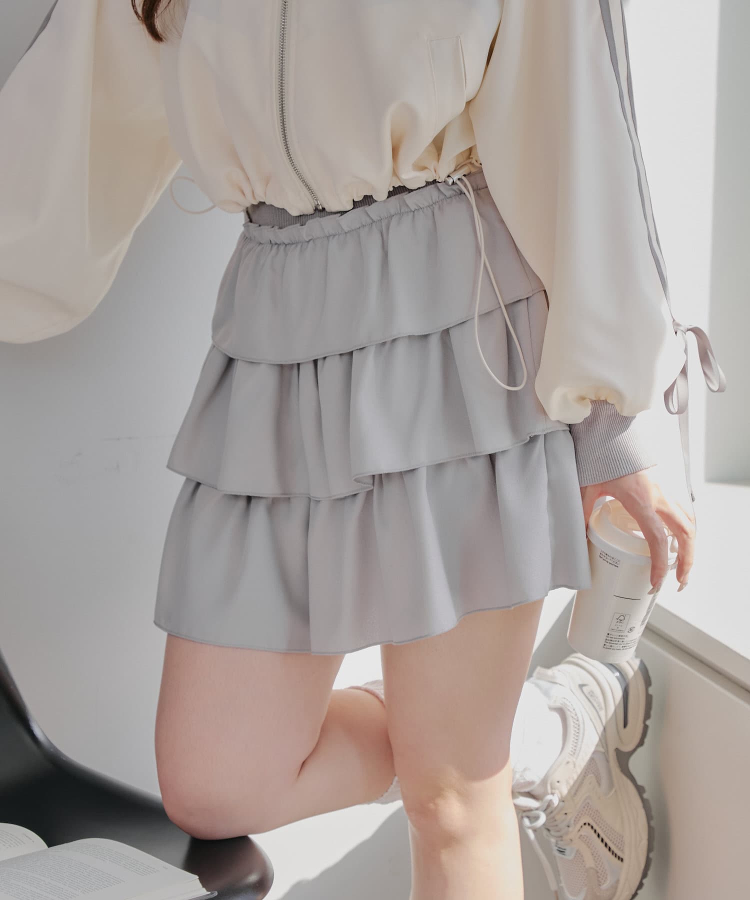 ・ミニ丈ティアードが今年らしい印象のガーリーなスカート