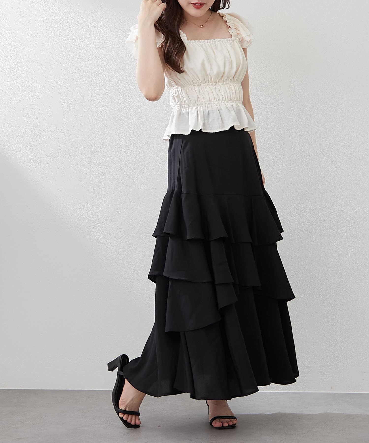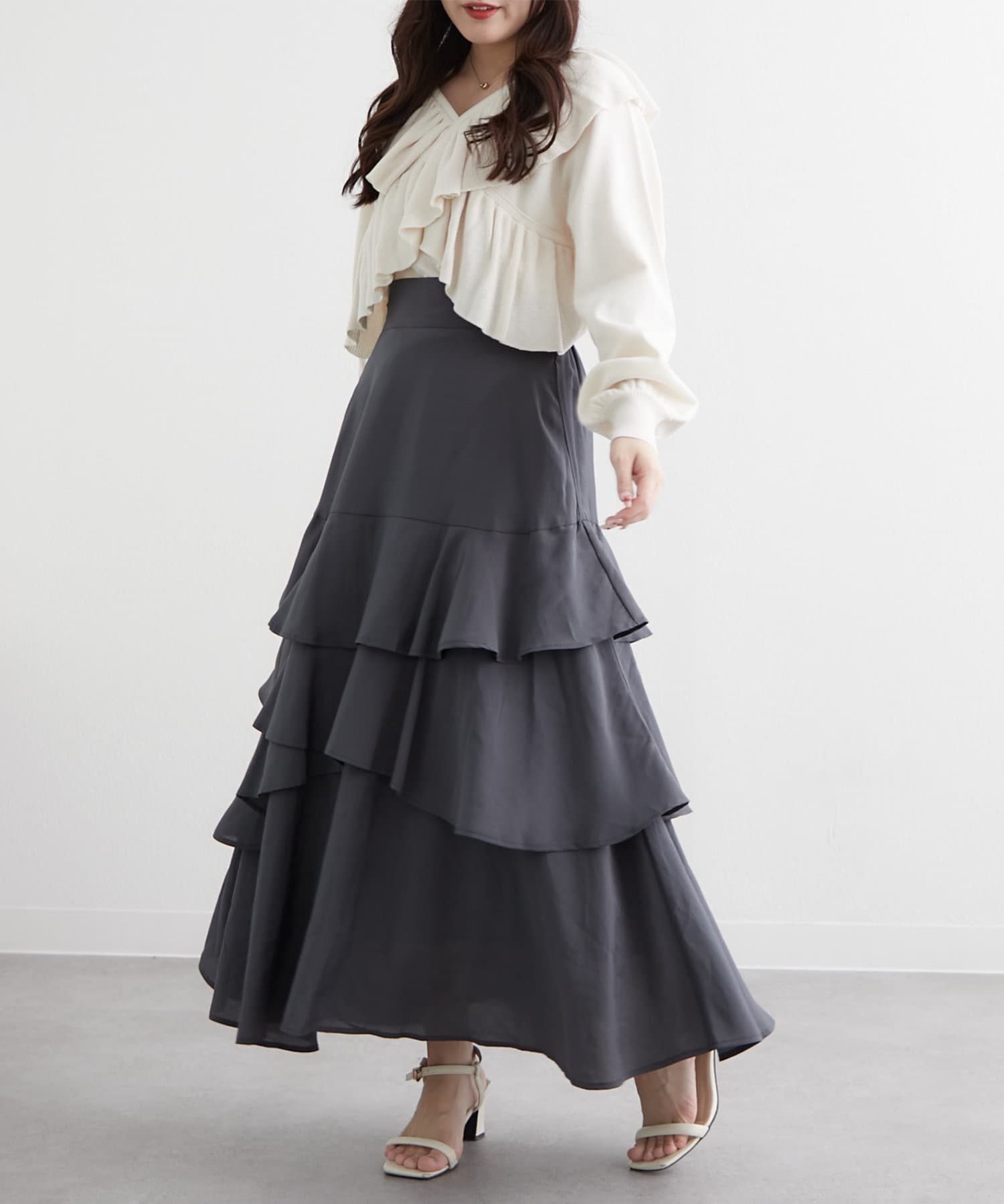 ・どんな瞬間でも可愛く決まるアシンメトリーティアードスカート♪