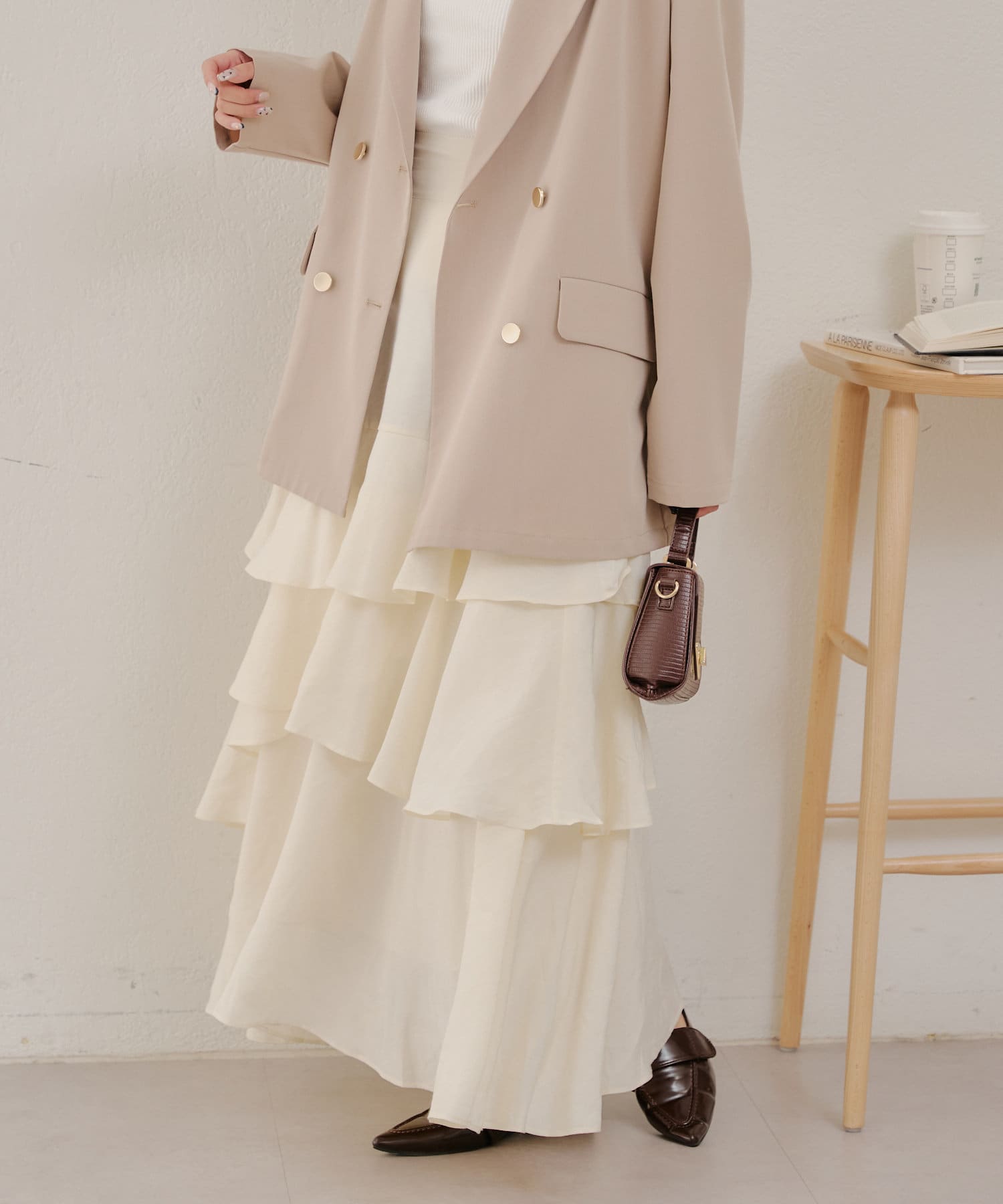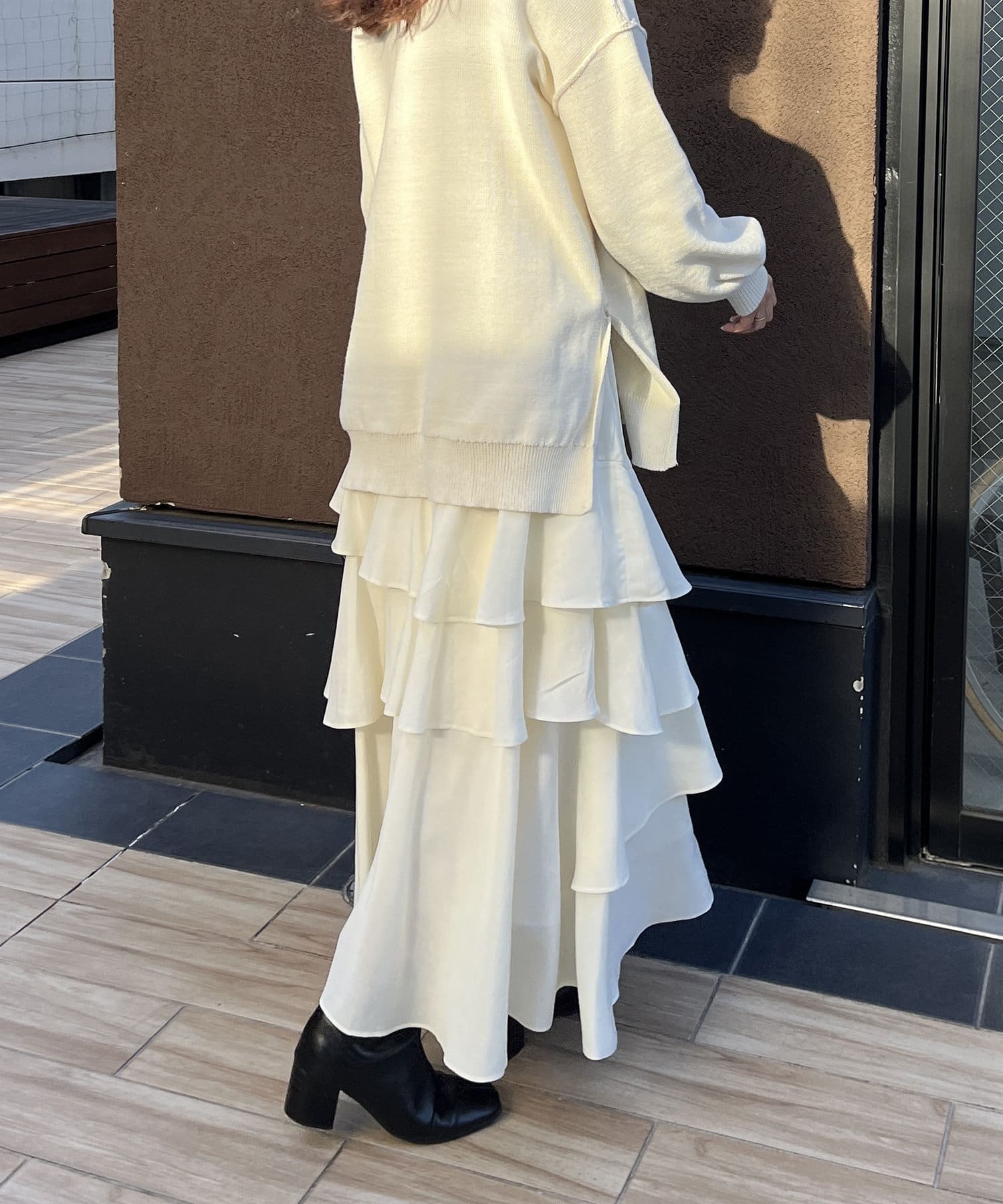 ・ティアードがヒップより下から始まるから、腰回りがスッキリ見えるように拘ったシルエットです!