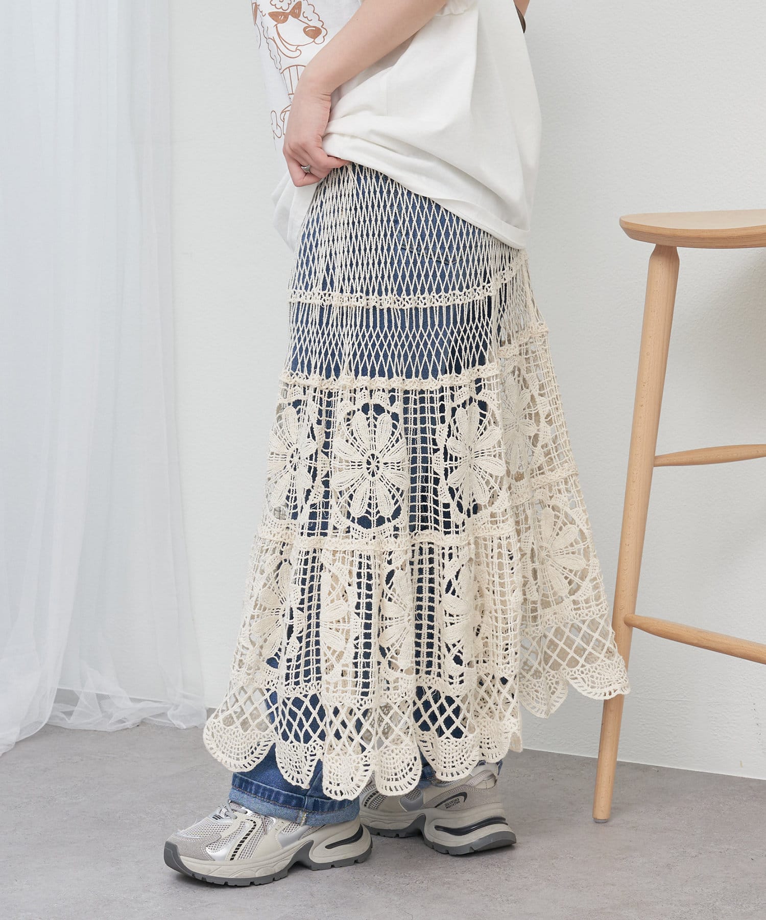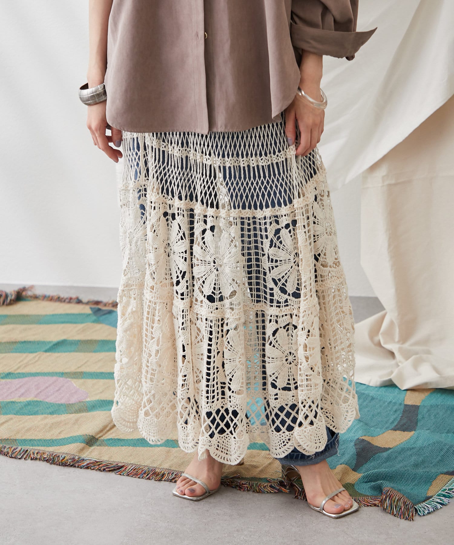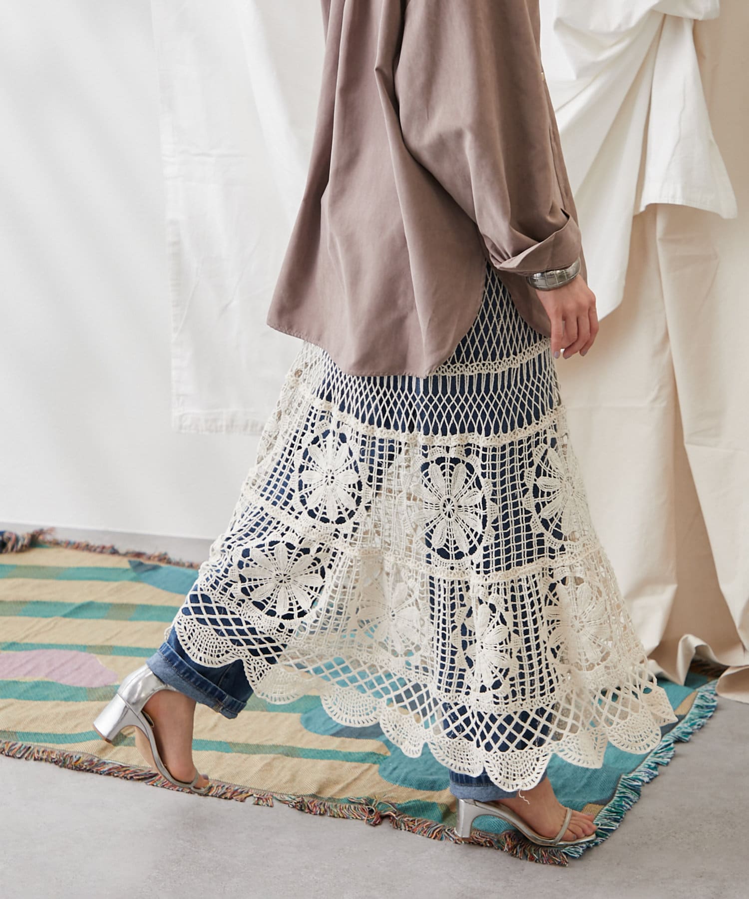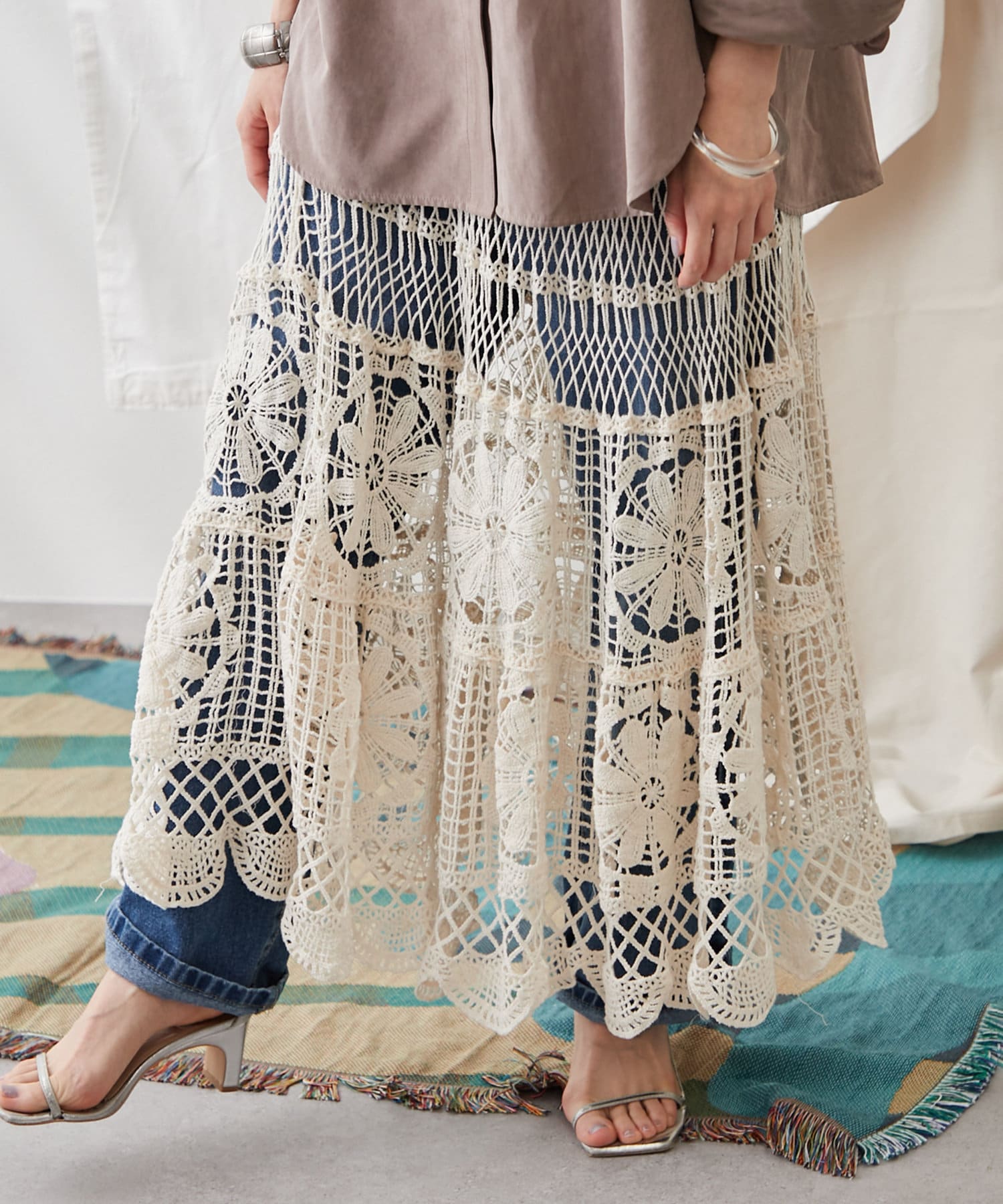 ・かぎ針編みが程よい抜け感を出してくれるスカート