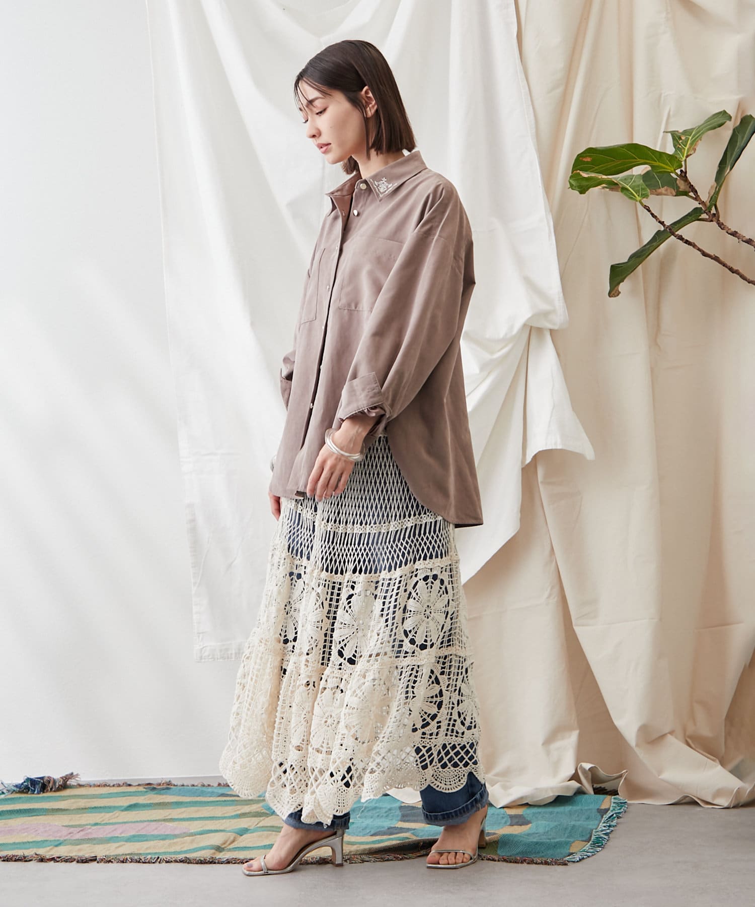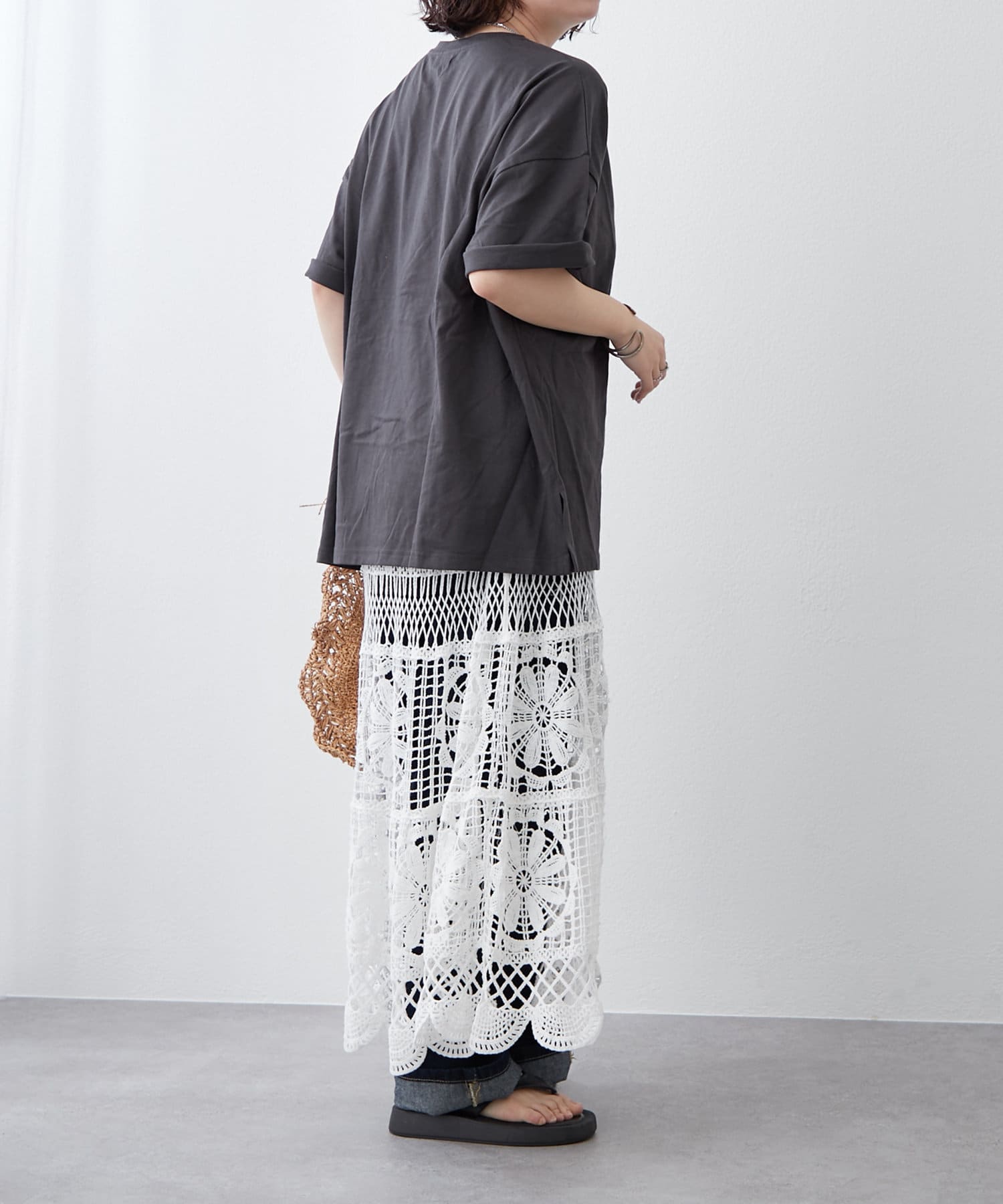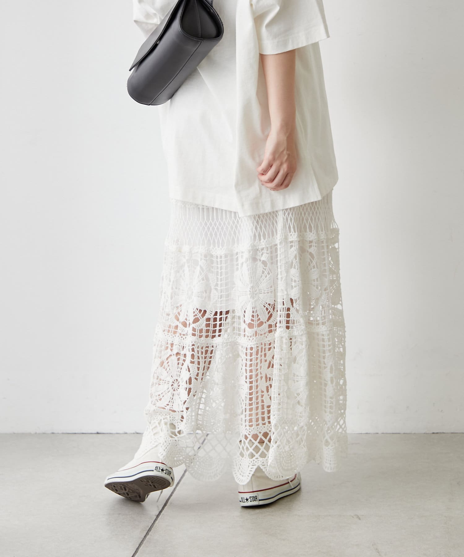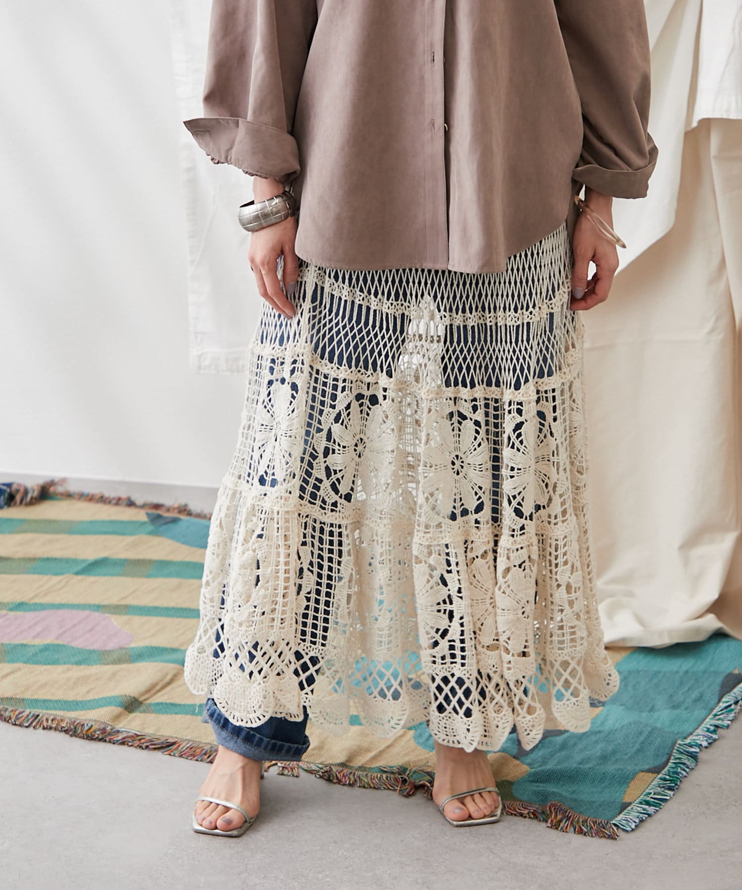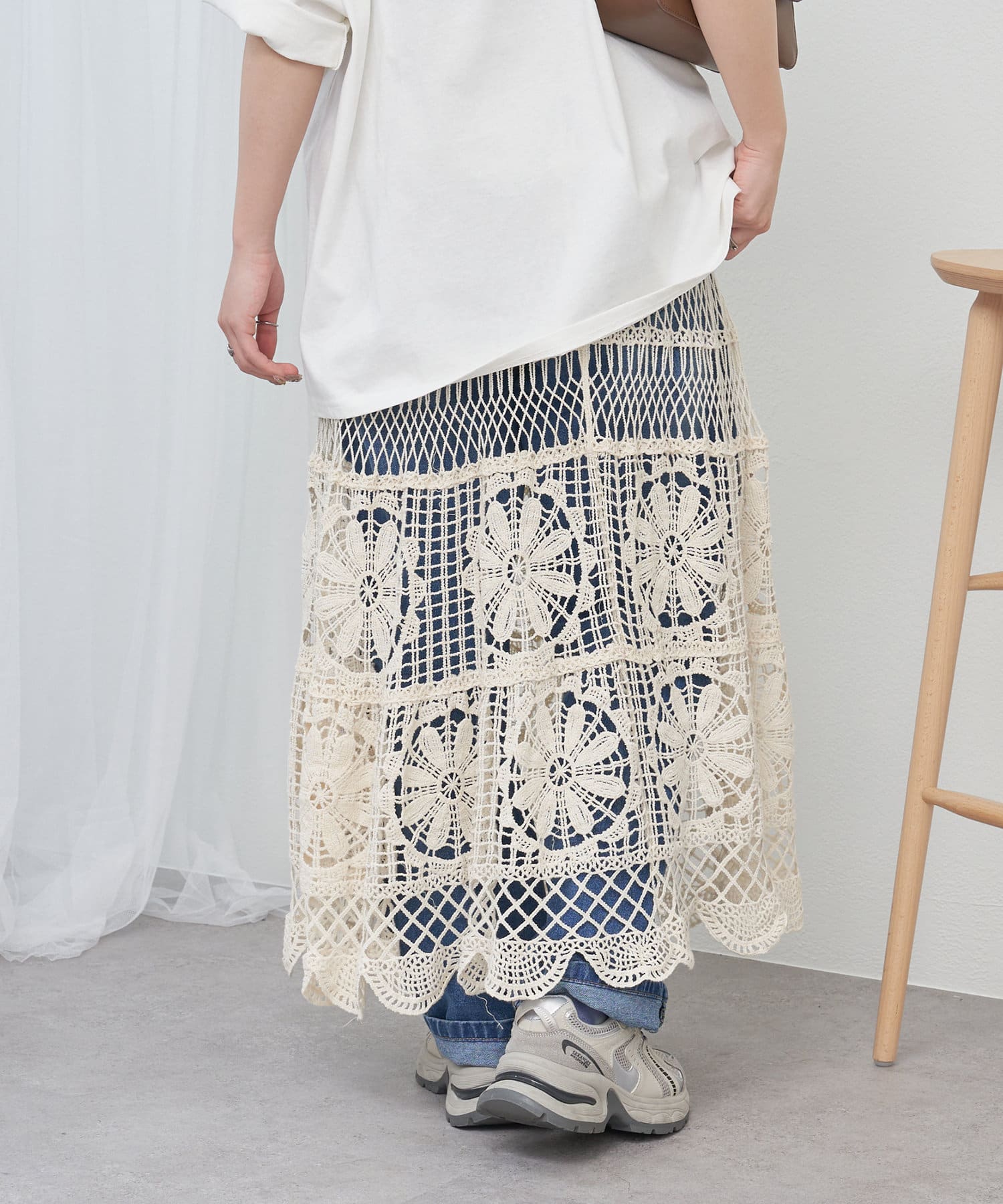 ・かぎ針編みが程よい抜け感を出してくれるスカート