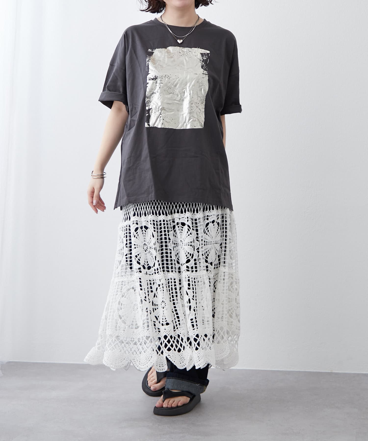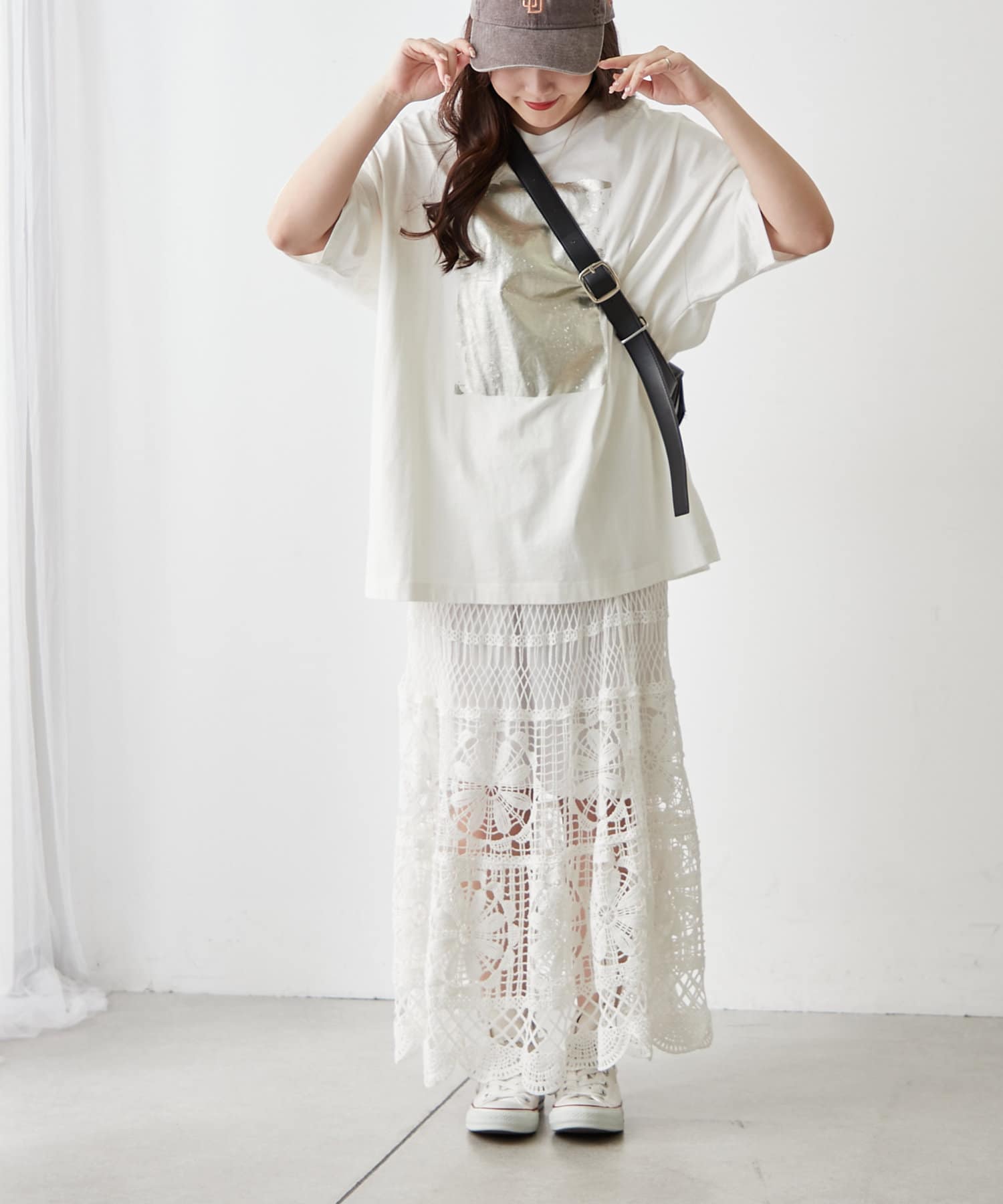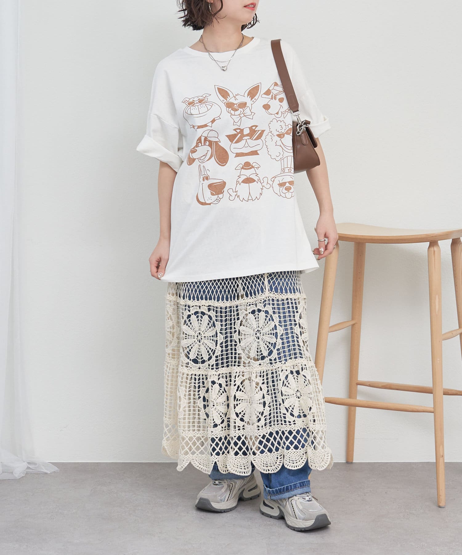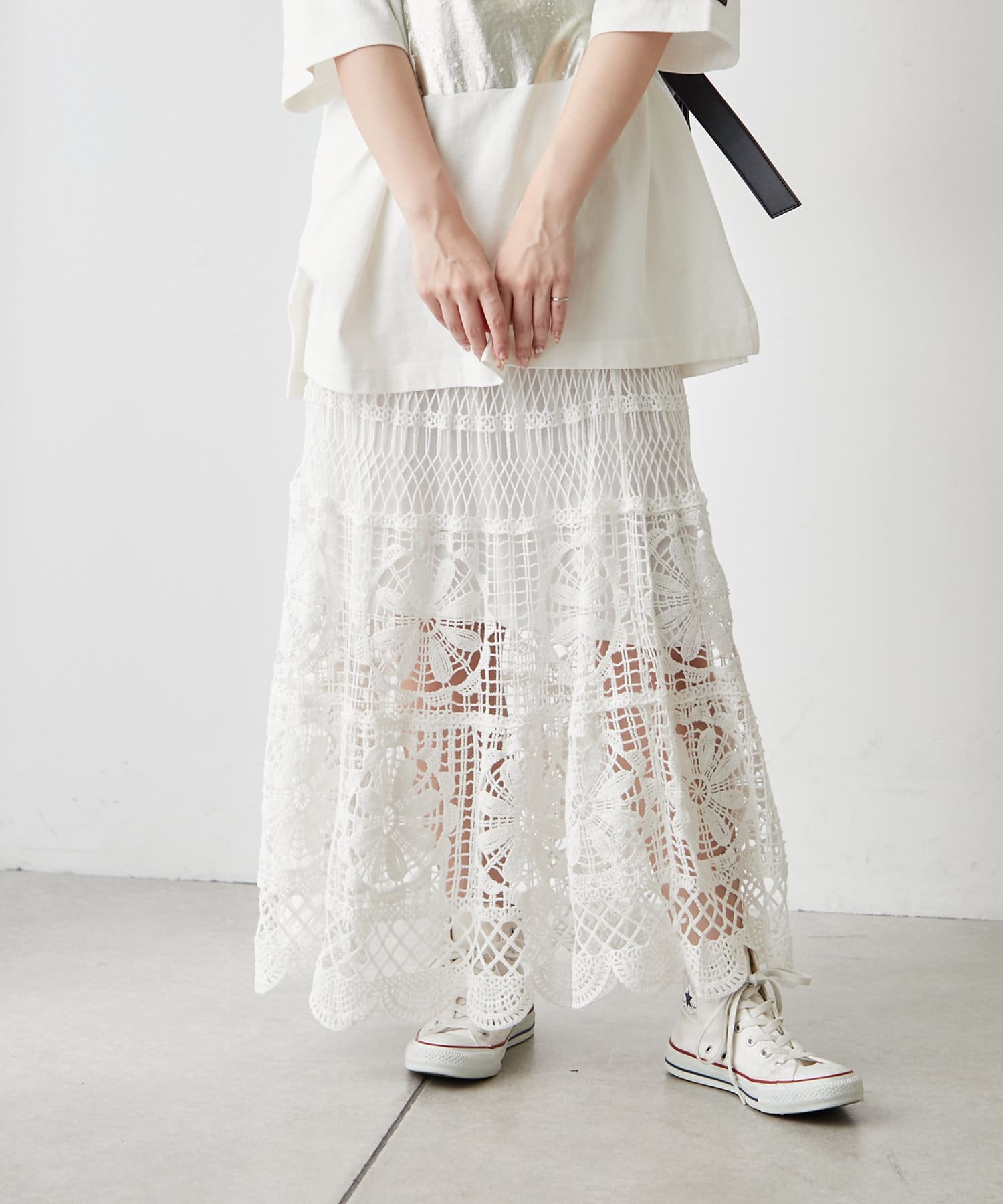 ・かぎ針編みが程よい抜け感を出してくれるスカート