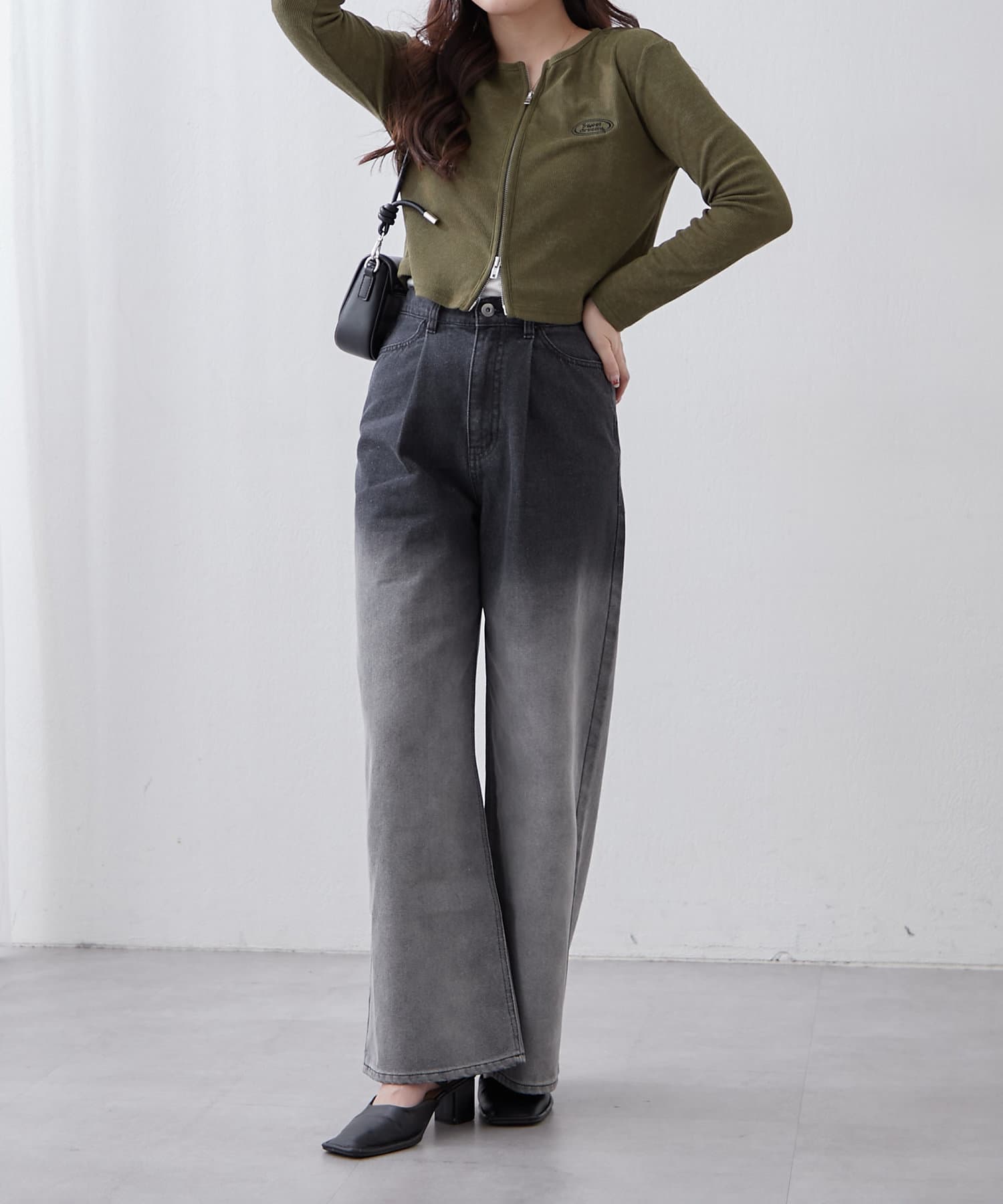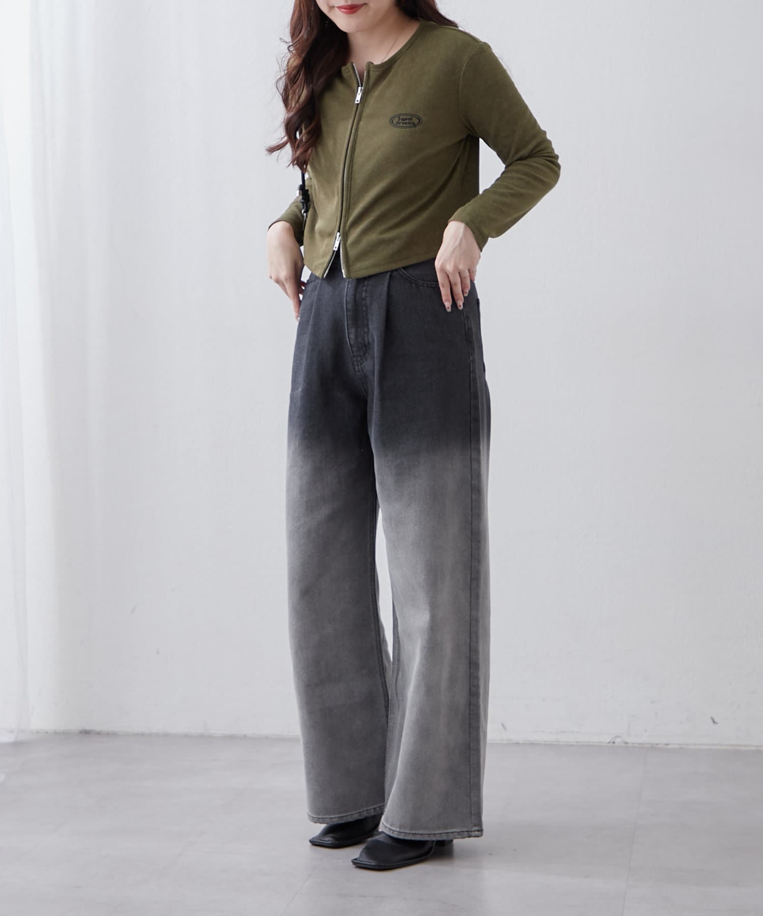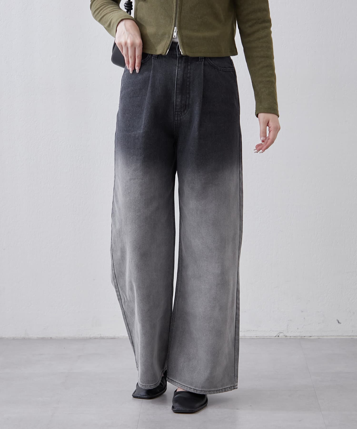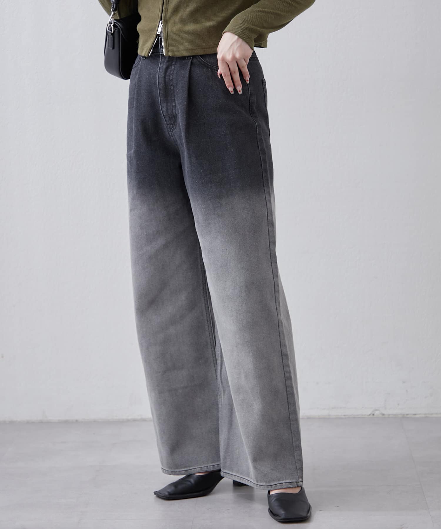 ・フロントに入ったタックにより、すとんとしたワイドシルエットが魅力。