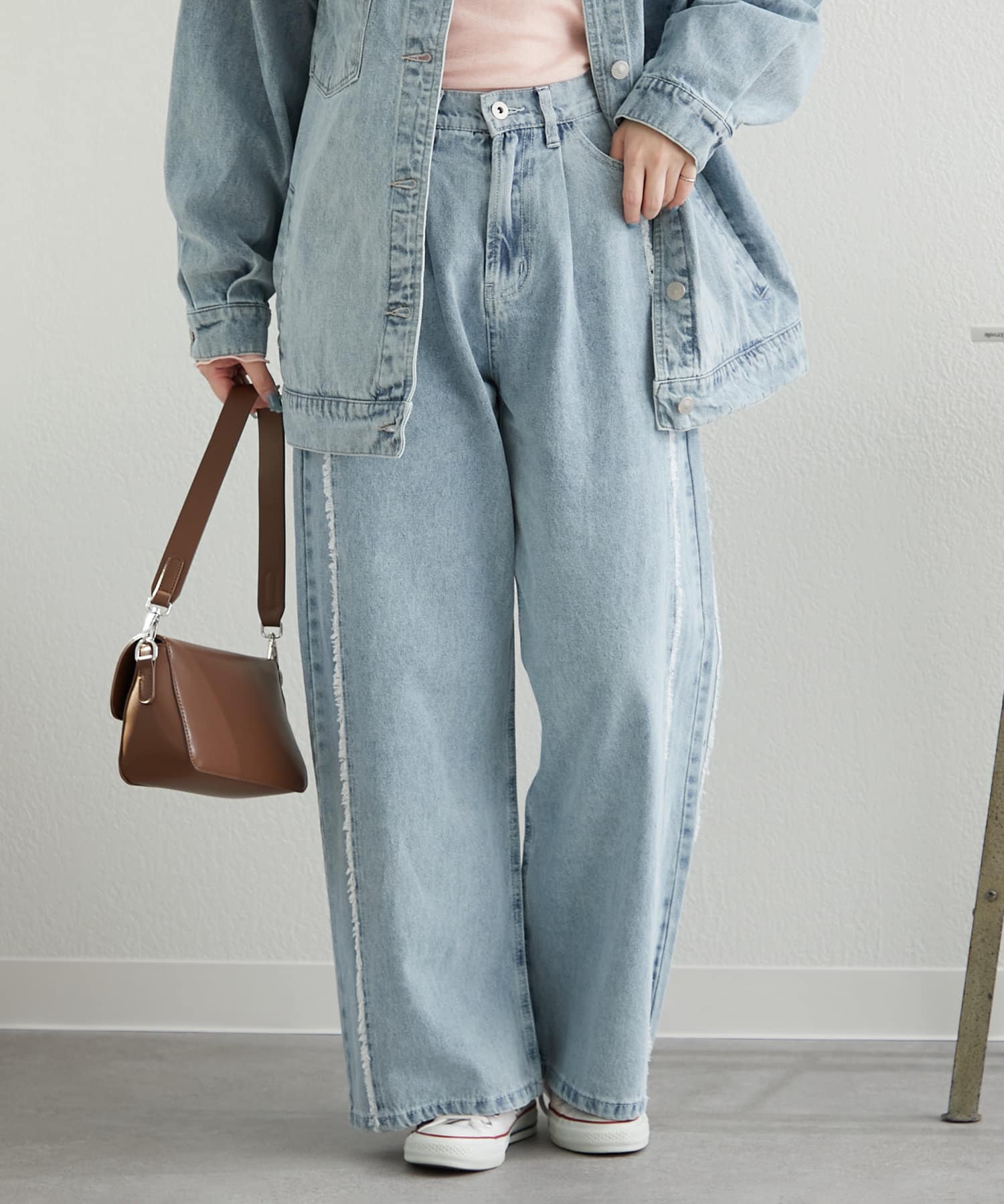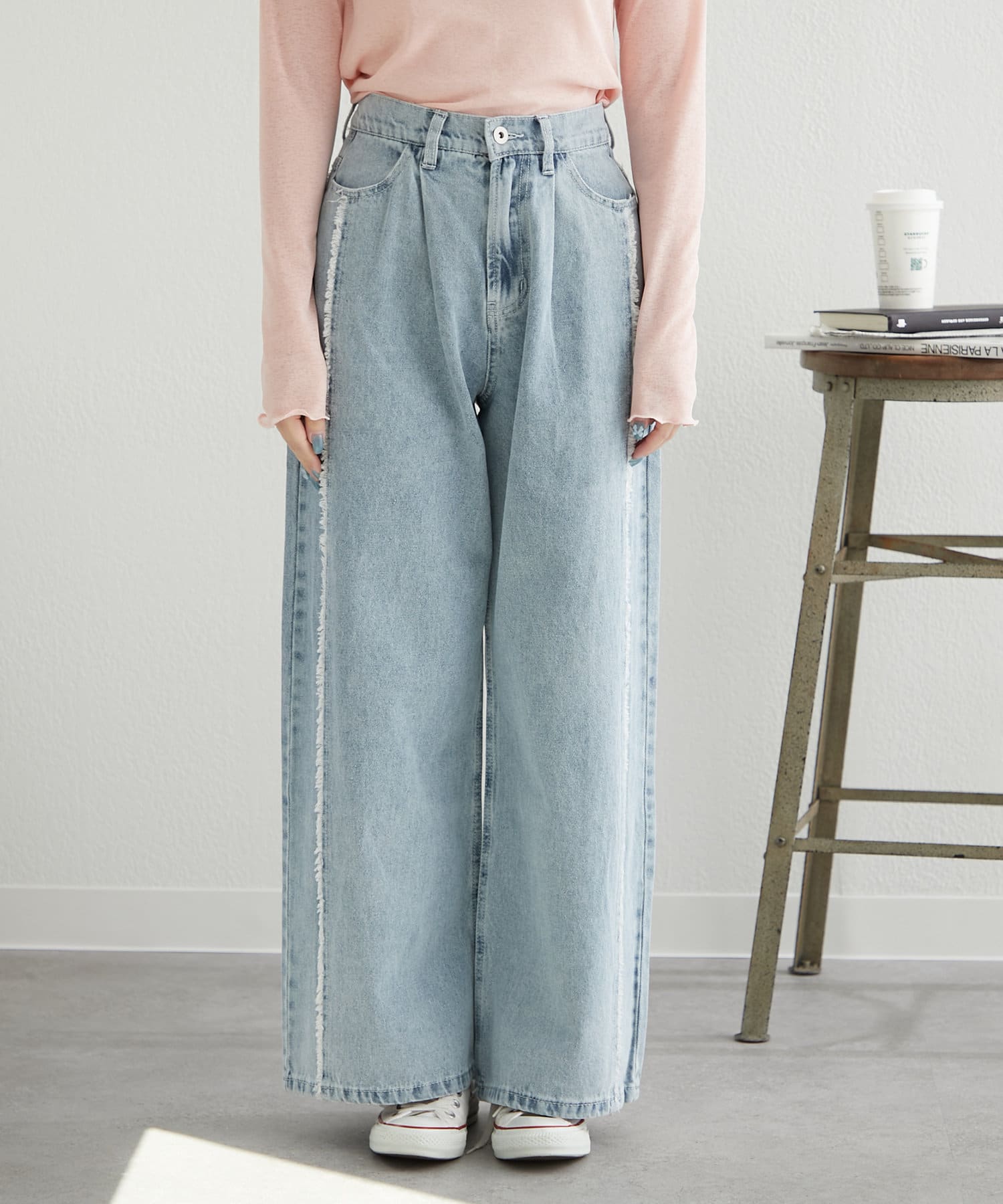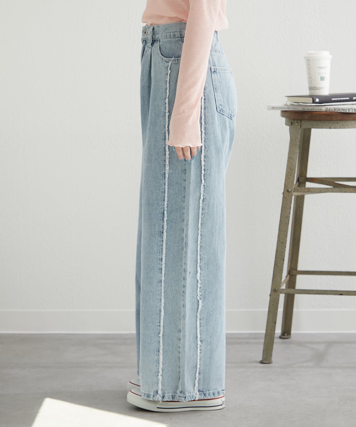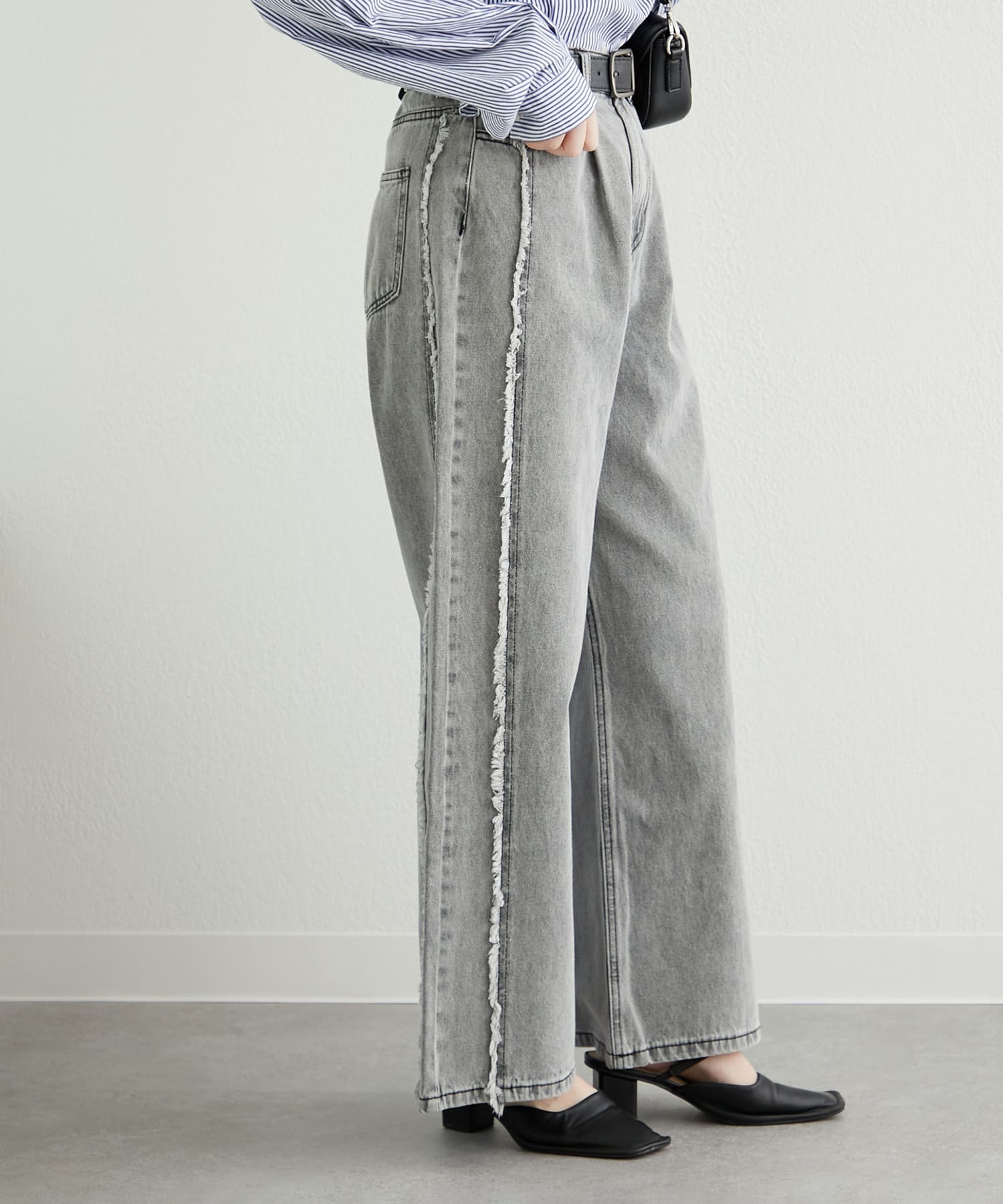 ・脇フリンジでコーデにちょっぴりアクセントを加えられるデニムパンツ