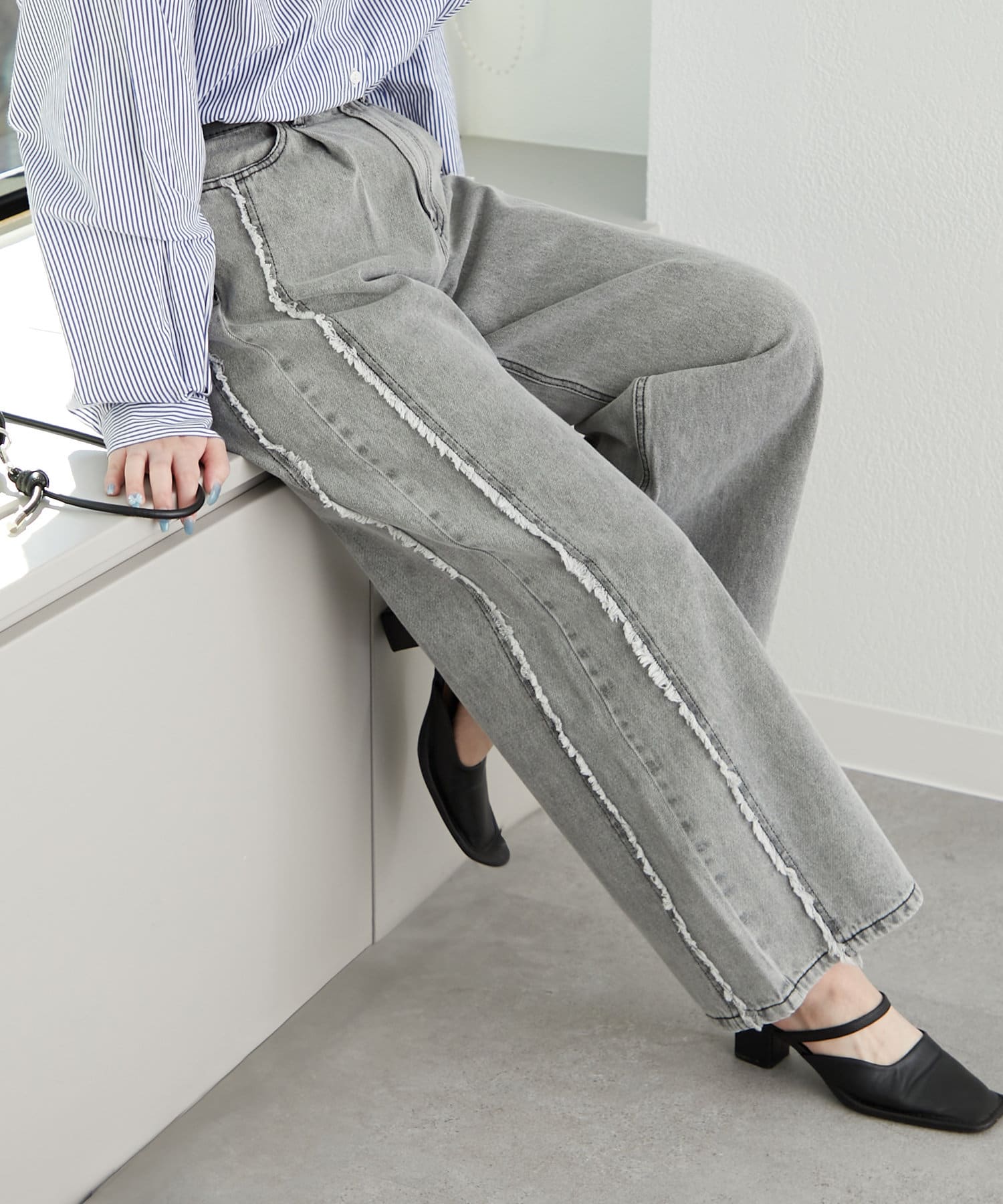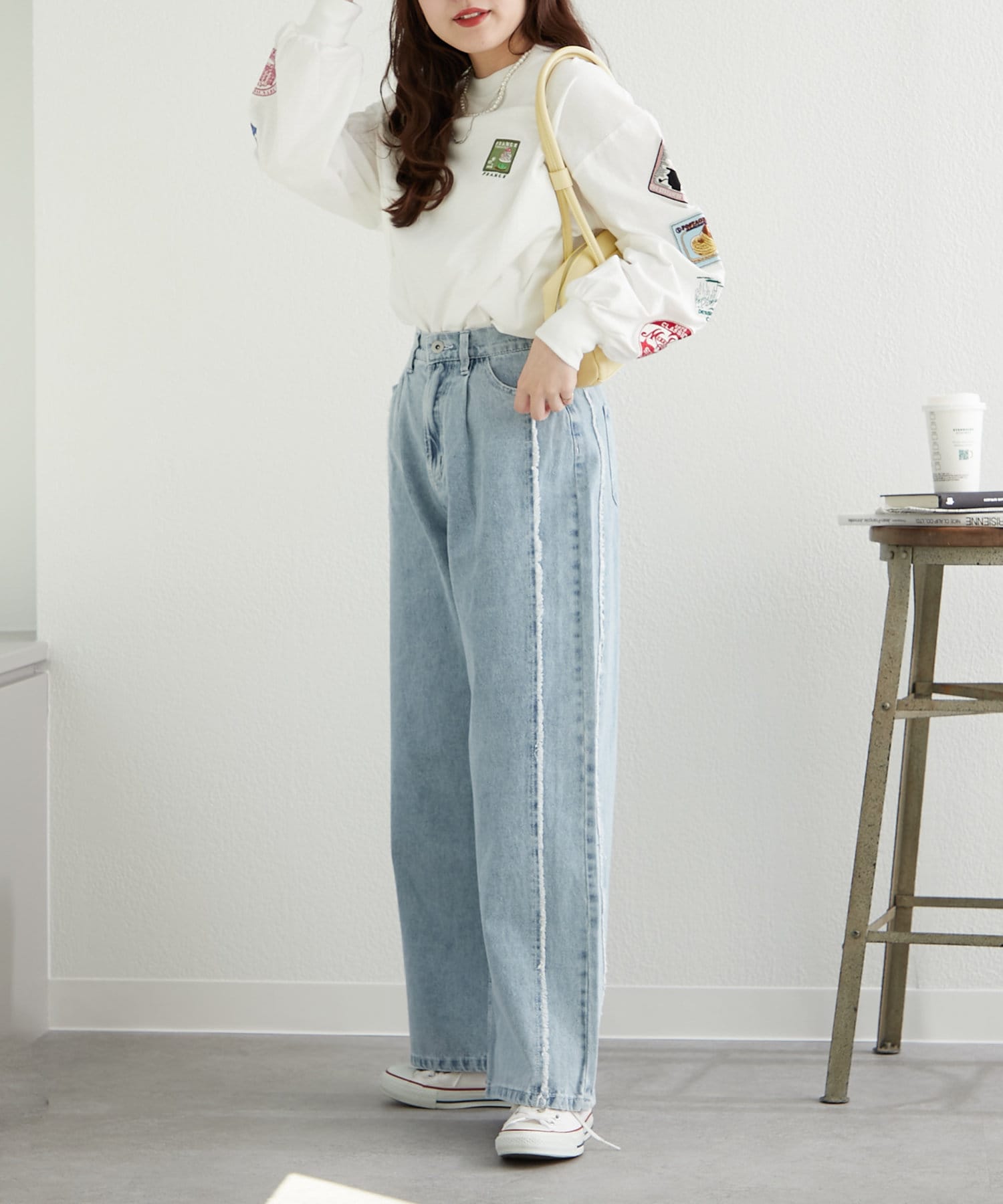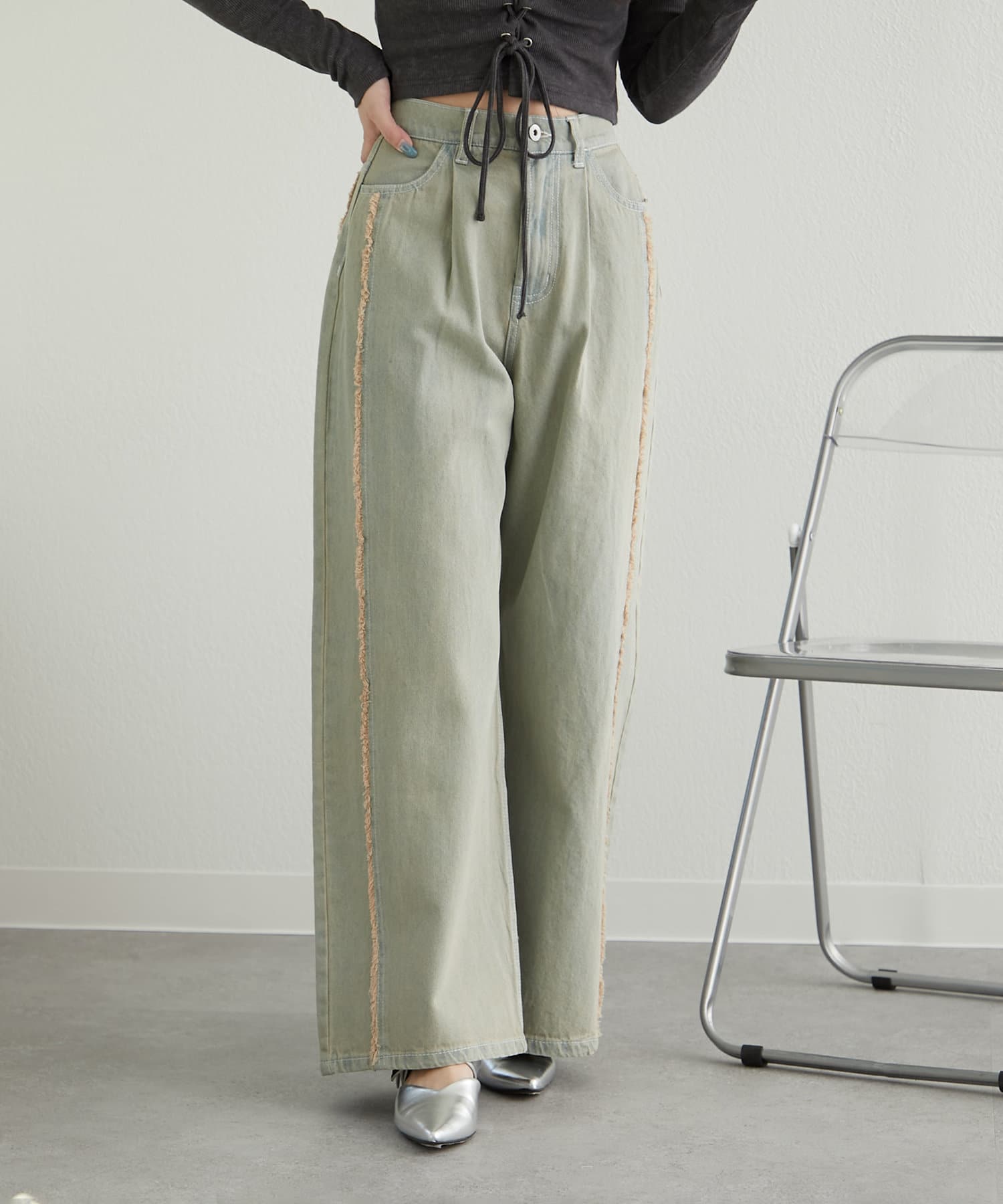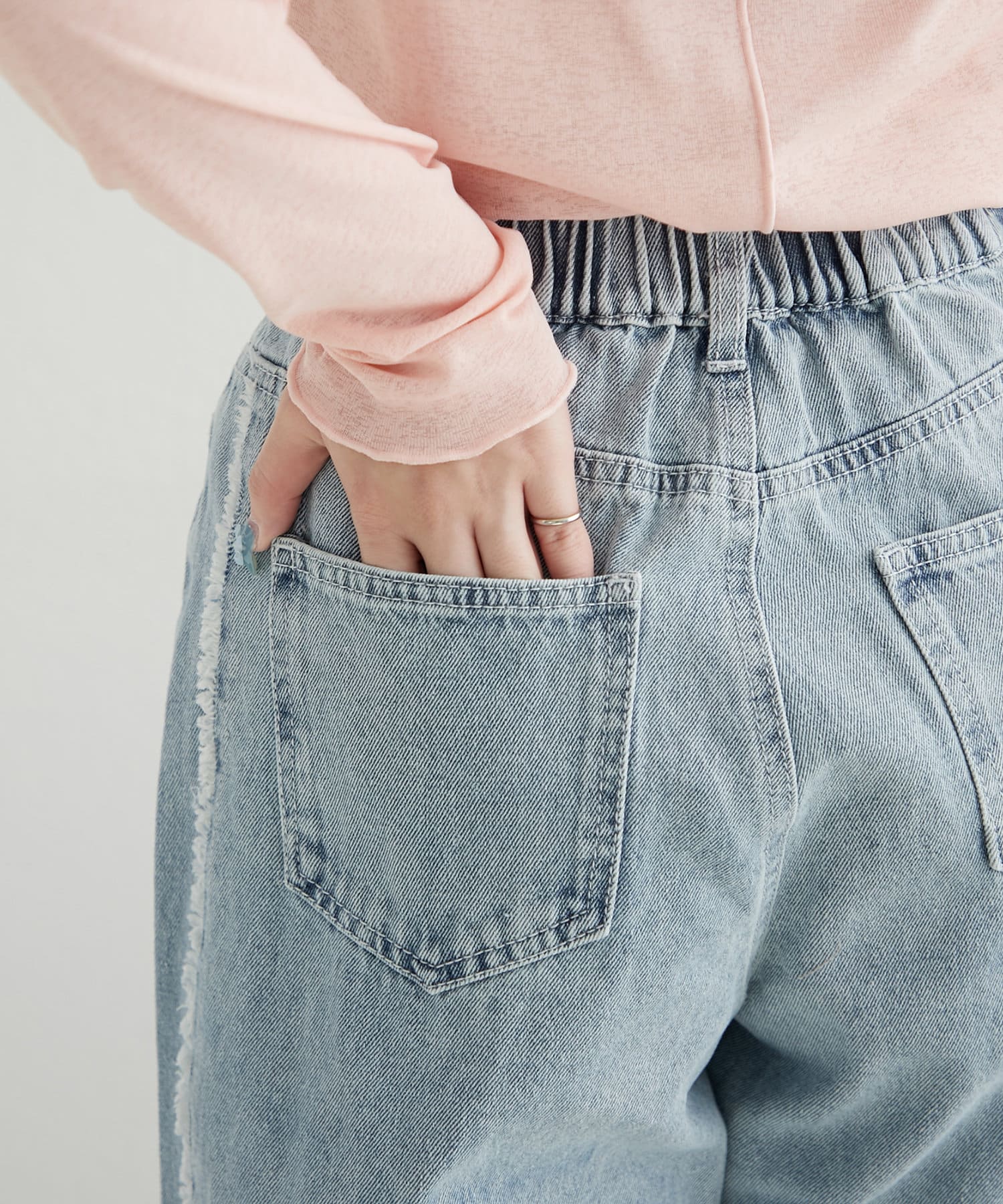 ・脇フリンジでコーデにちょっぴりアクセントを加えられるデニムパンツ