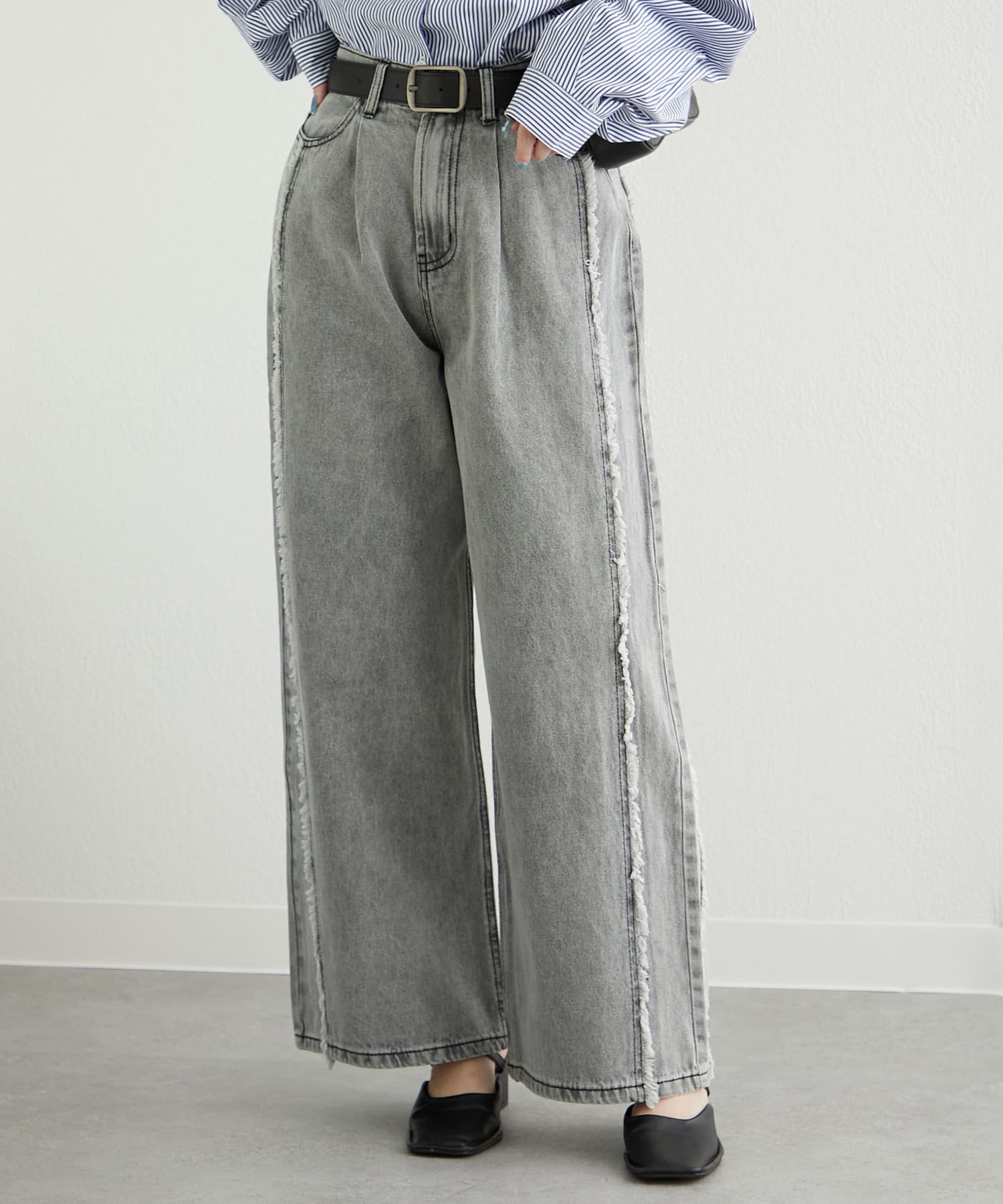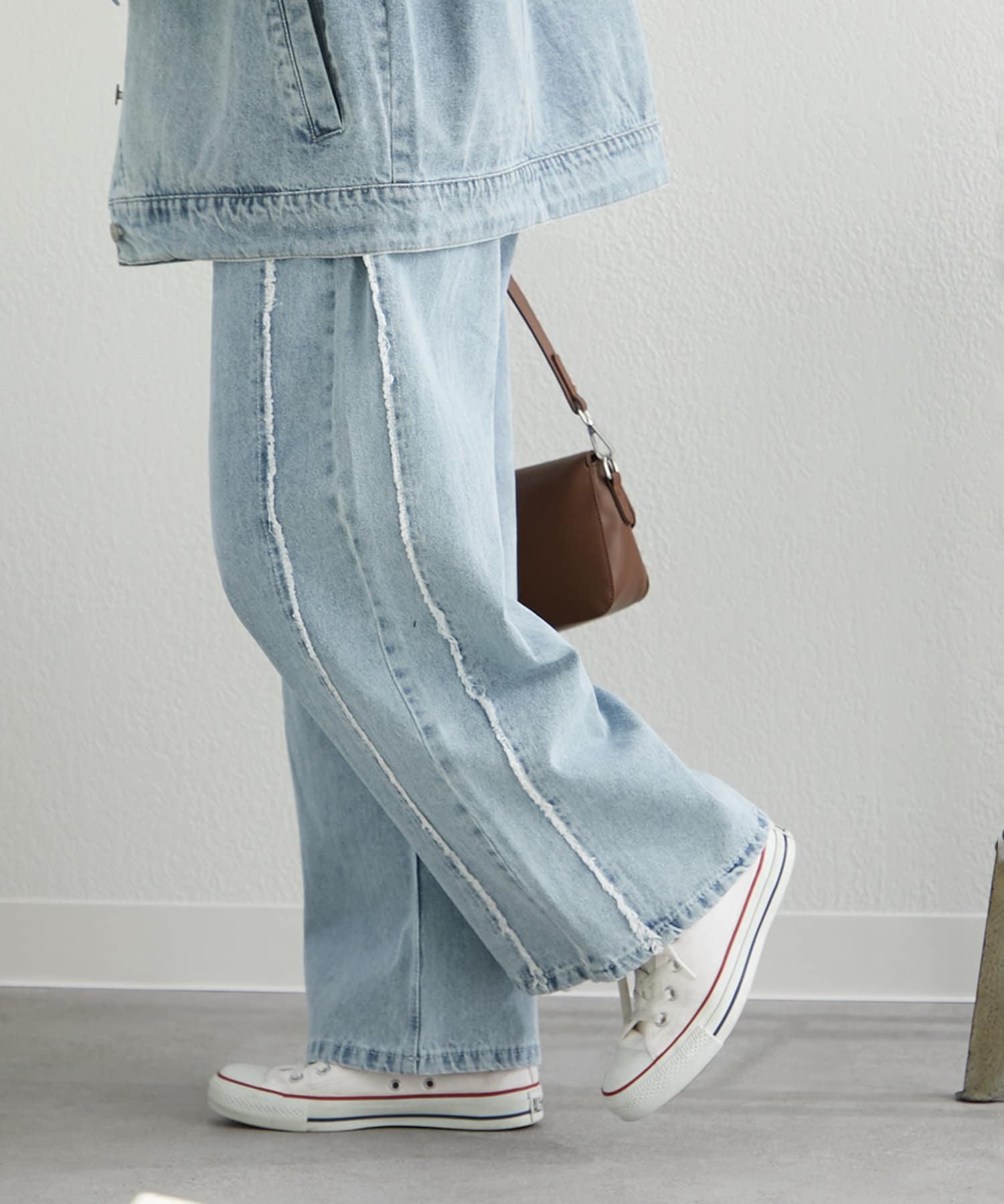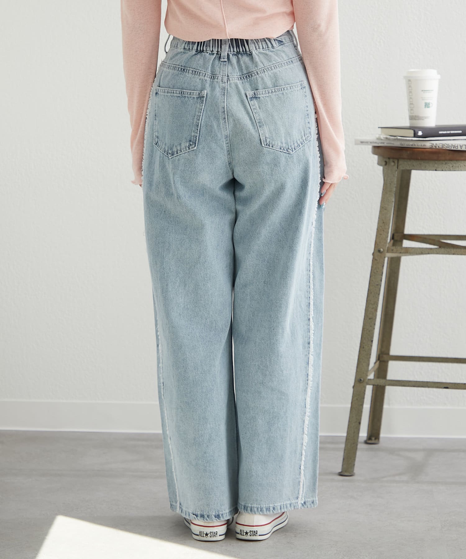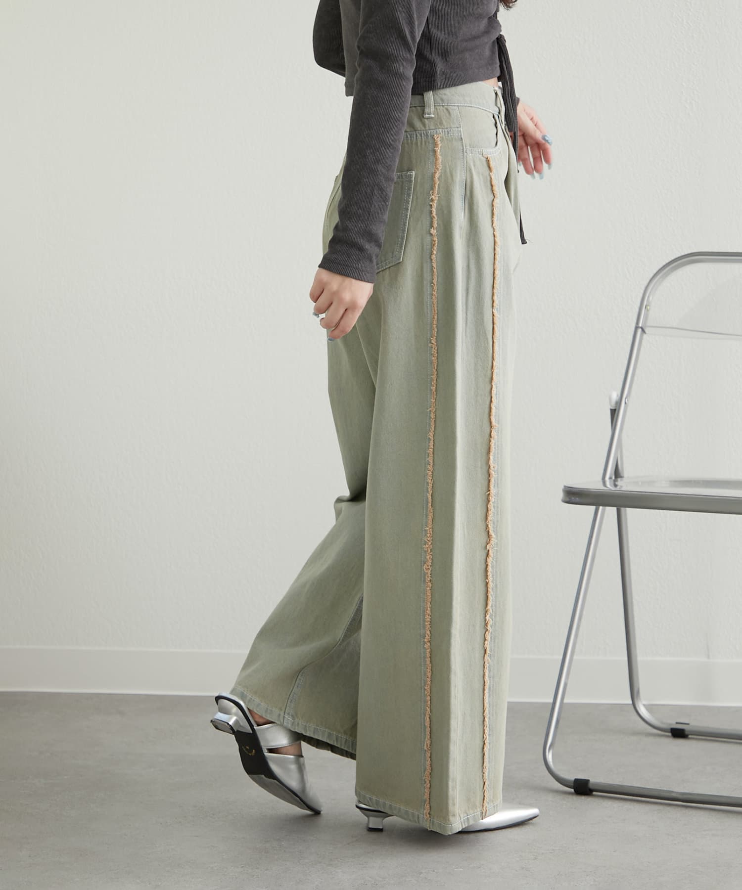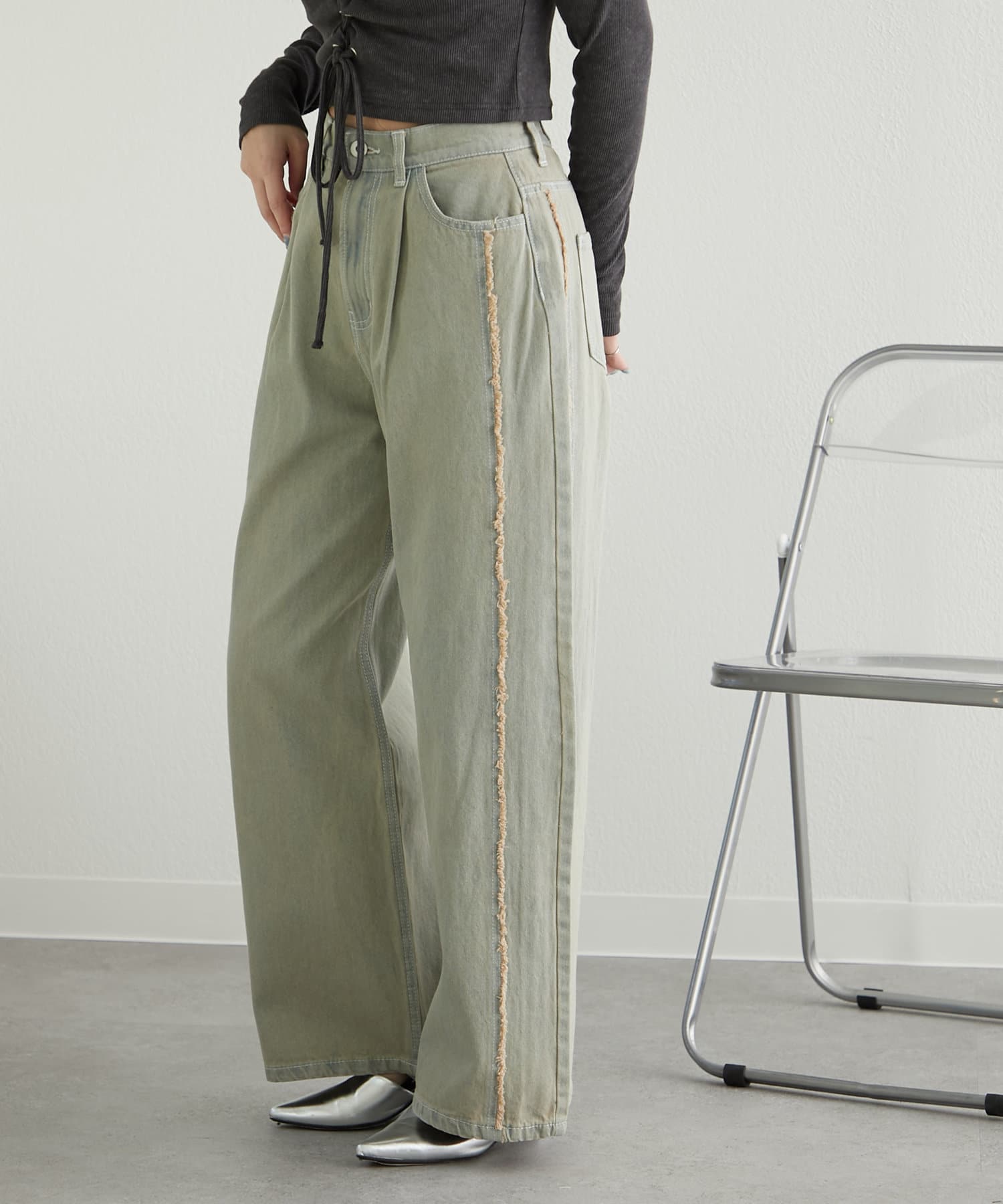 ・脇フリンジでコーデにちょっぴりアクセントを加えられるデニムパンツ