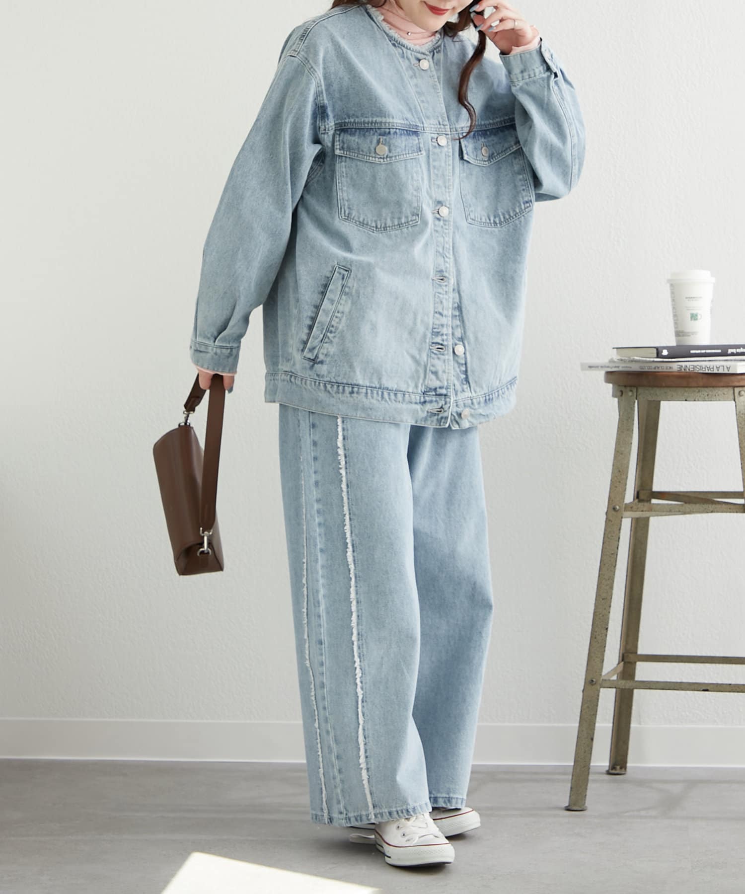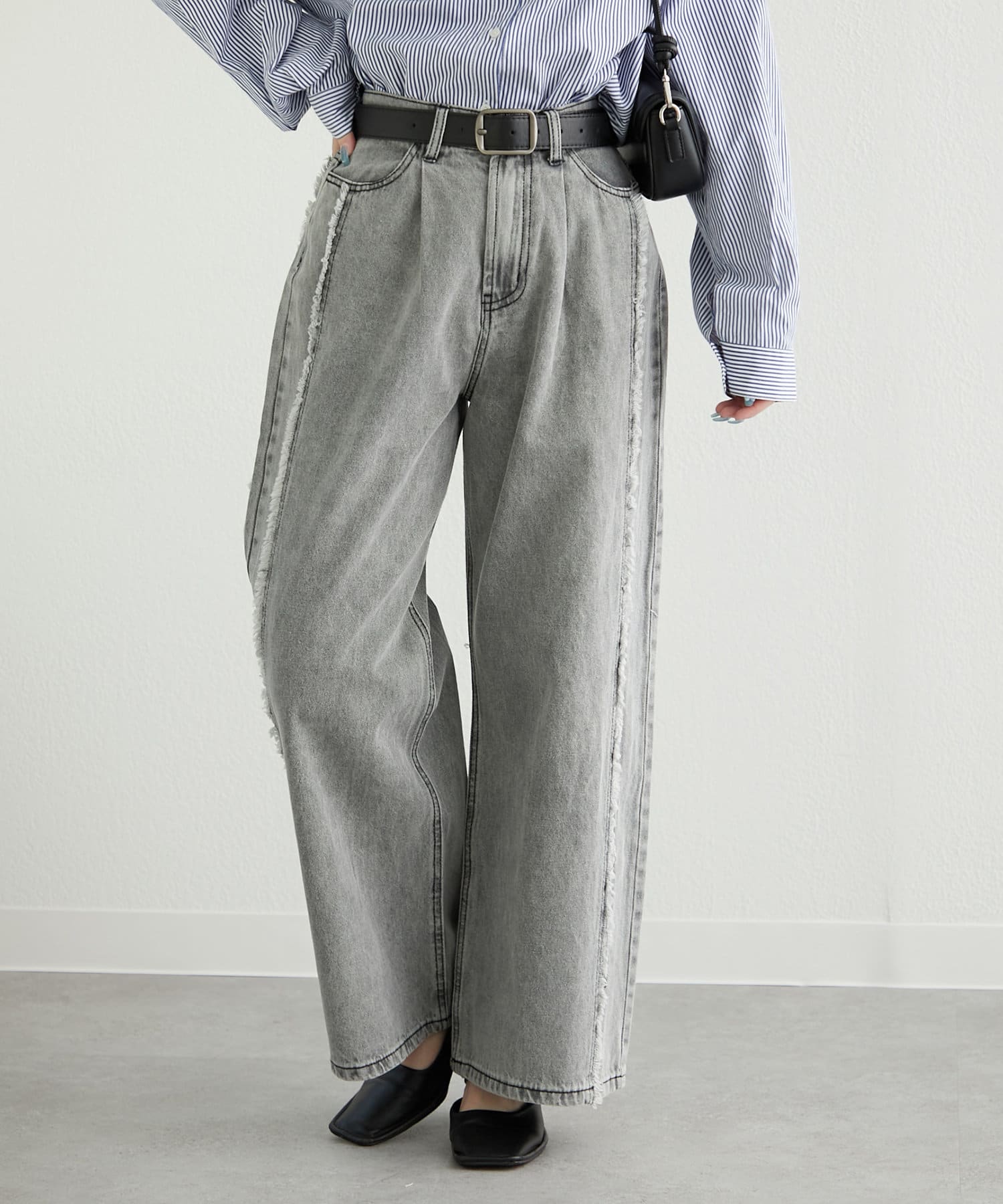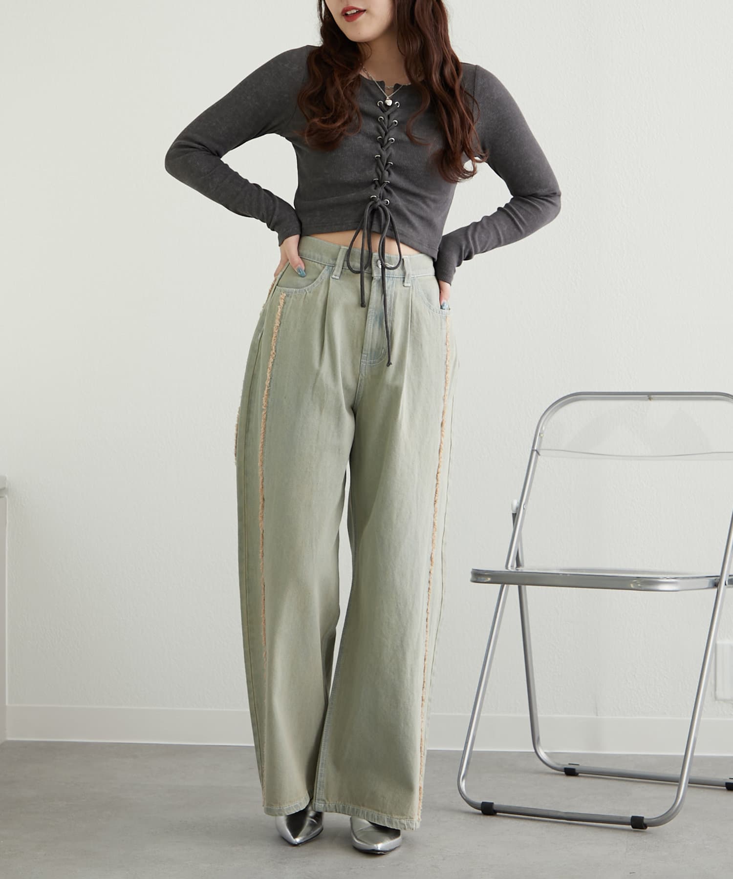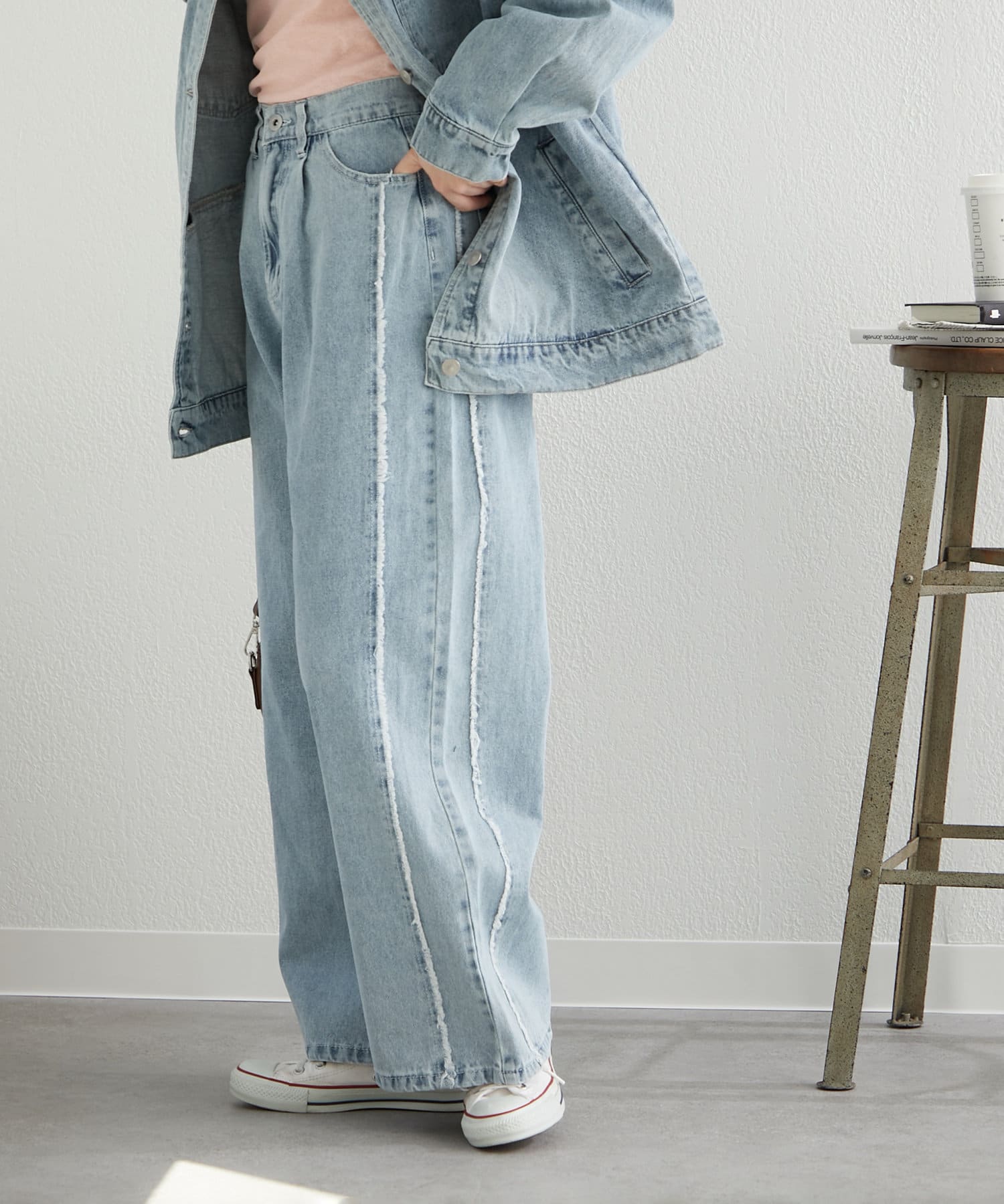・脇フリンジでコーデにちょっぴりアクセントを加えられるデニムパンツ