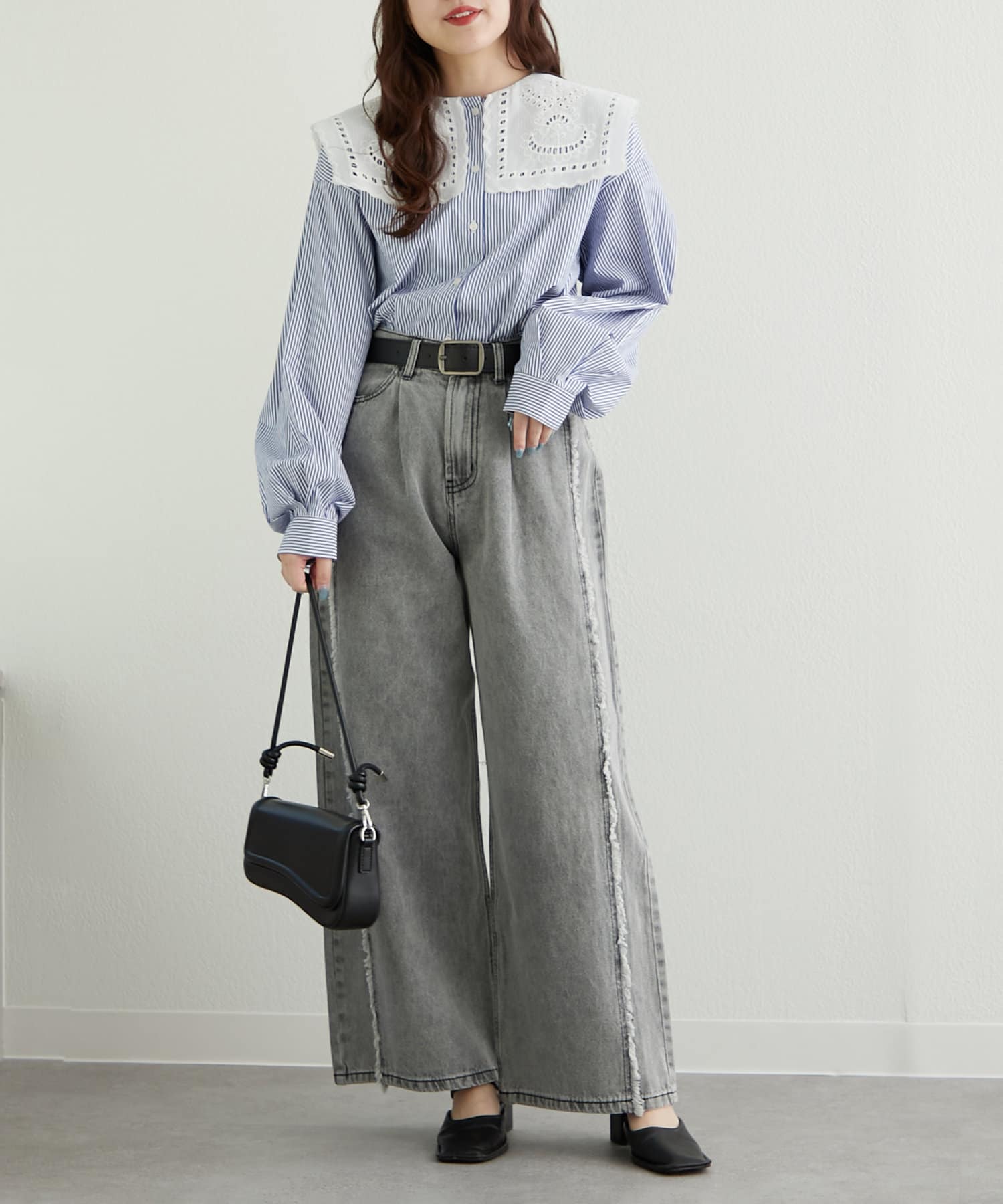 ・着回し力が高く、ワイドなシルエットが華奢に見せてくれる一枚です