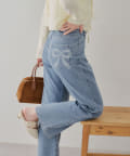 ・後ろポケットにプリントされたリボンが可愛いデニムパンツ