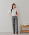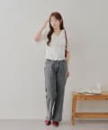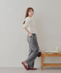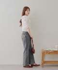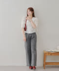 ・ストレートデニムなので体のラインを拾いすぎずに着てただけます!