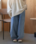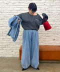 ・太めのパンツなので、コンパクトなシルエットのトップスと合わせがバランス良くて◎