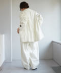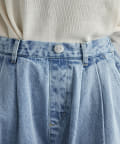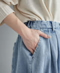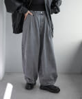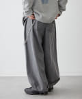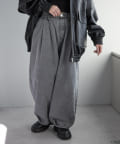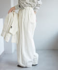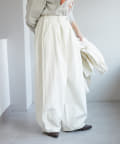 ・きれいなボリューム感が目を惹くワイドパンツ。
