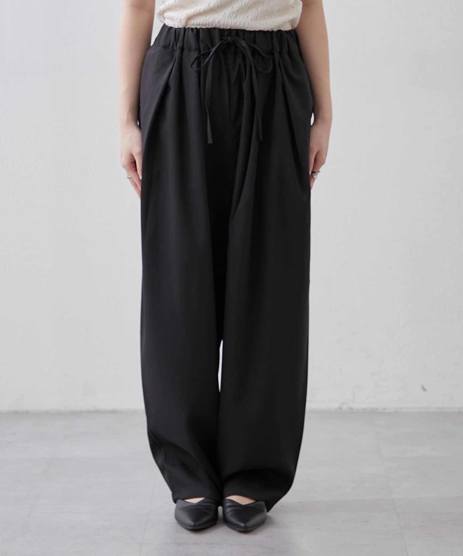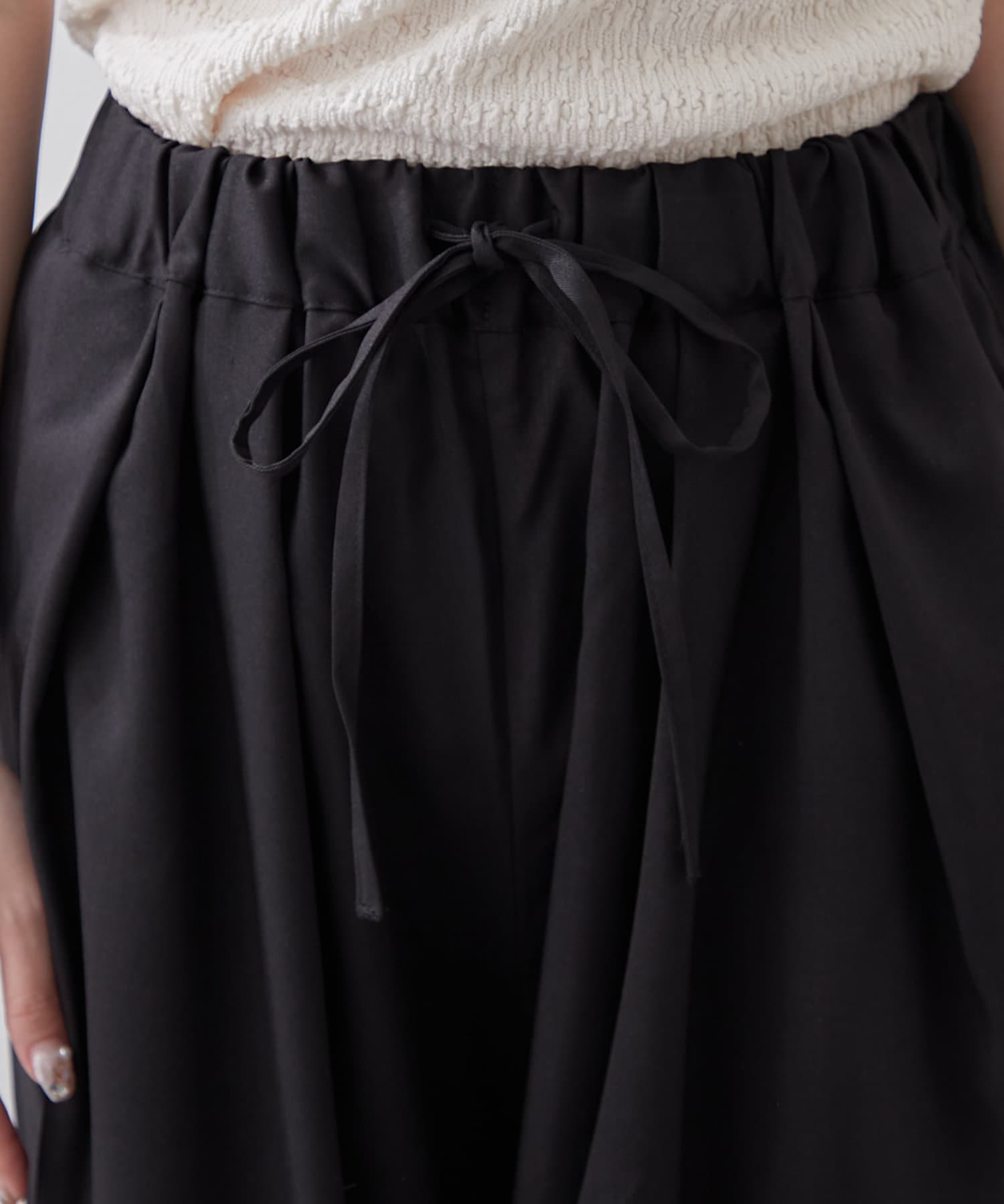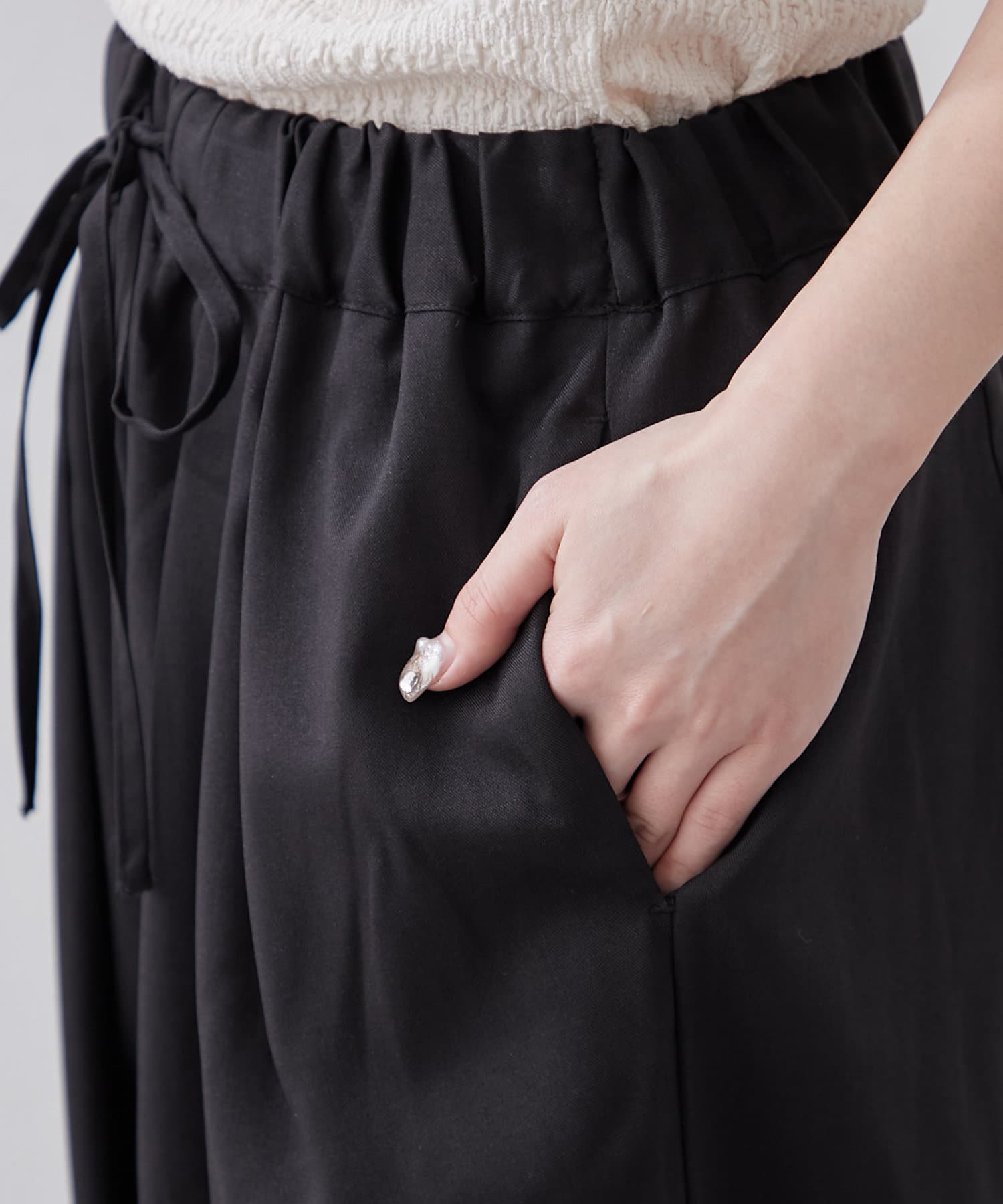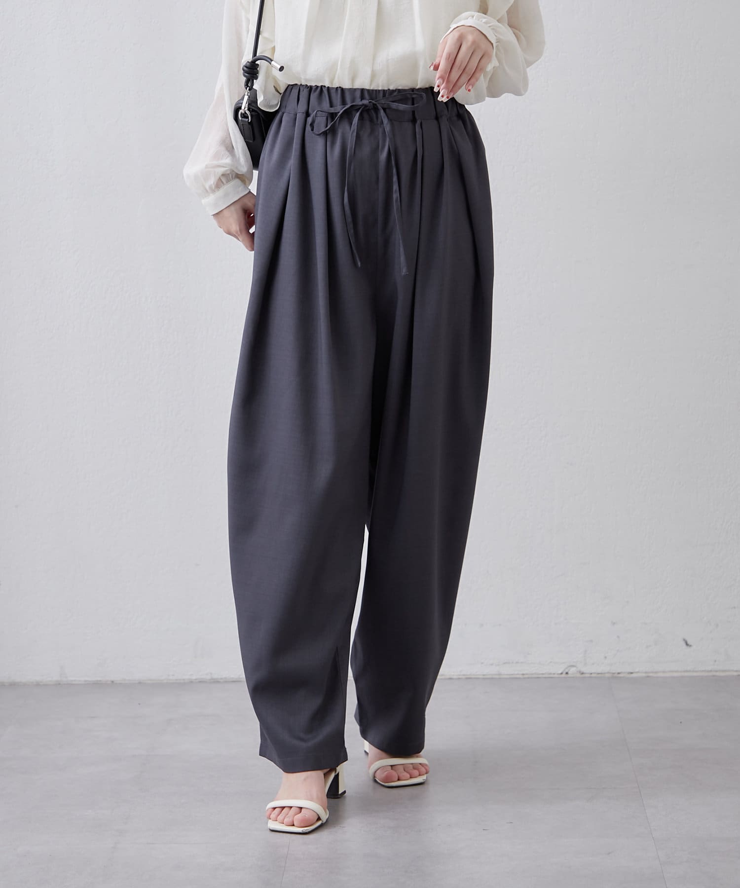 ・ウエスト総ゴムでリラックス感のあるデザインに仕上がっています