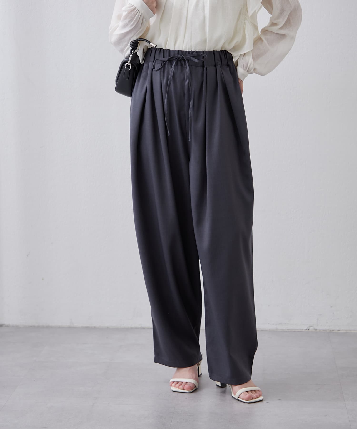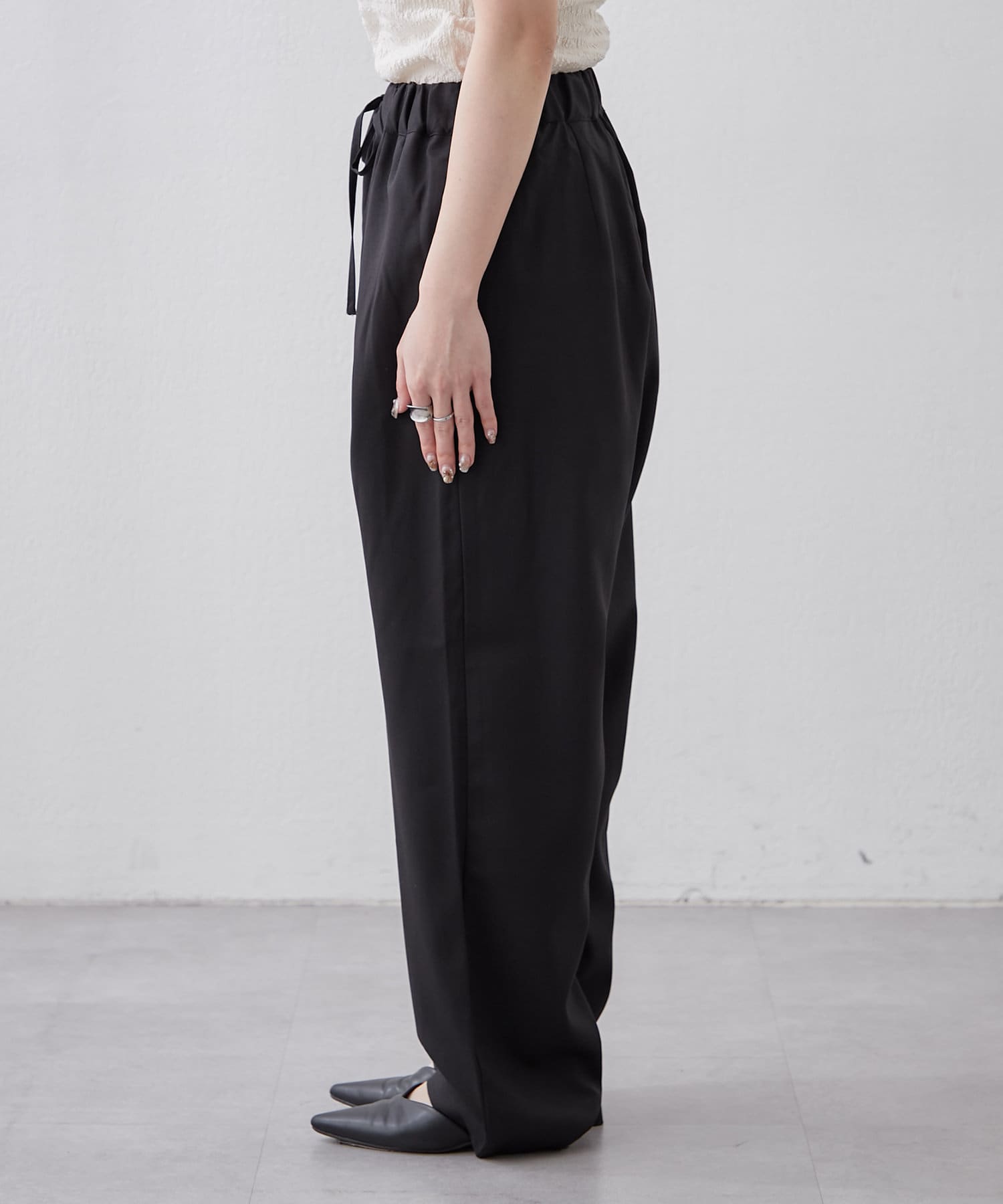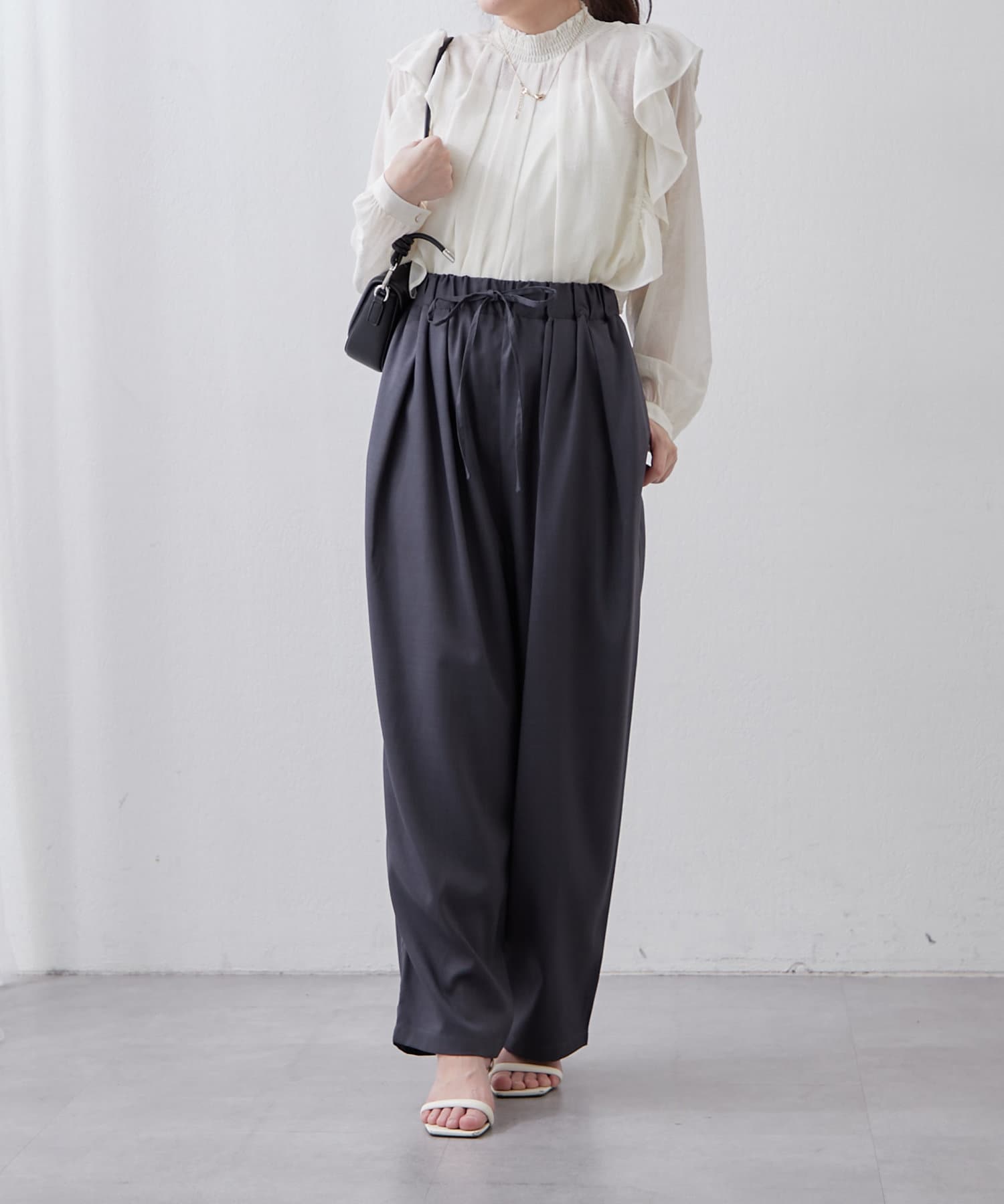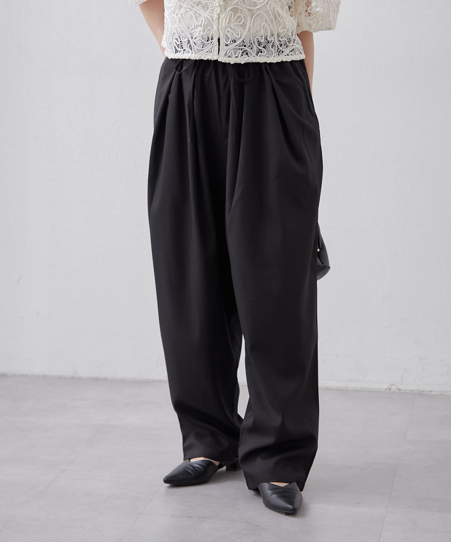 ・ウエスト総ゴムでリラックス感のあるデザインに仕上がっています