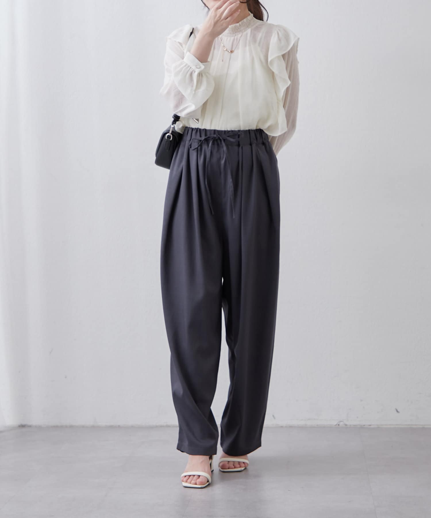 ・カーブシルエットが大人カジュアルコーデに欠かせないイージーパンツ