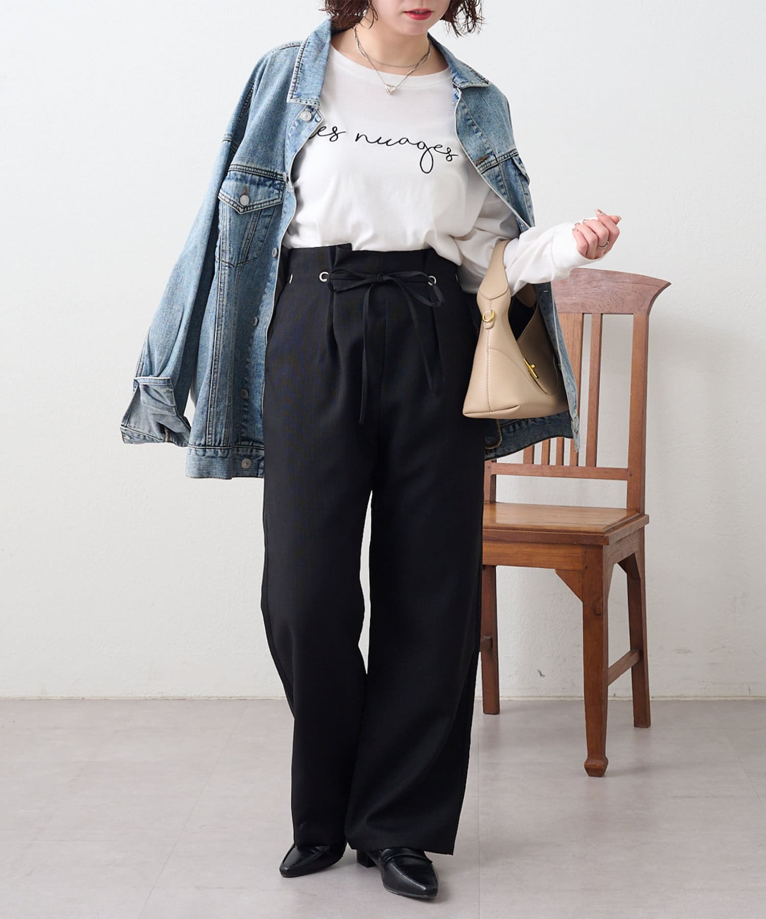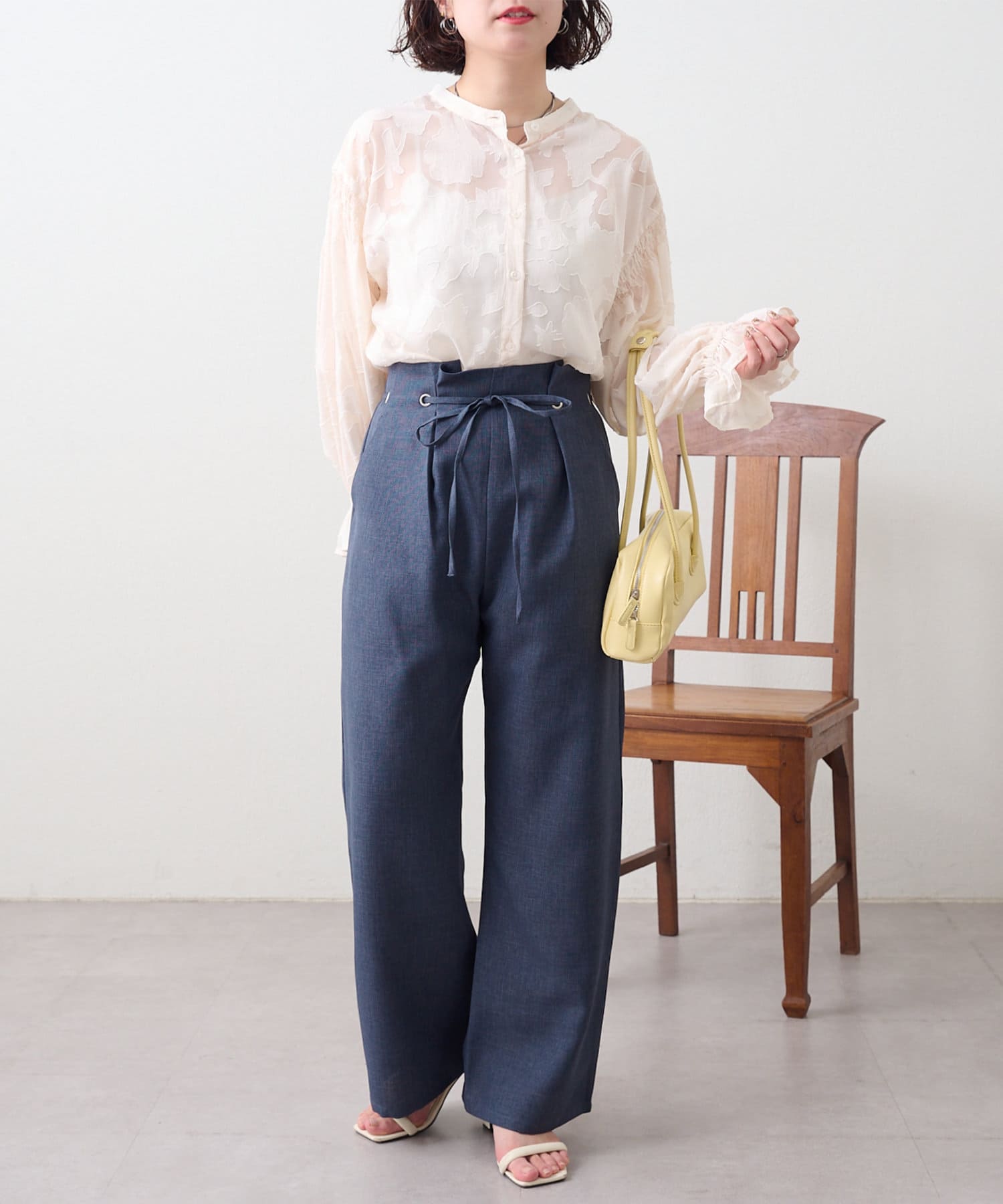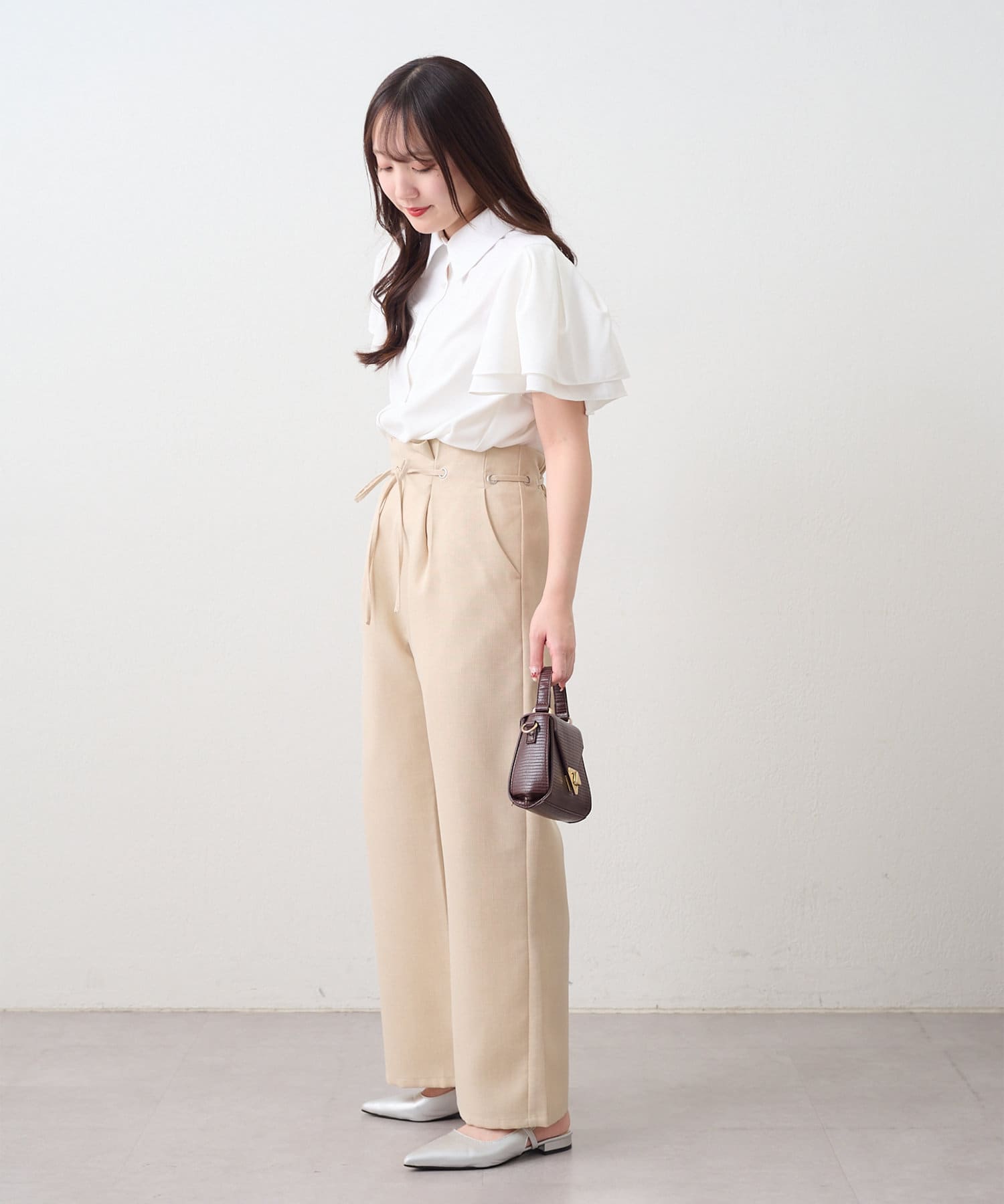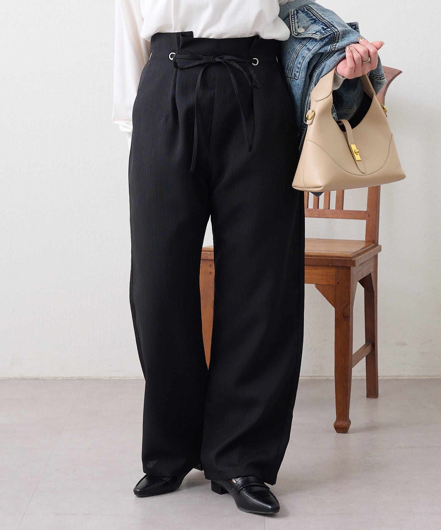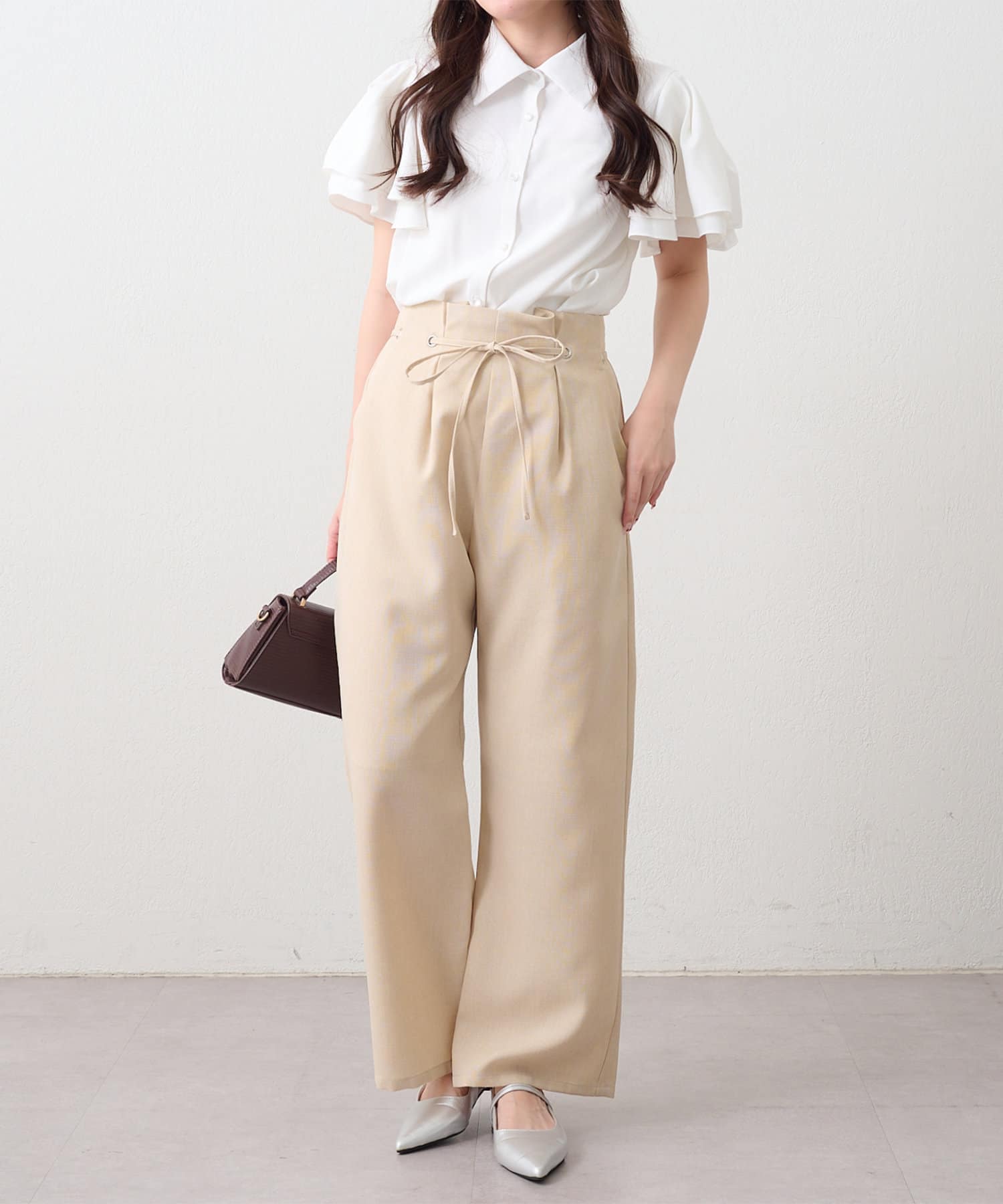 ・ウエストリボンデザインを活かして、トップスインするスタイリングがオススメ