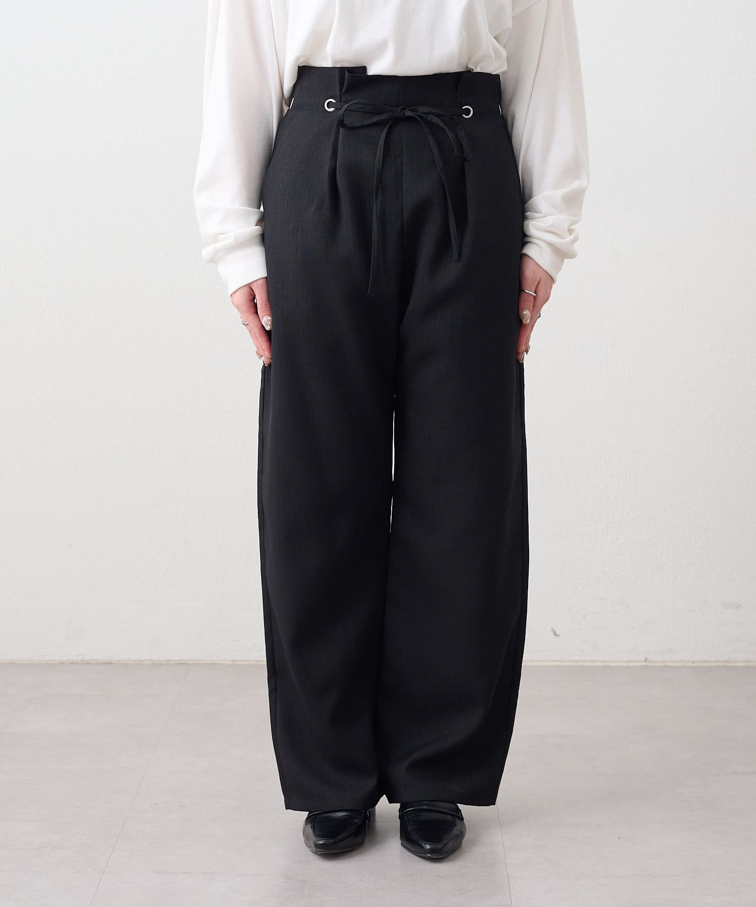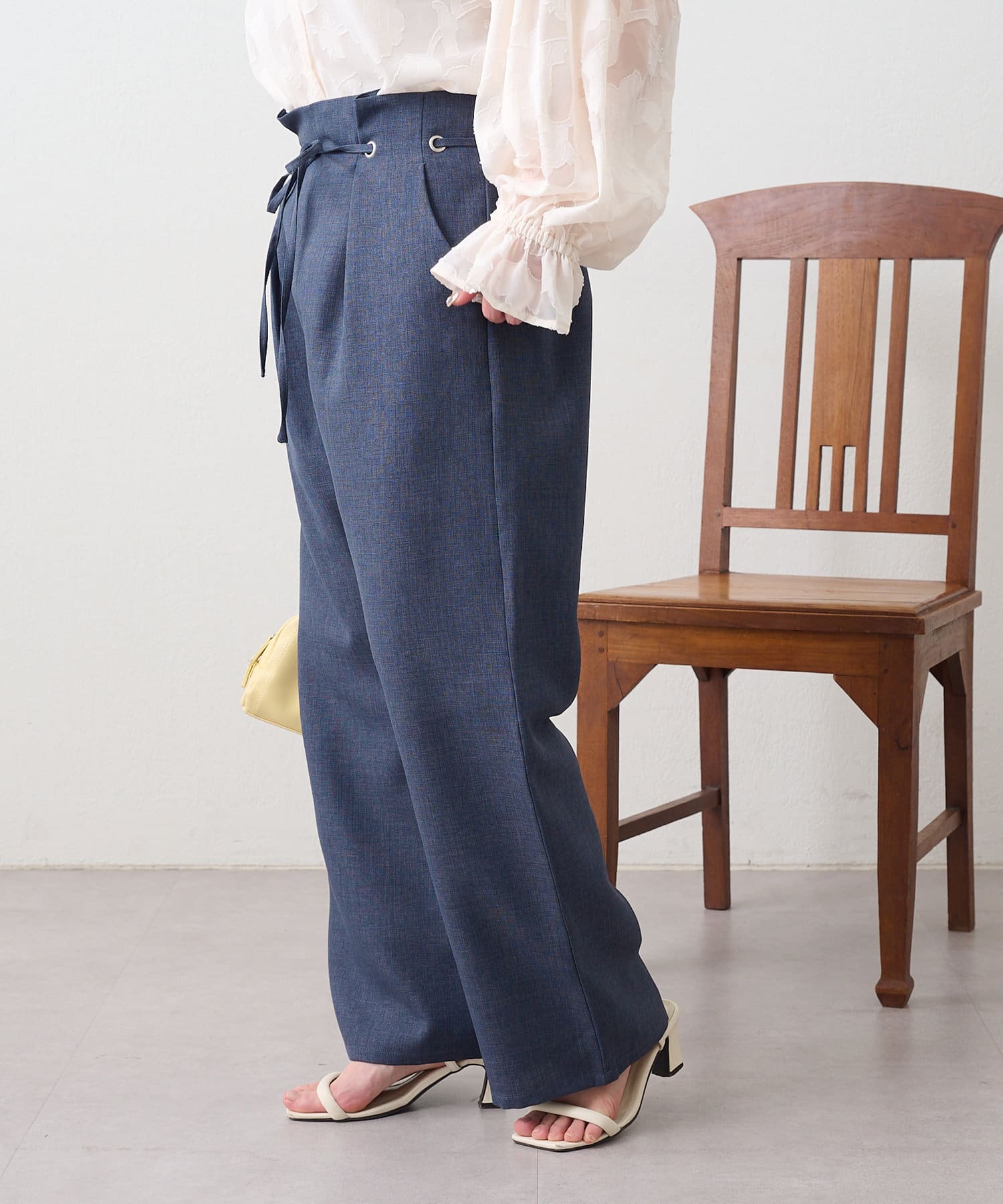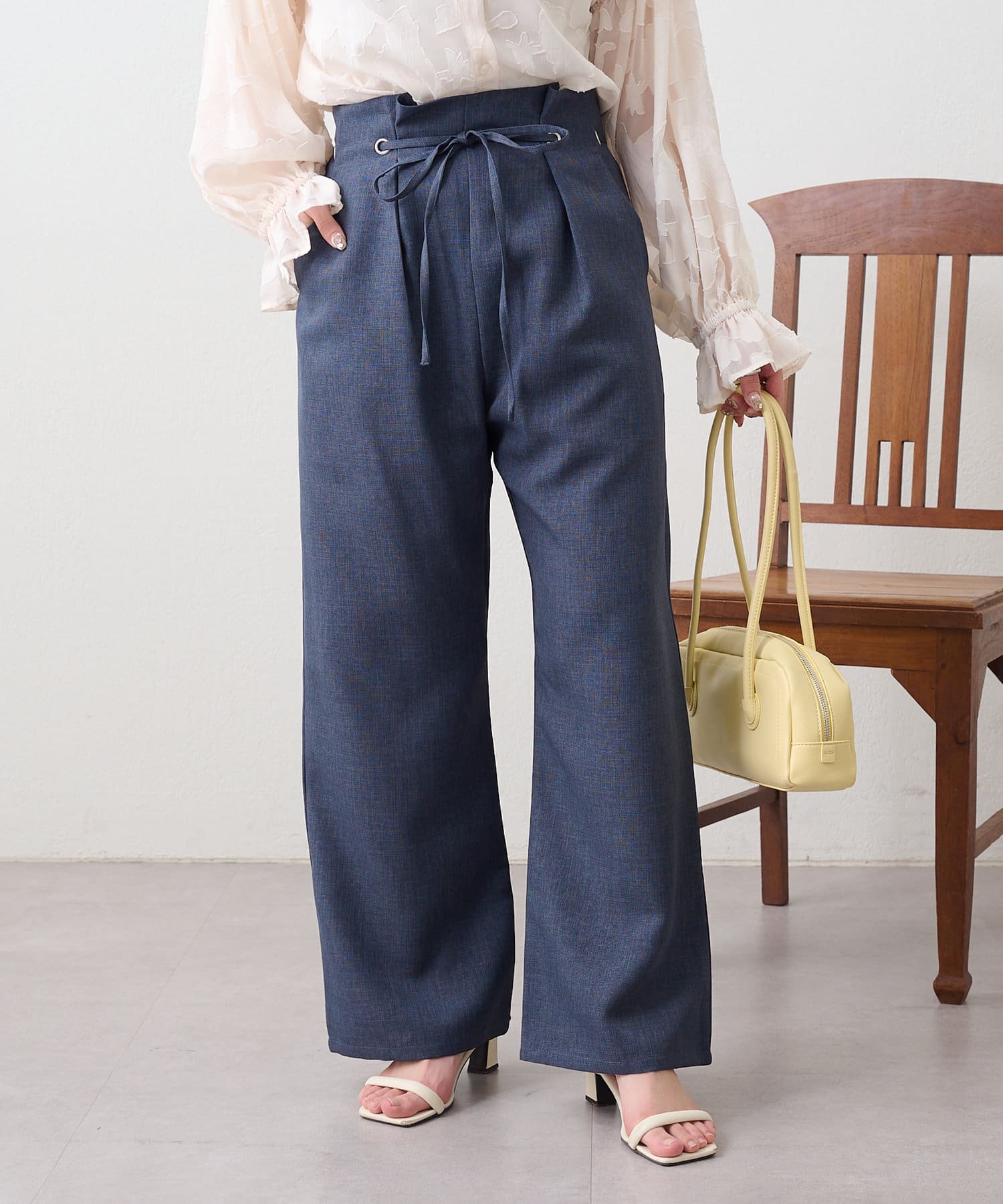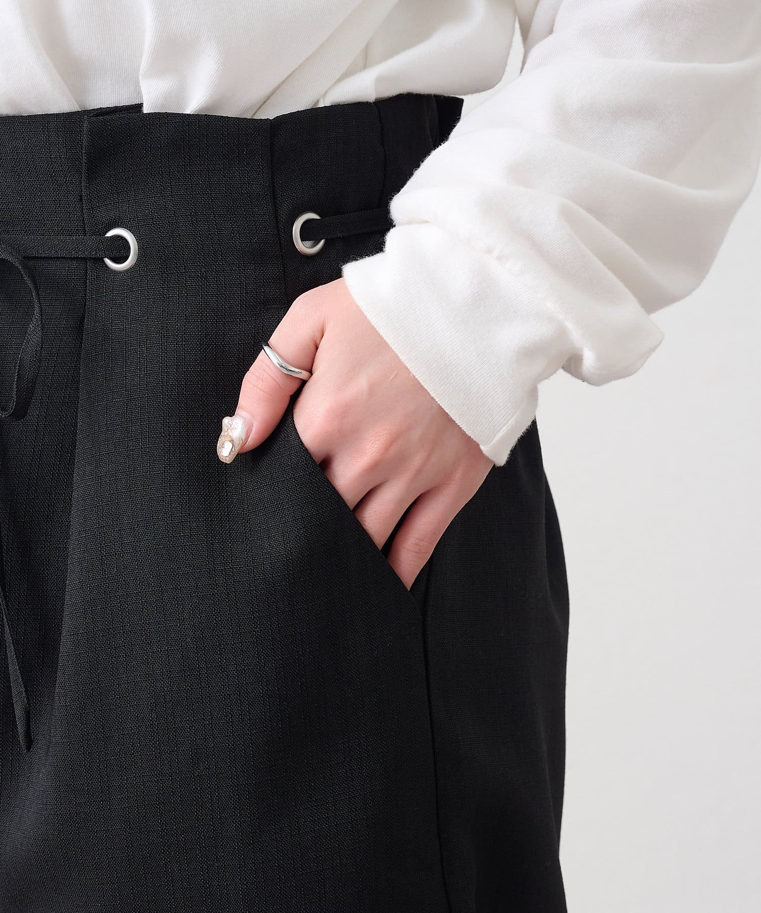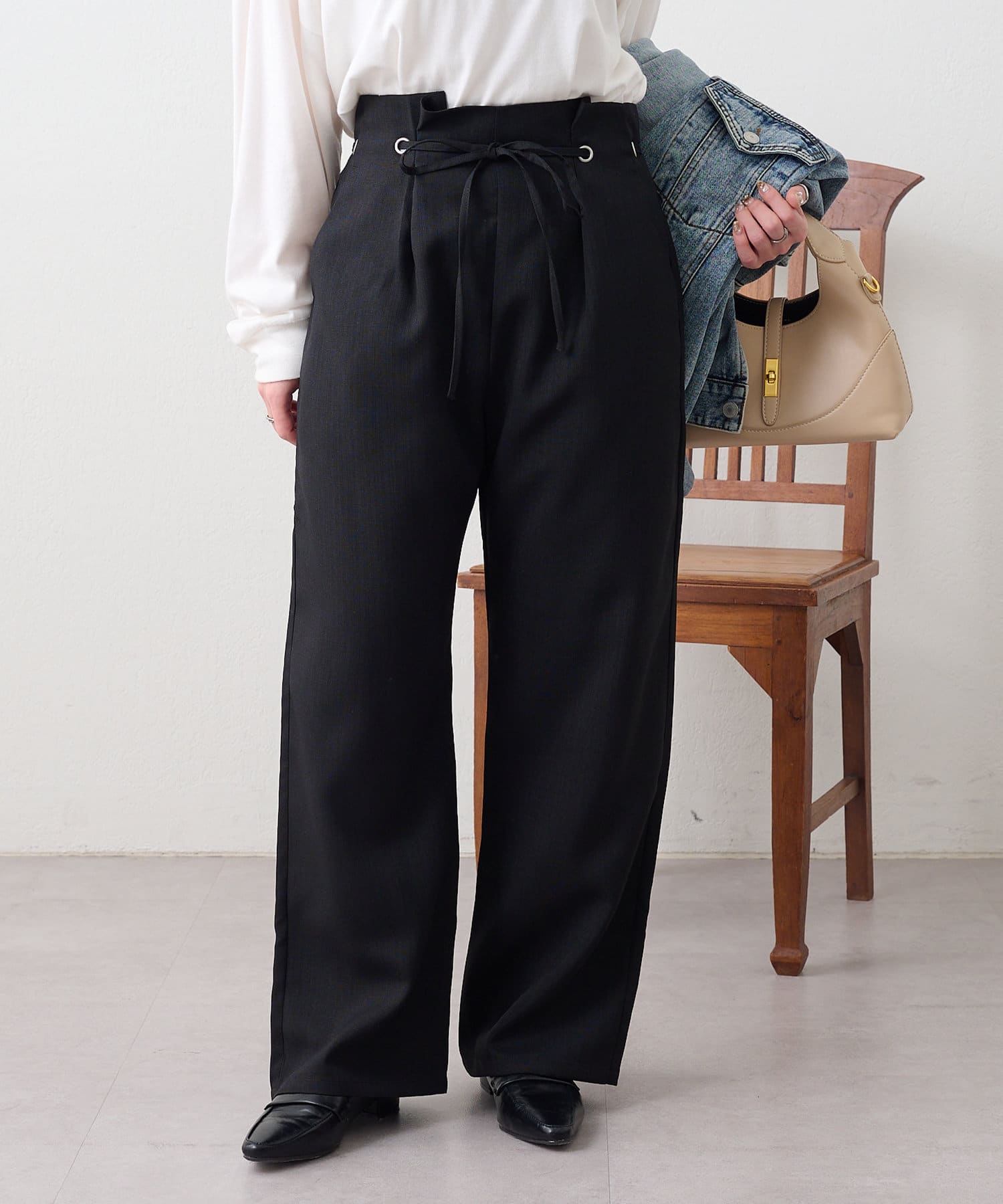 ・ウエストリボンデザインを活かして、トップスインするスタイリングがオススメ