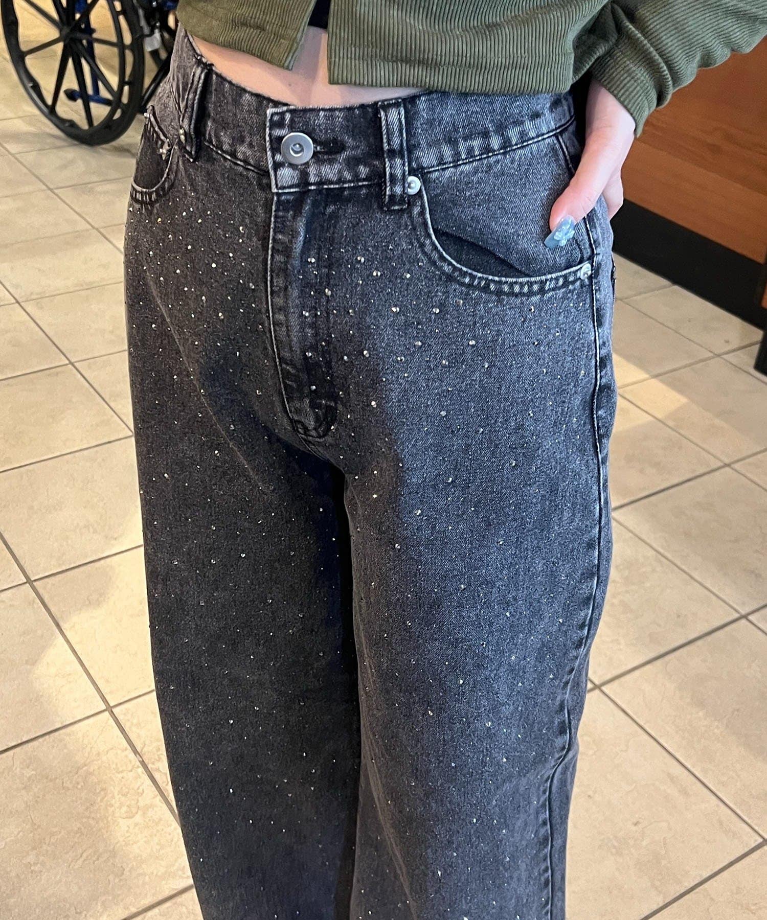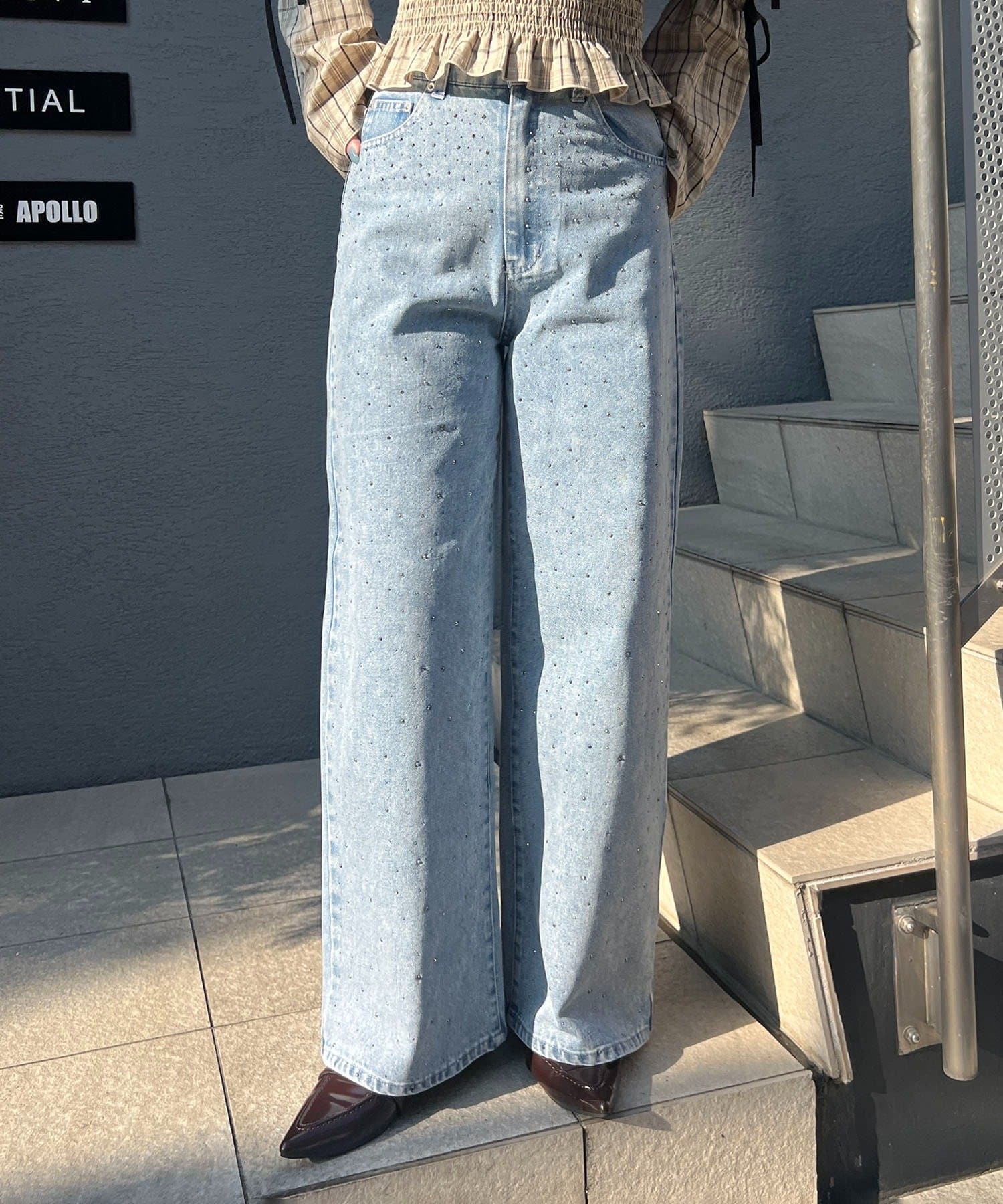 ・きらっと光るストーンが魅力のデニム。