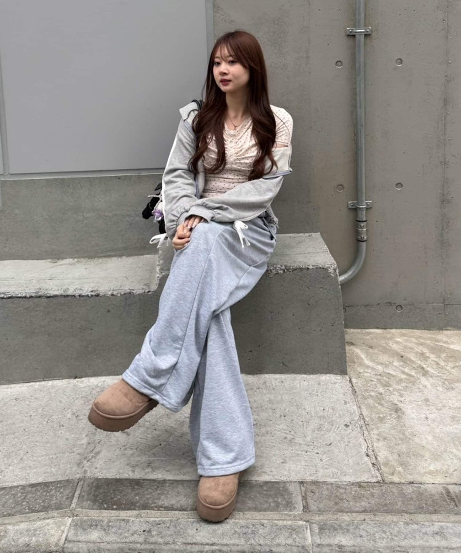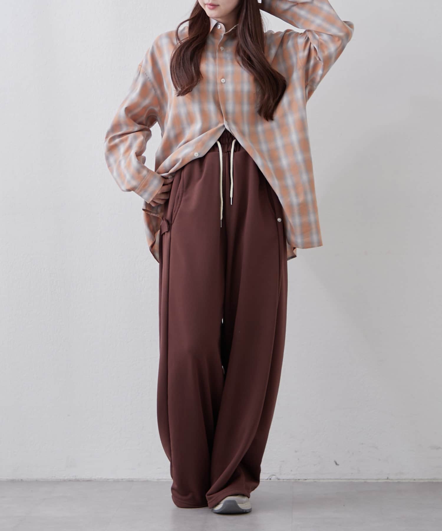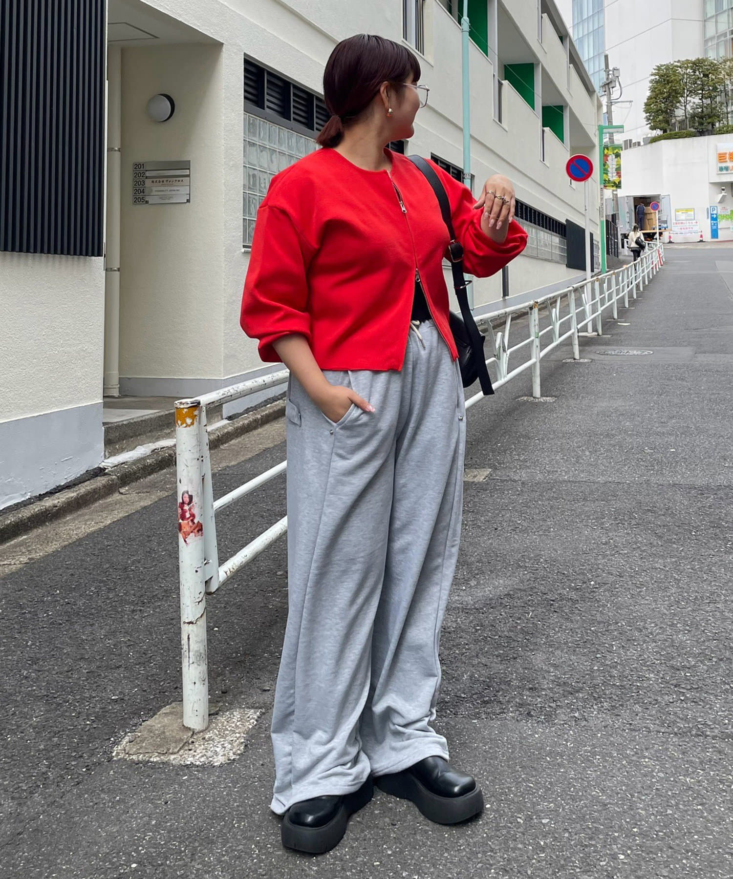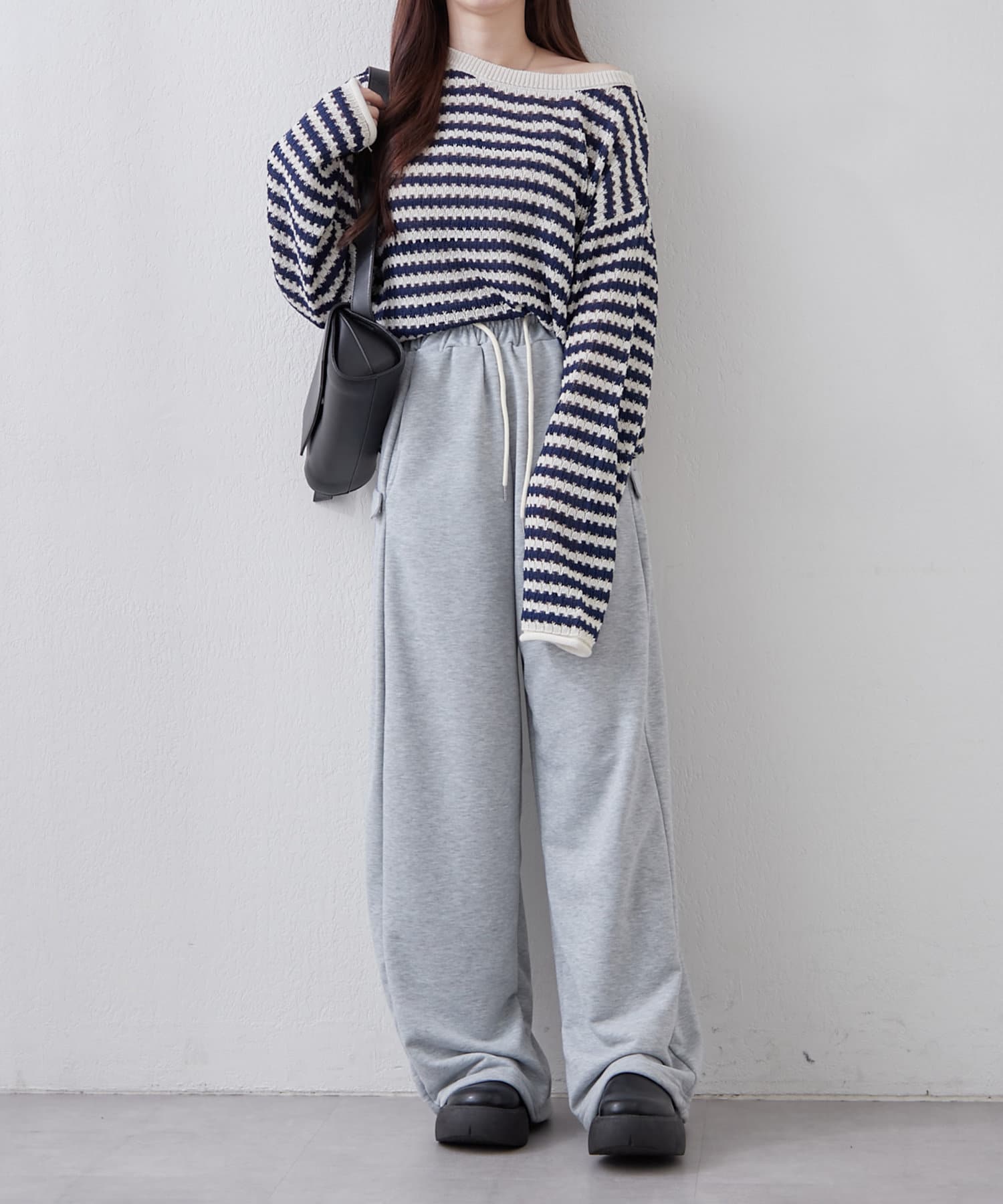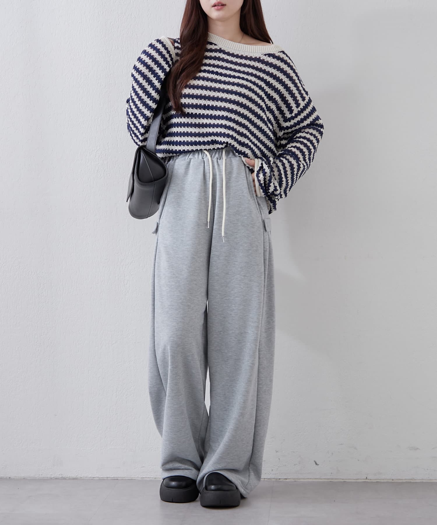 ・ルーズなシルエットが魅力的ならくちんスウェットパンツ。
