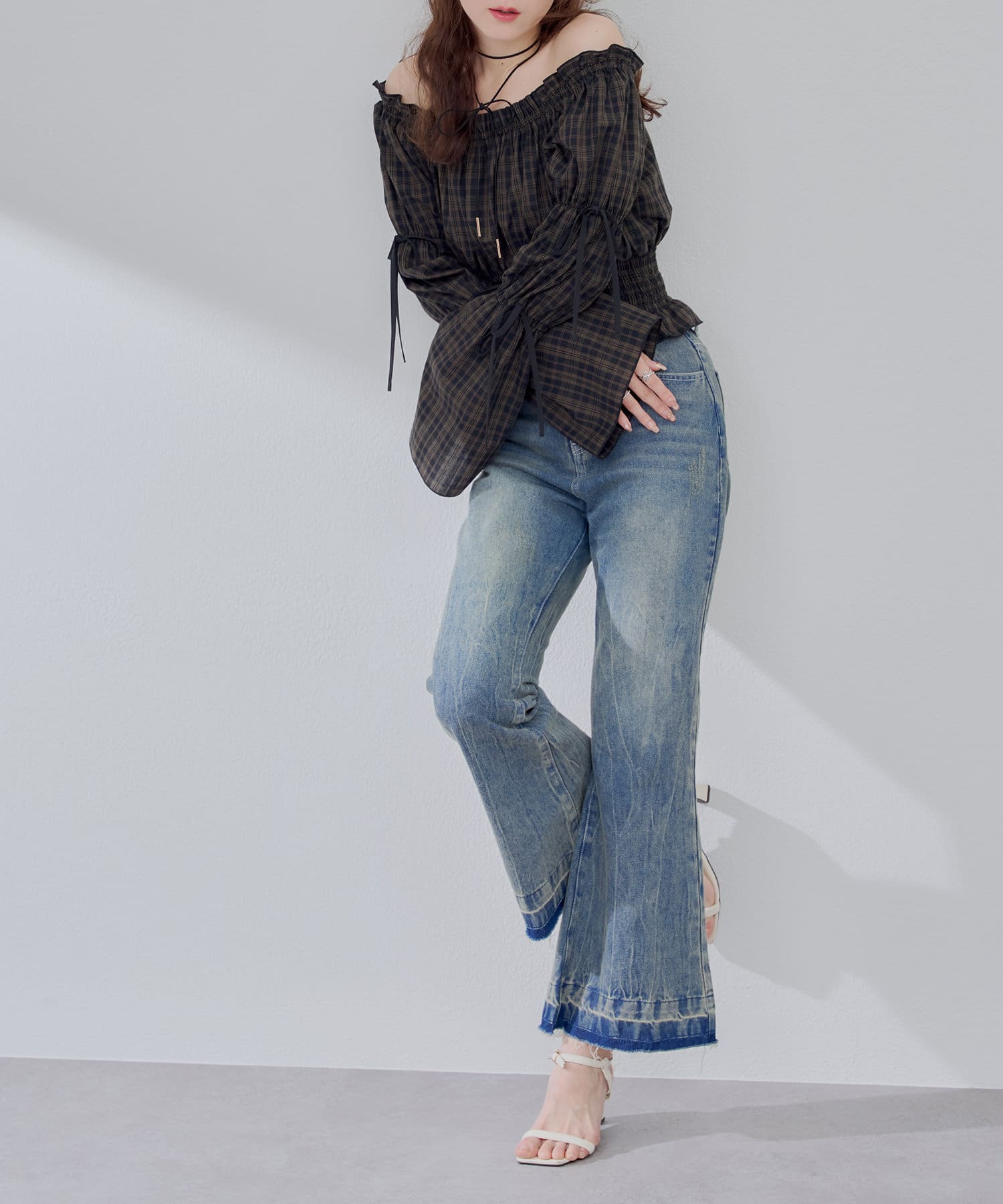 【@may_81oセレクト】美脚フレアデニムパンツ