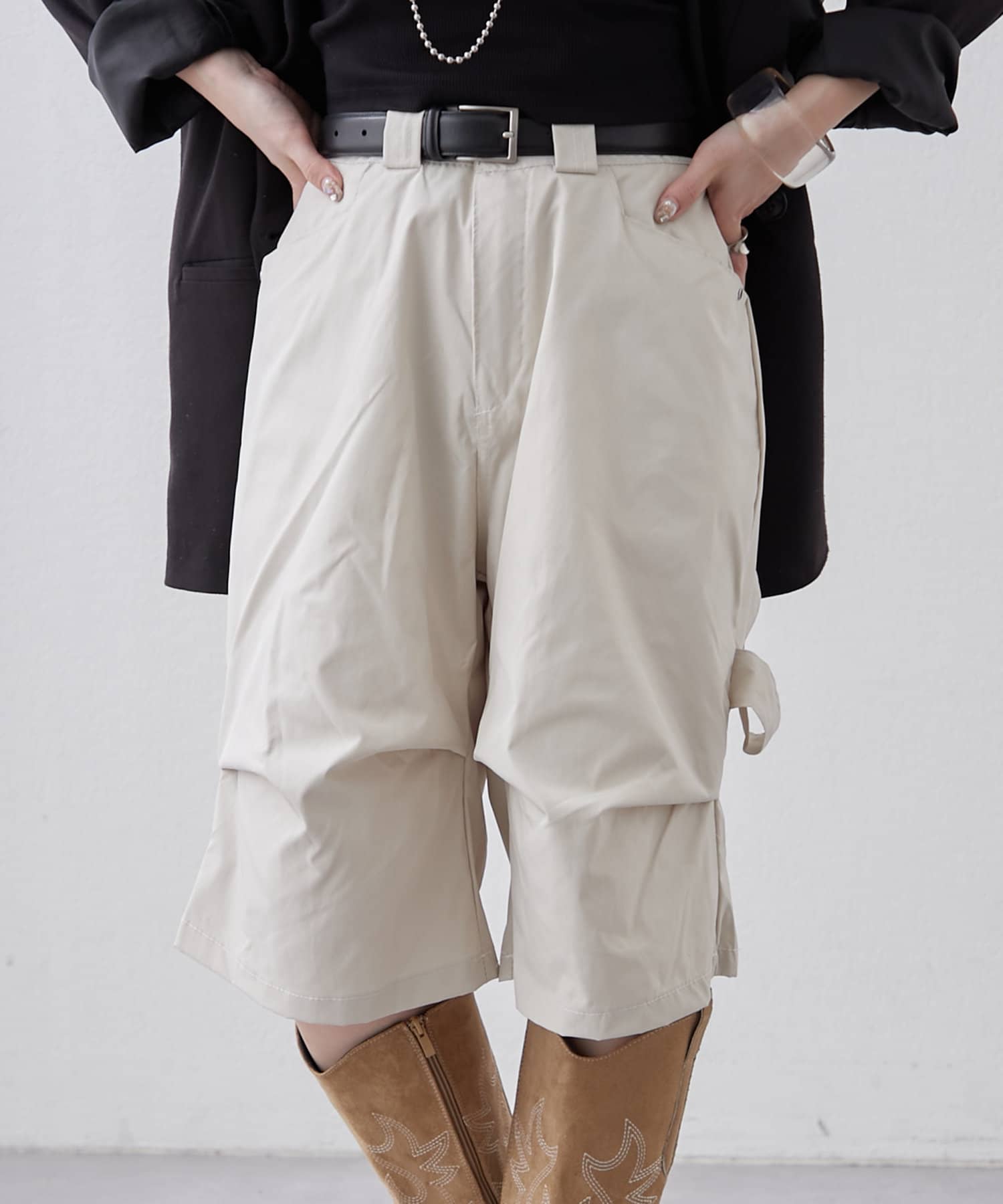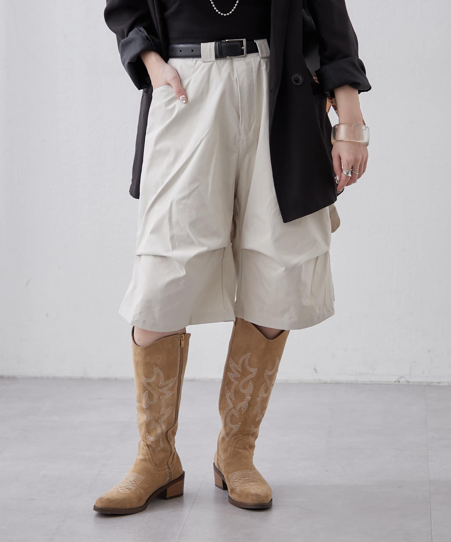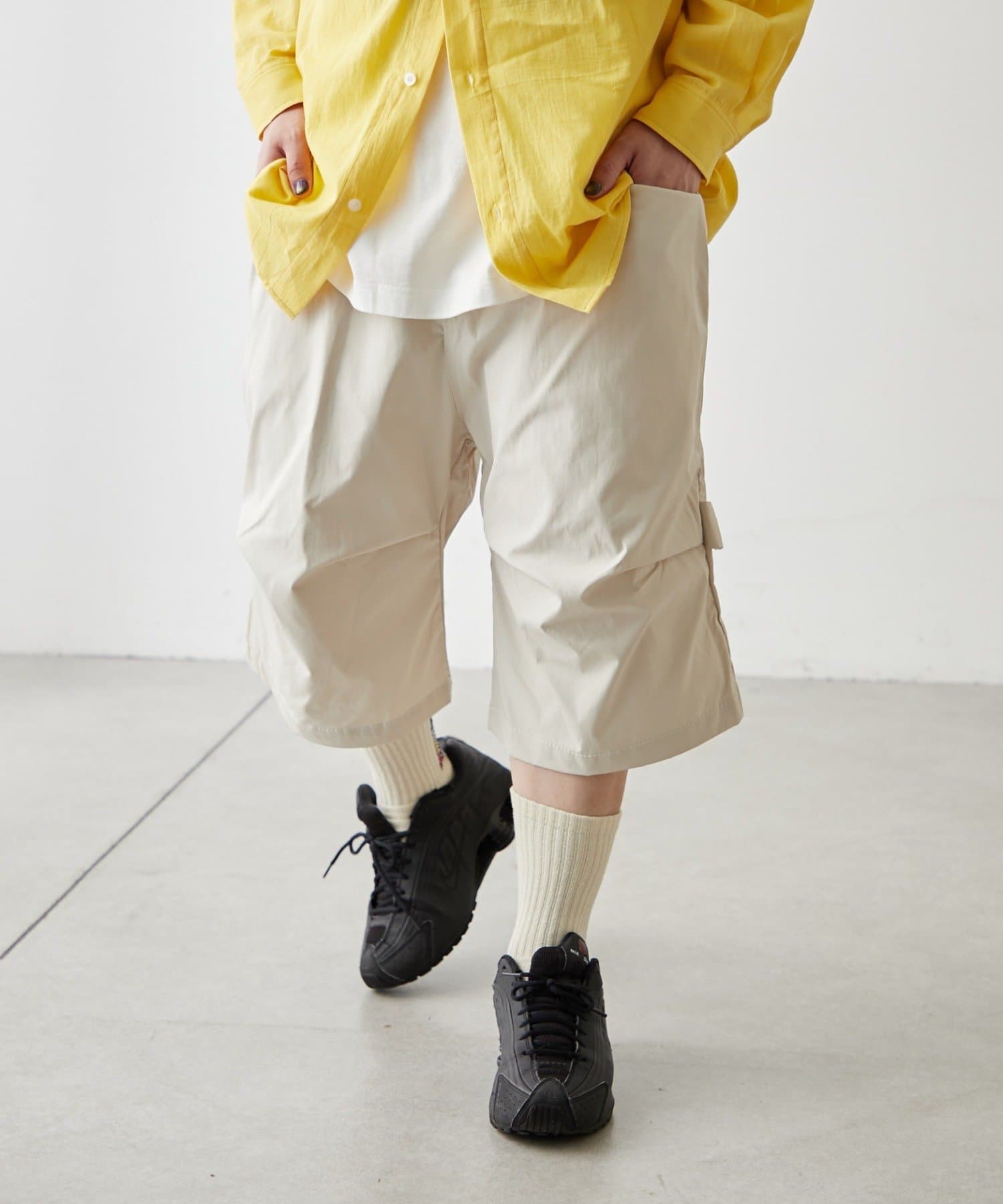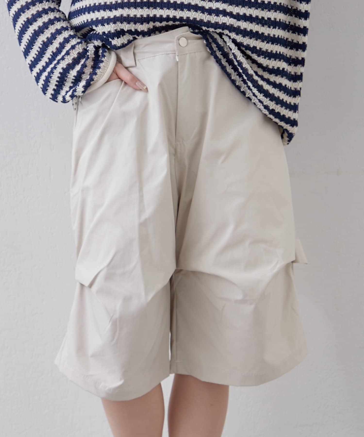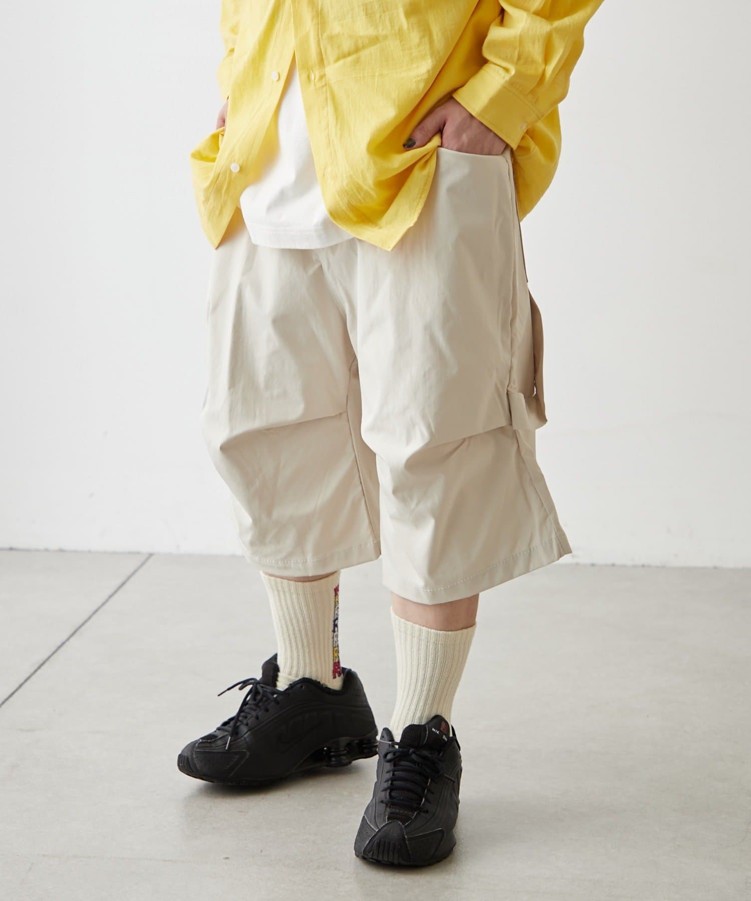 ・変形タックで一癖ありなハーフパンツ。