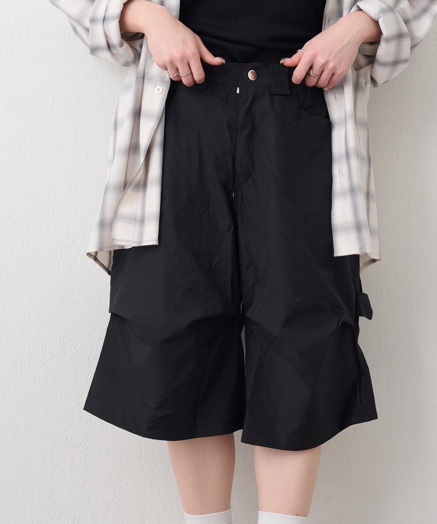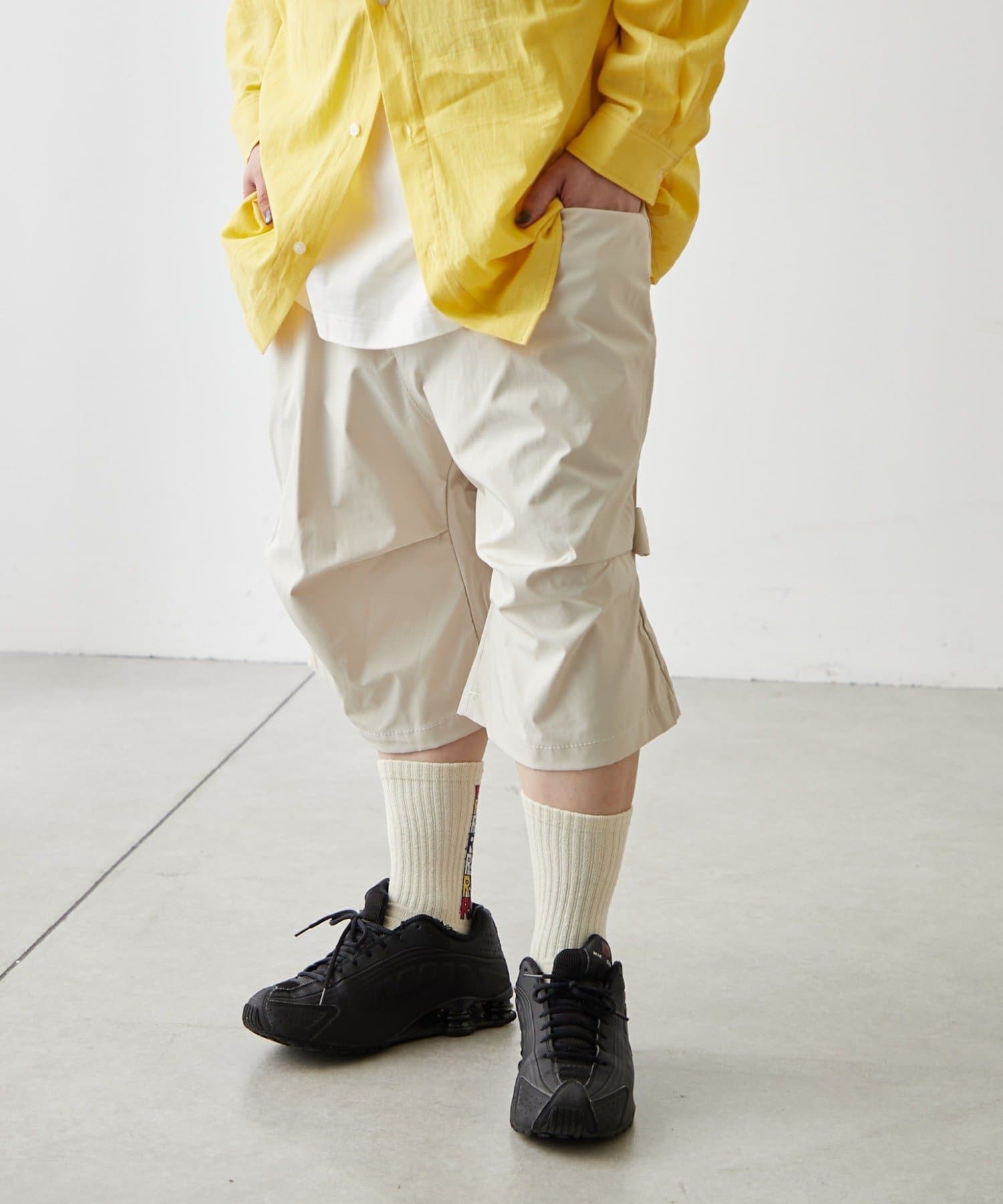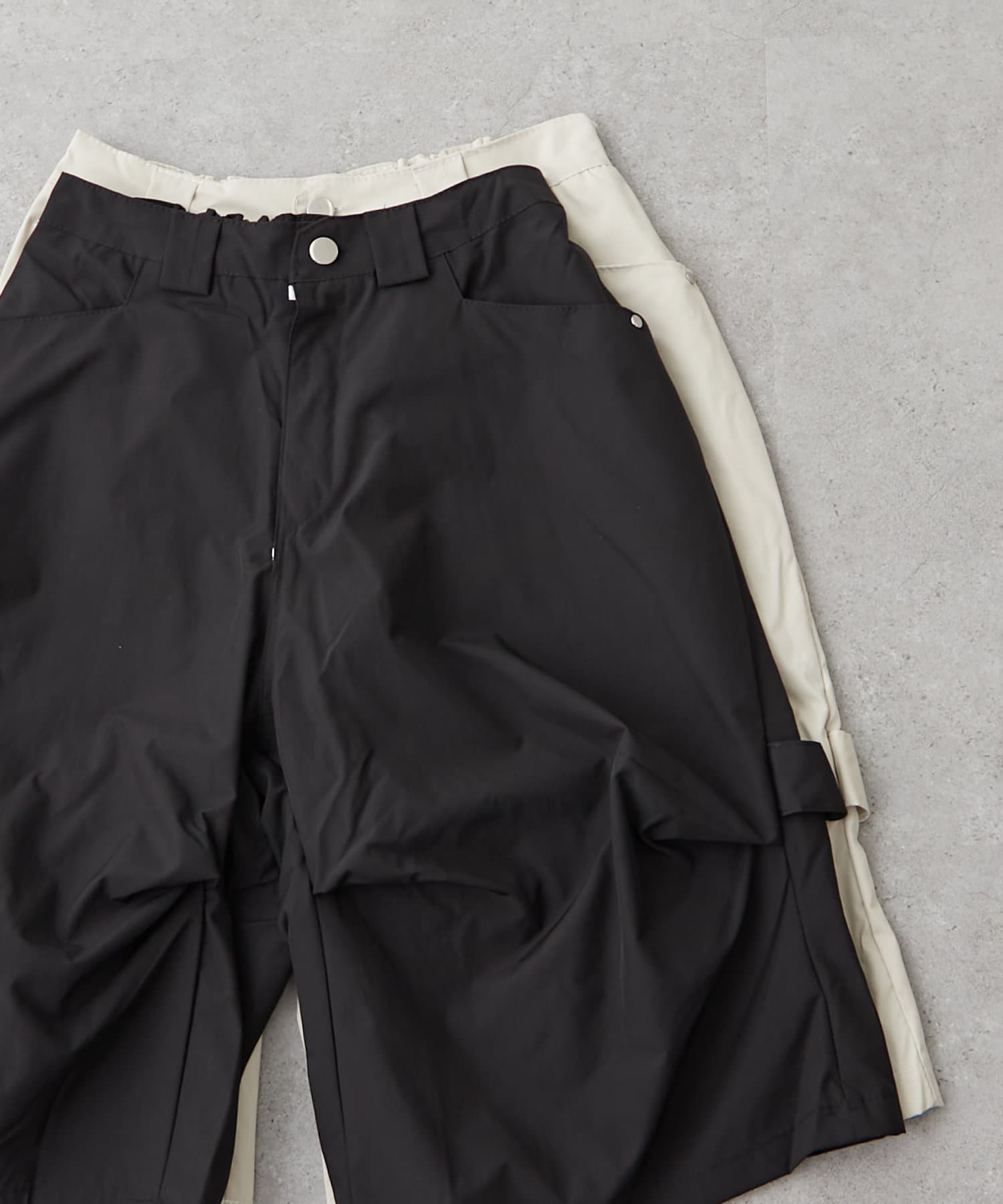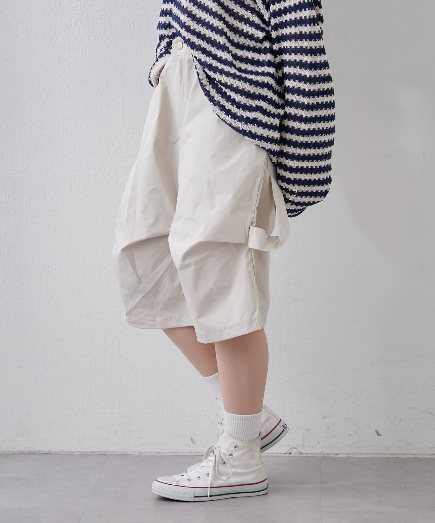 ・変形タックで一癖ありなハーフパンツ。