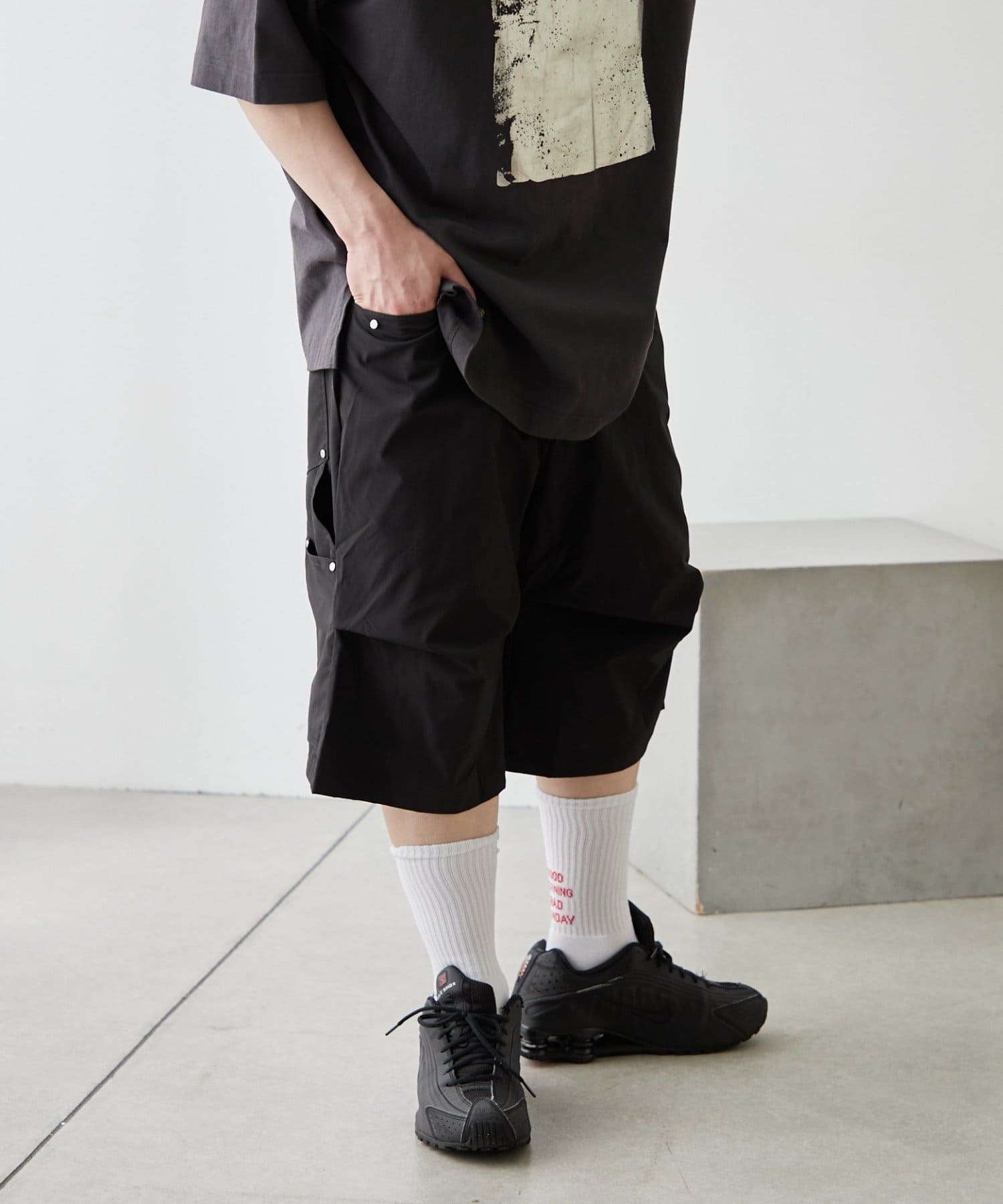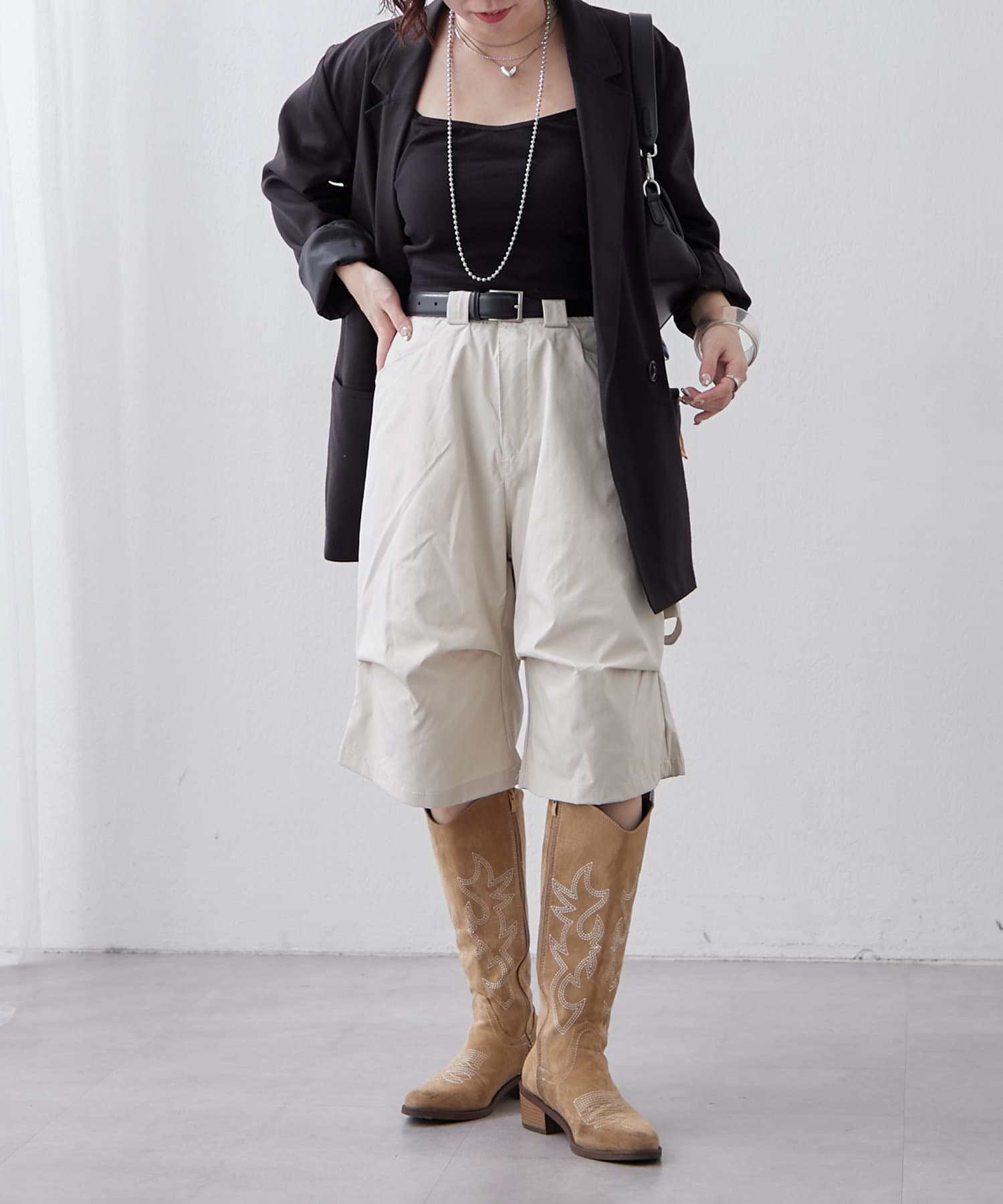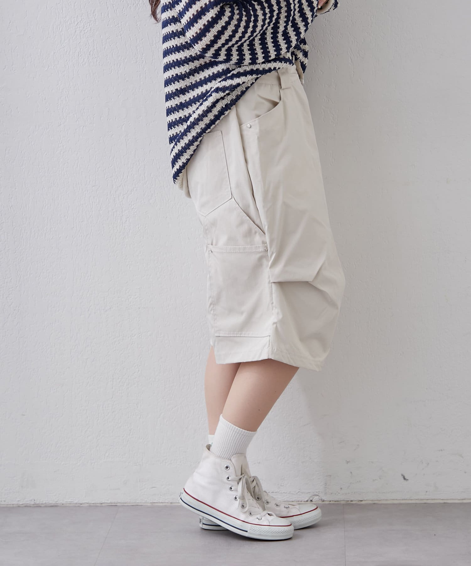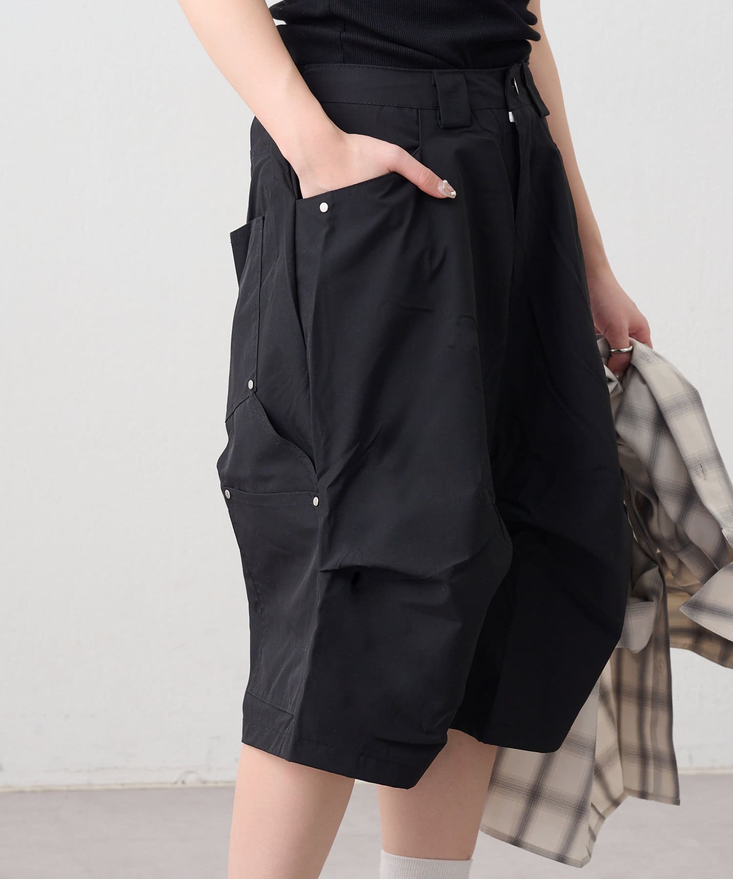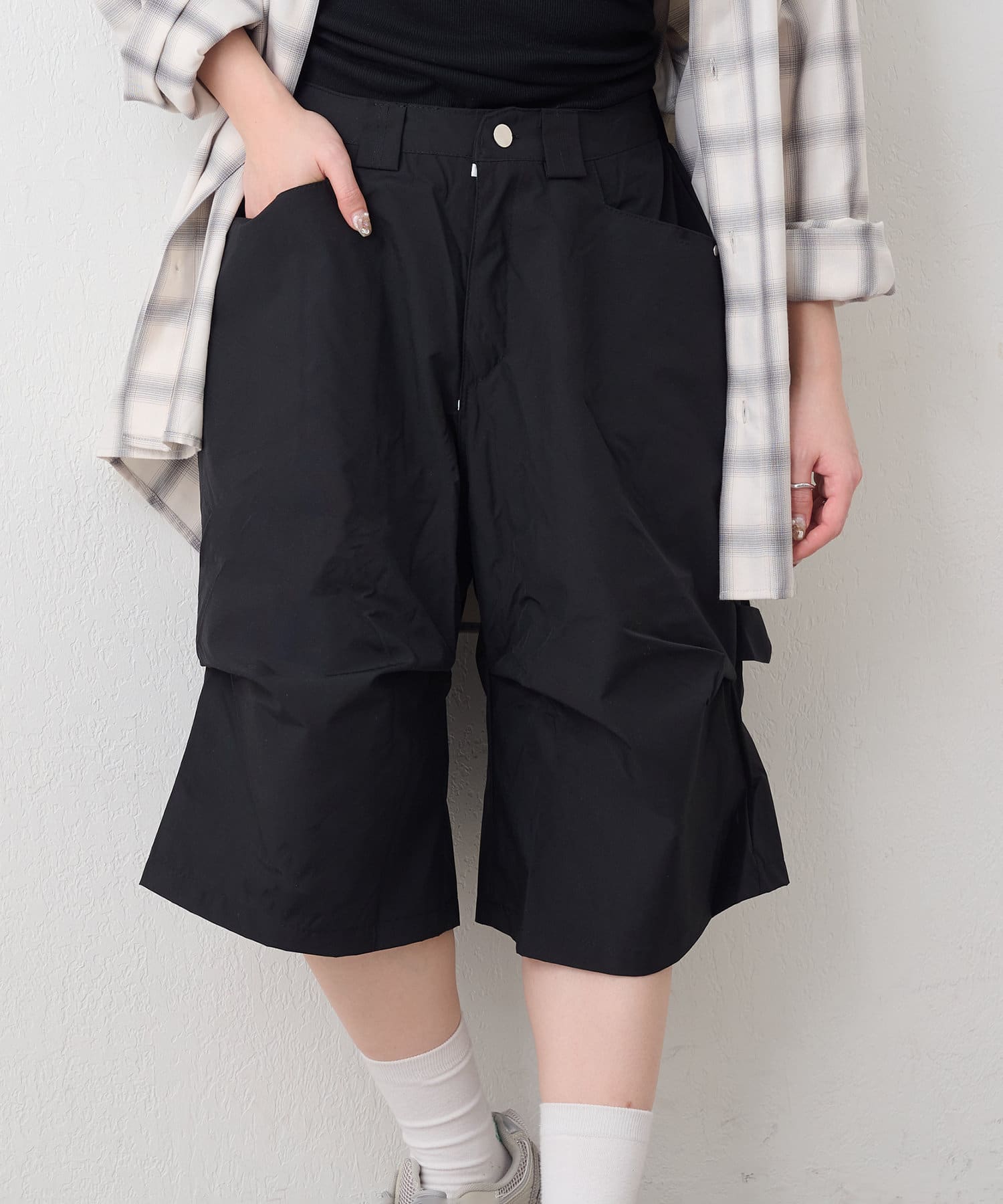 ・変形タックで一癖ありなハーフパンツ。