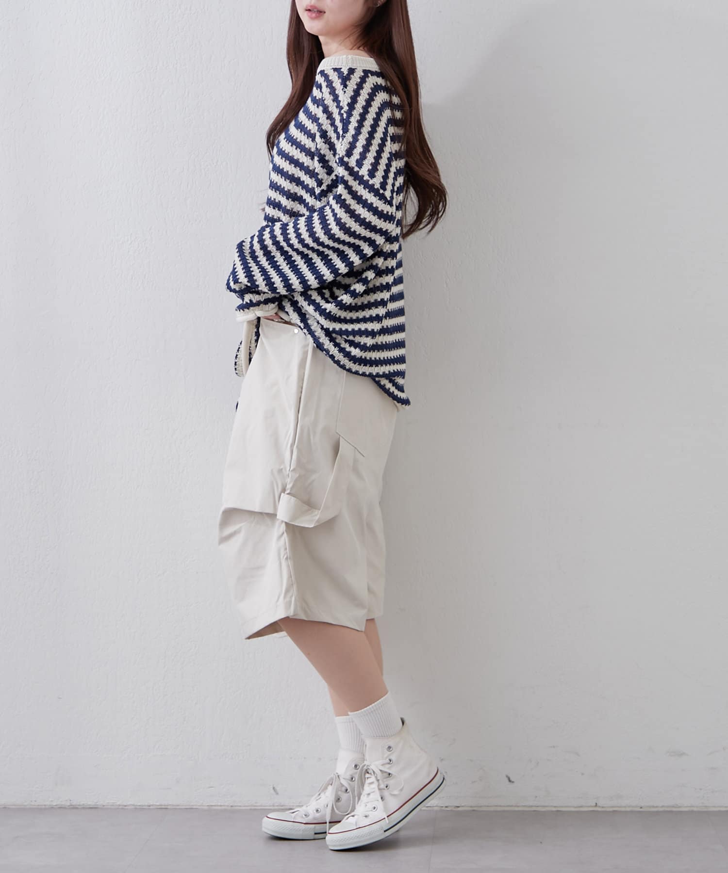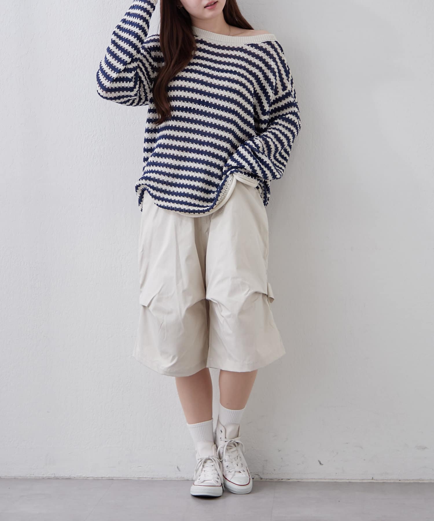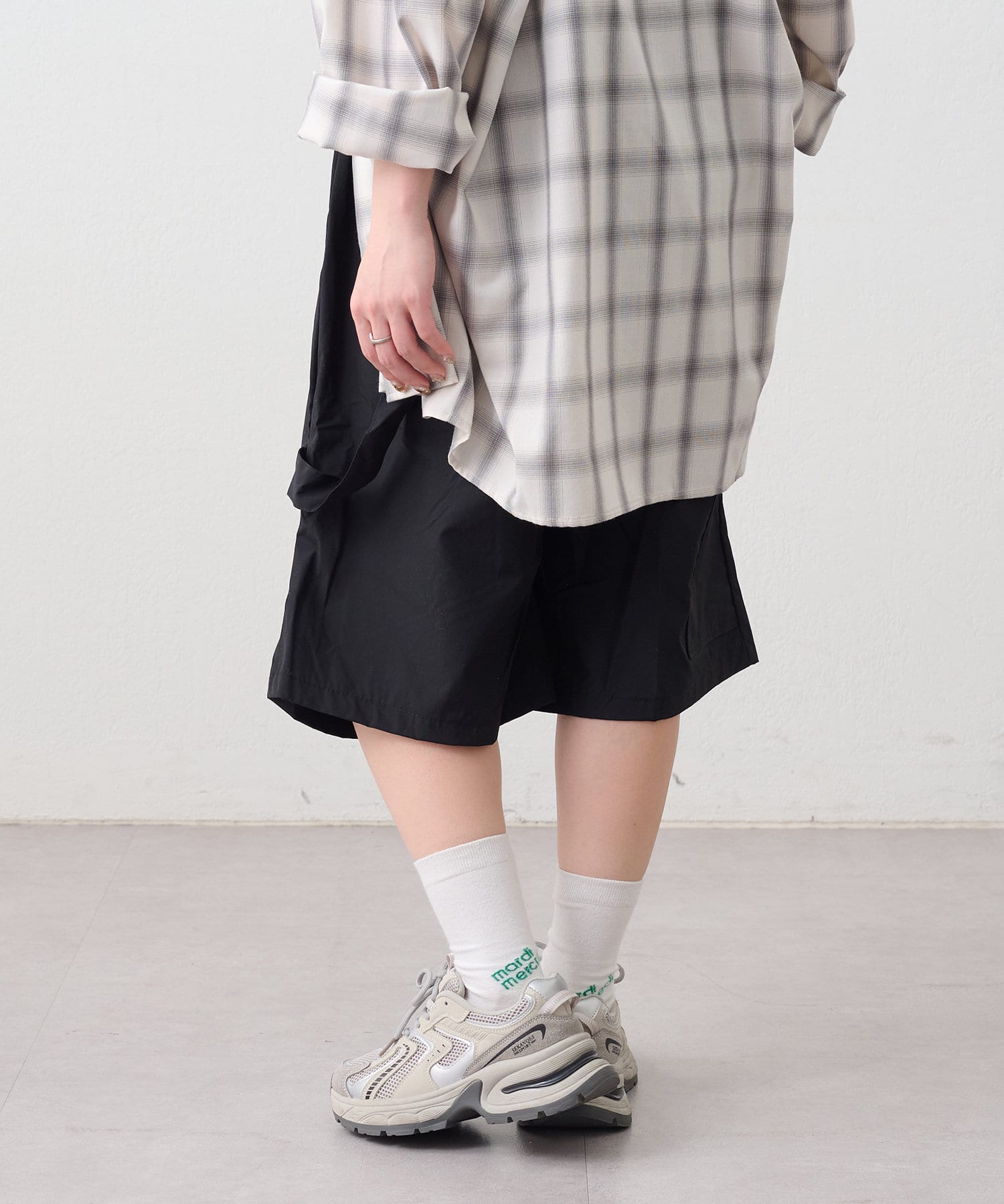 ・長めのリブソックスにスニーカーを合わせた韓国カジュアルなスタイリングも◎