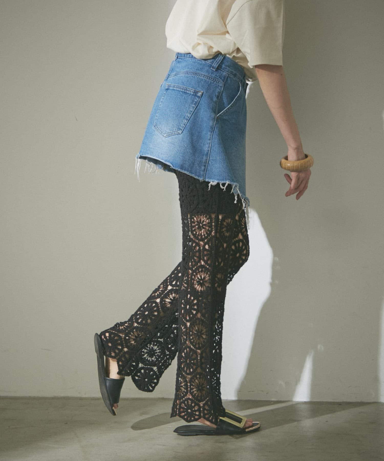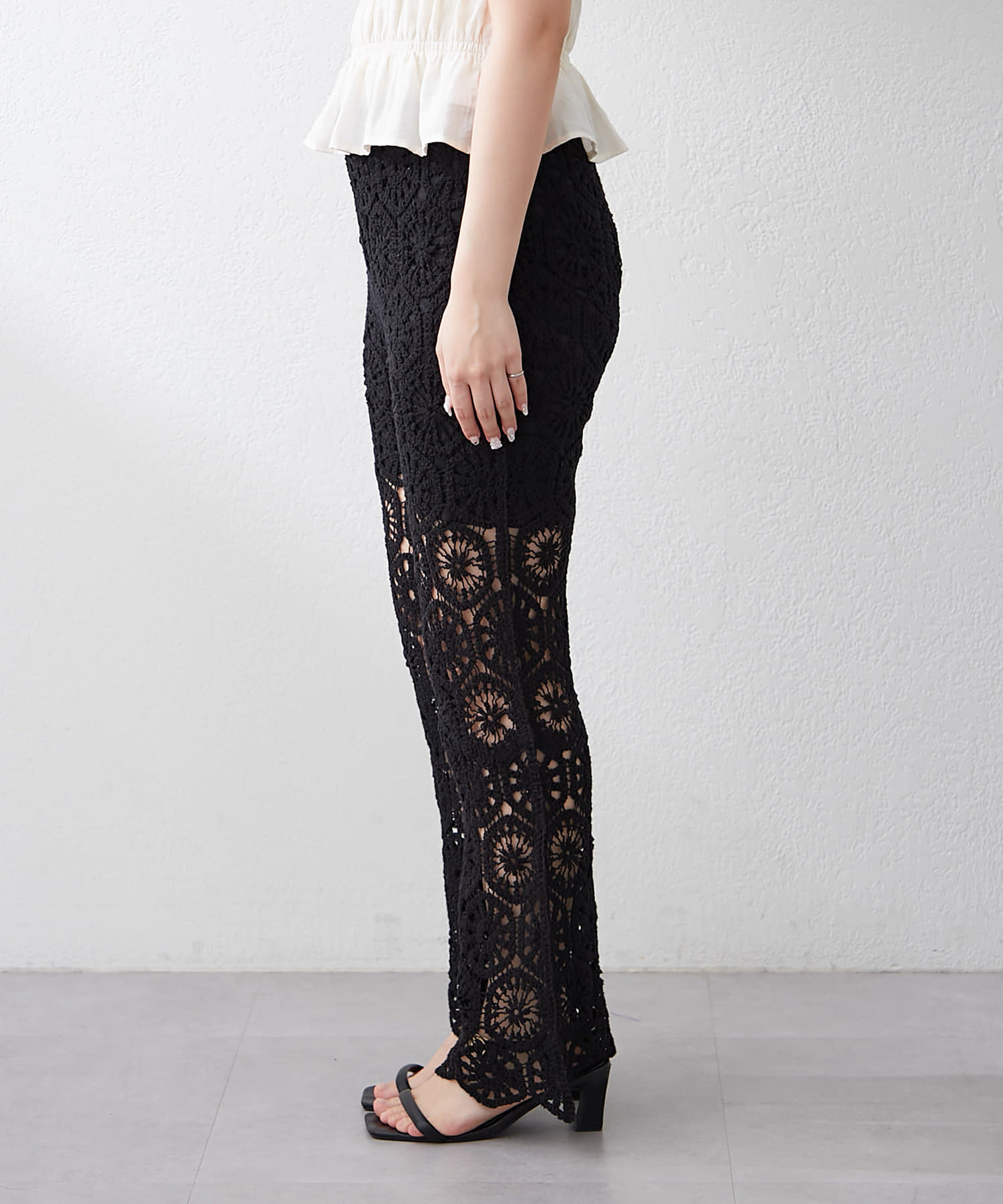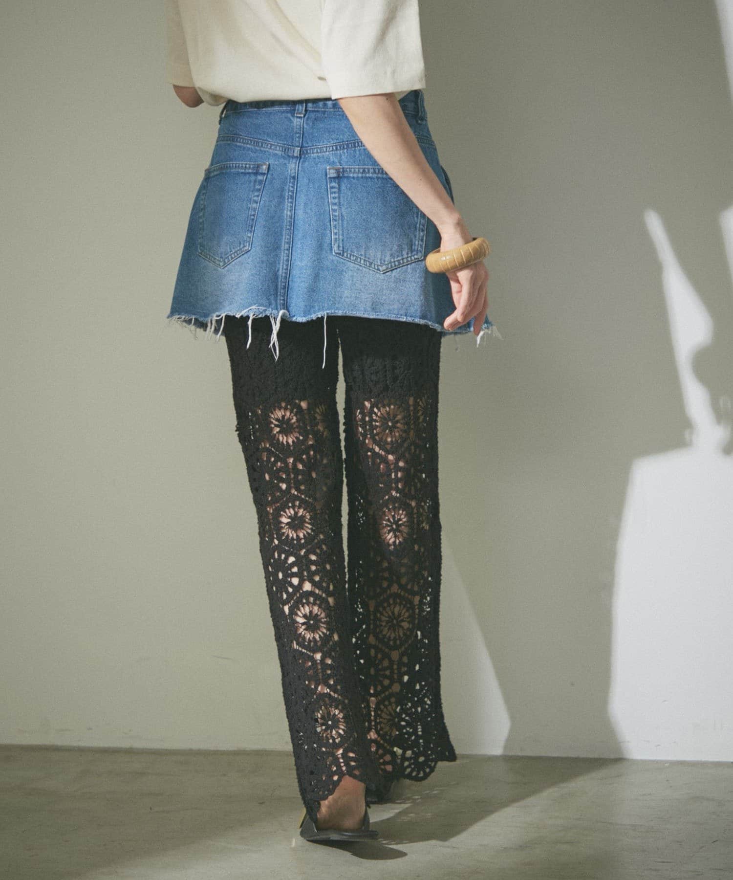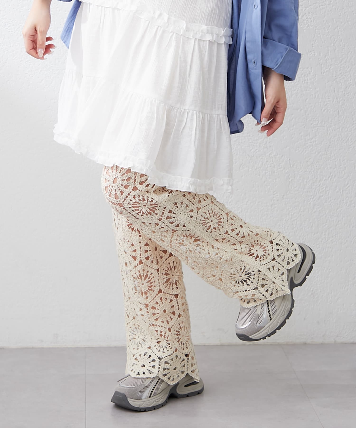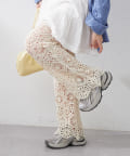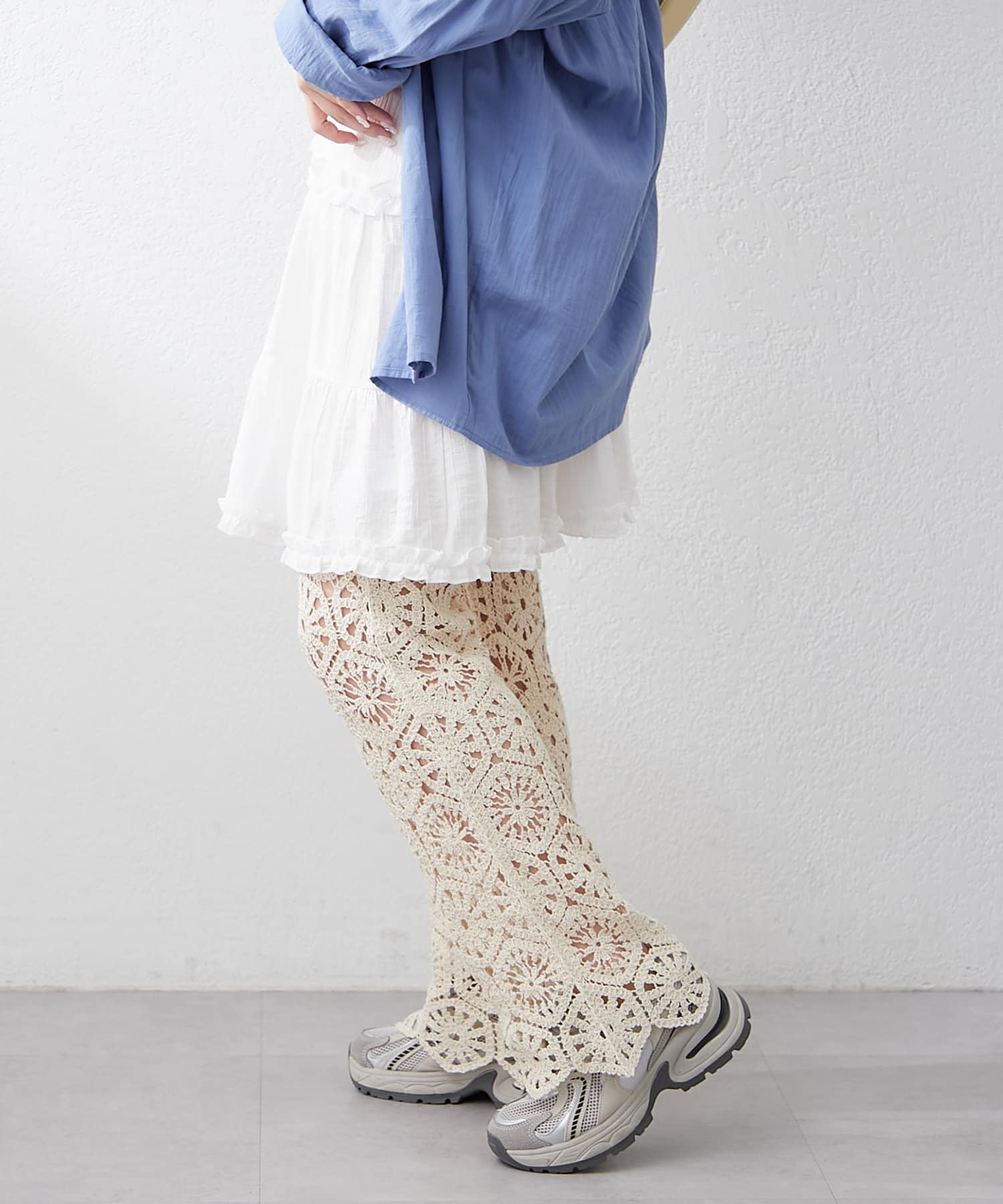 レイヤードコーデにおすすめ!カギ針ニットパンツ