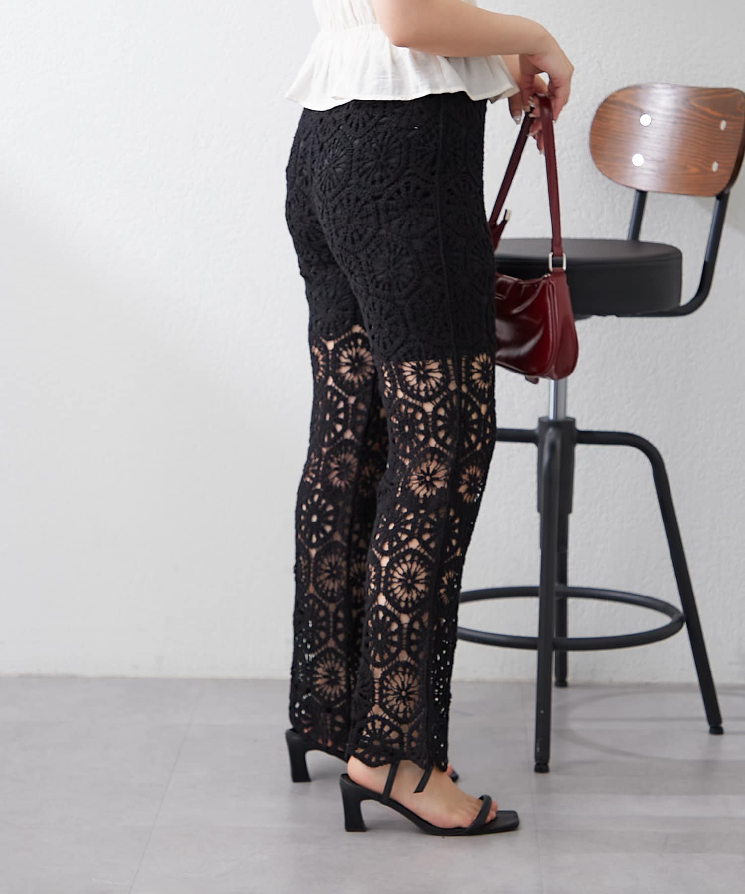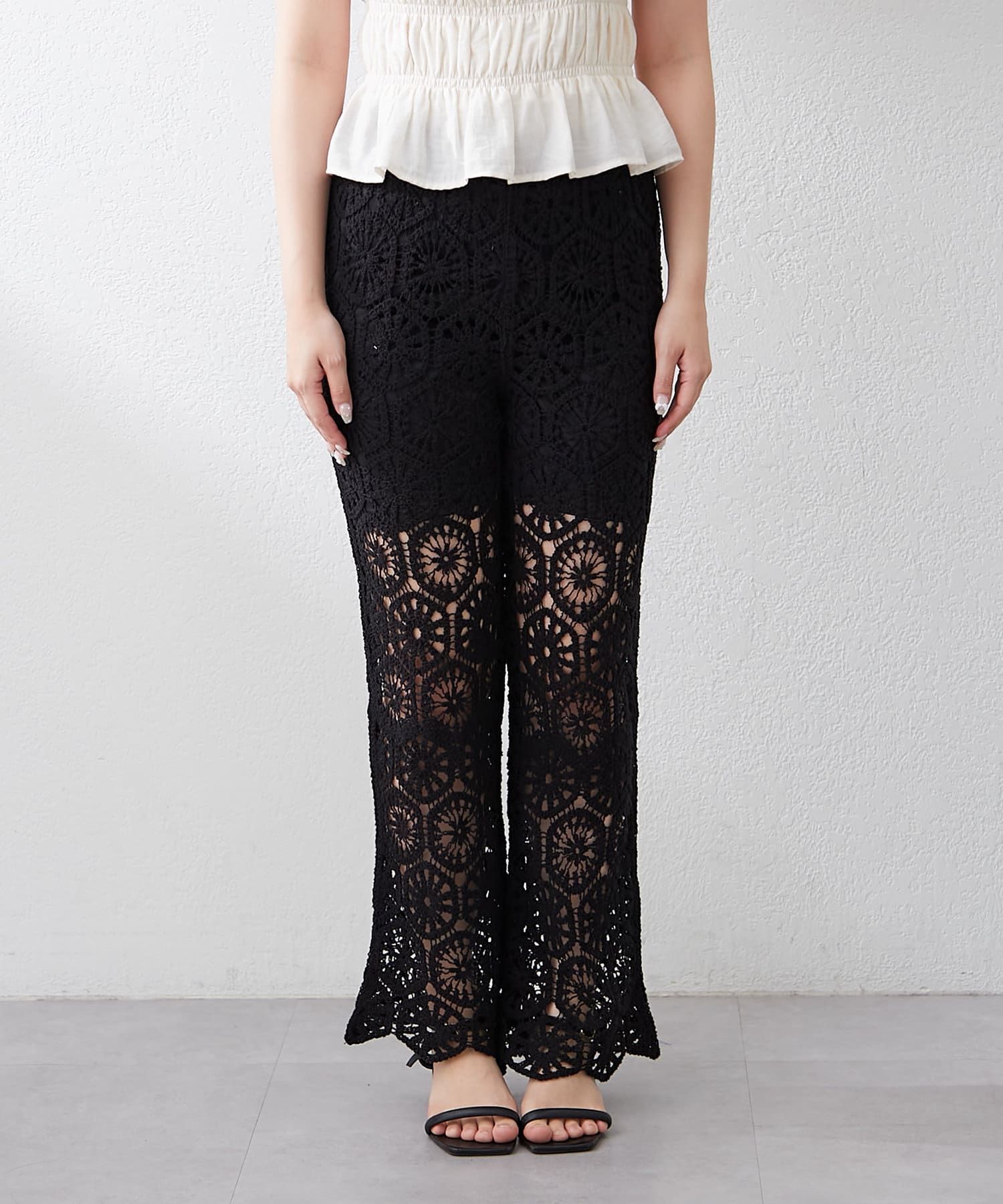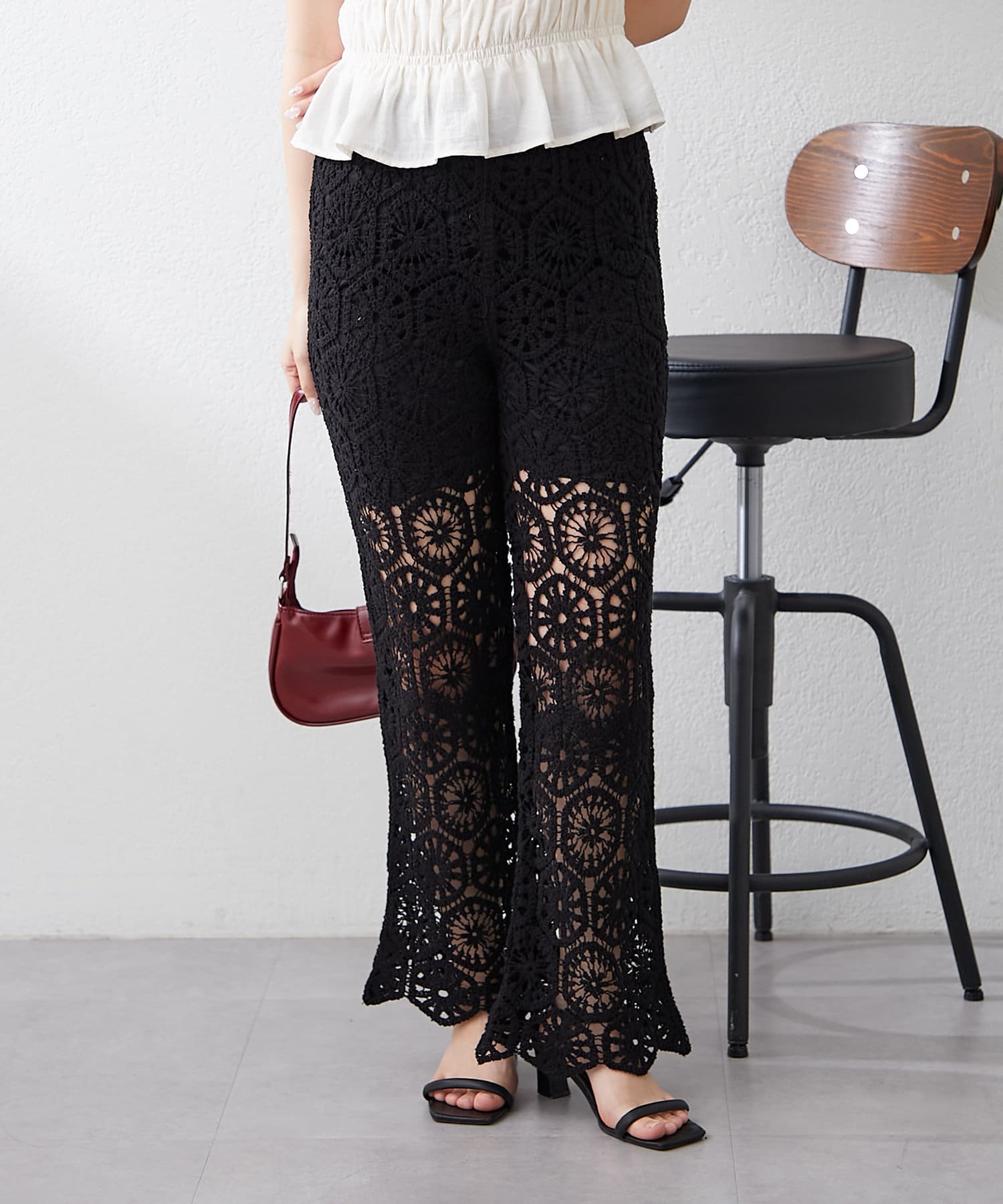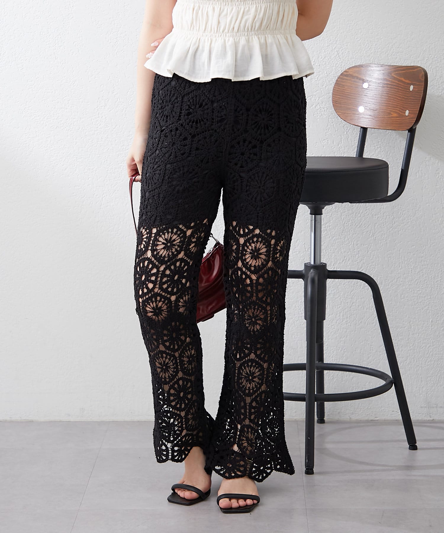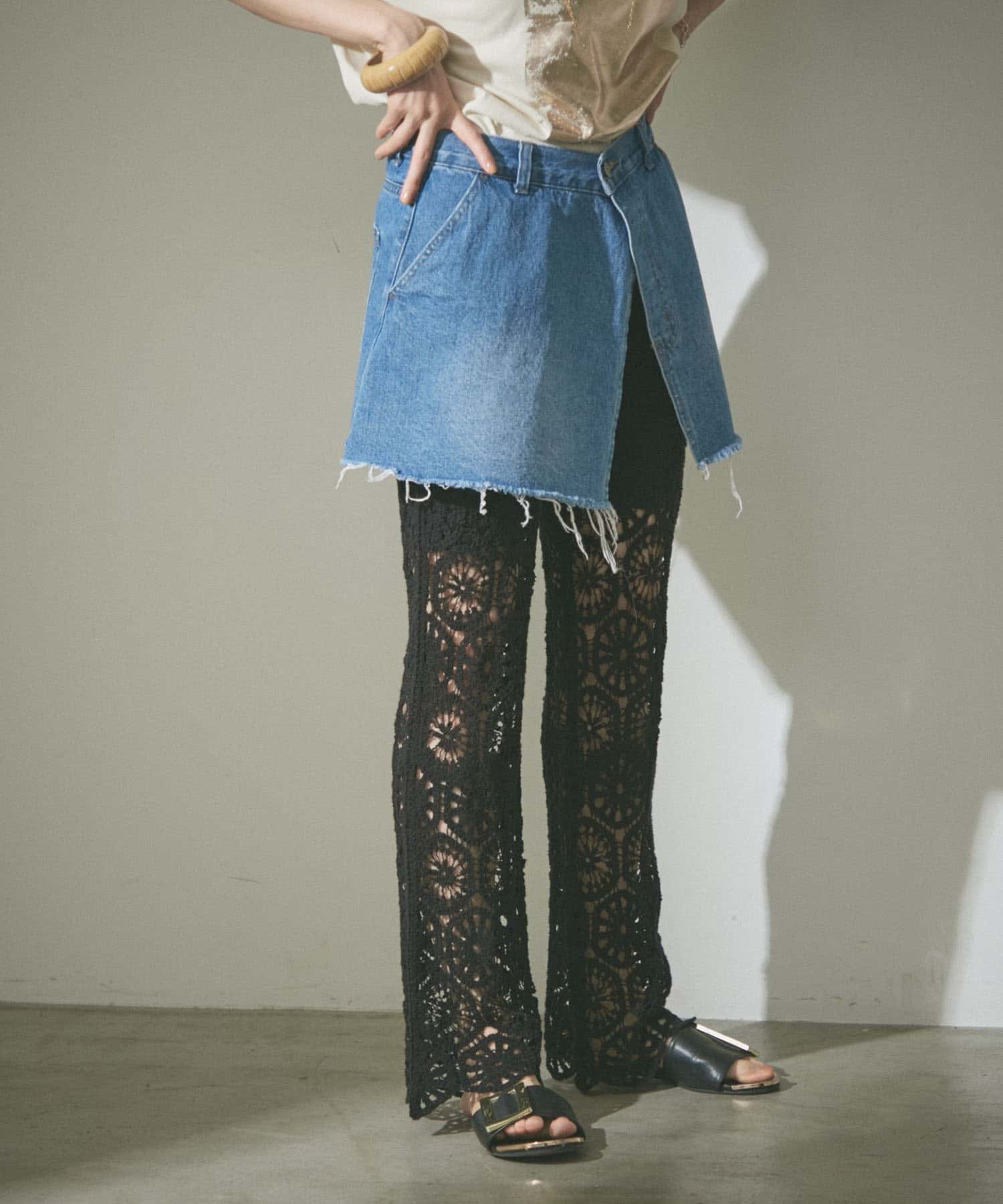 レイヤードコーデにおすすめ!カギ針ニットパンツ