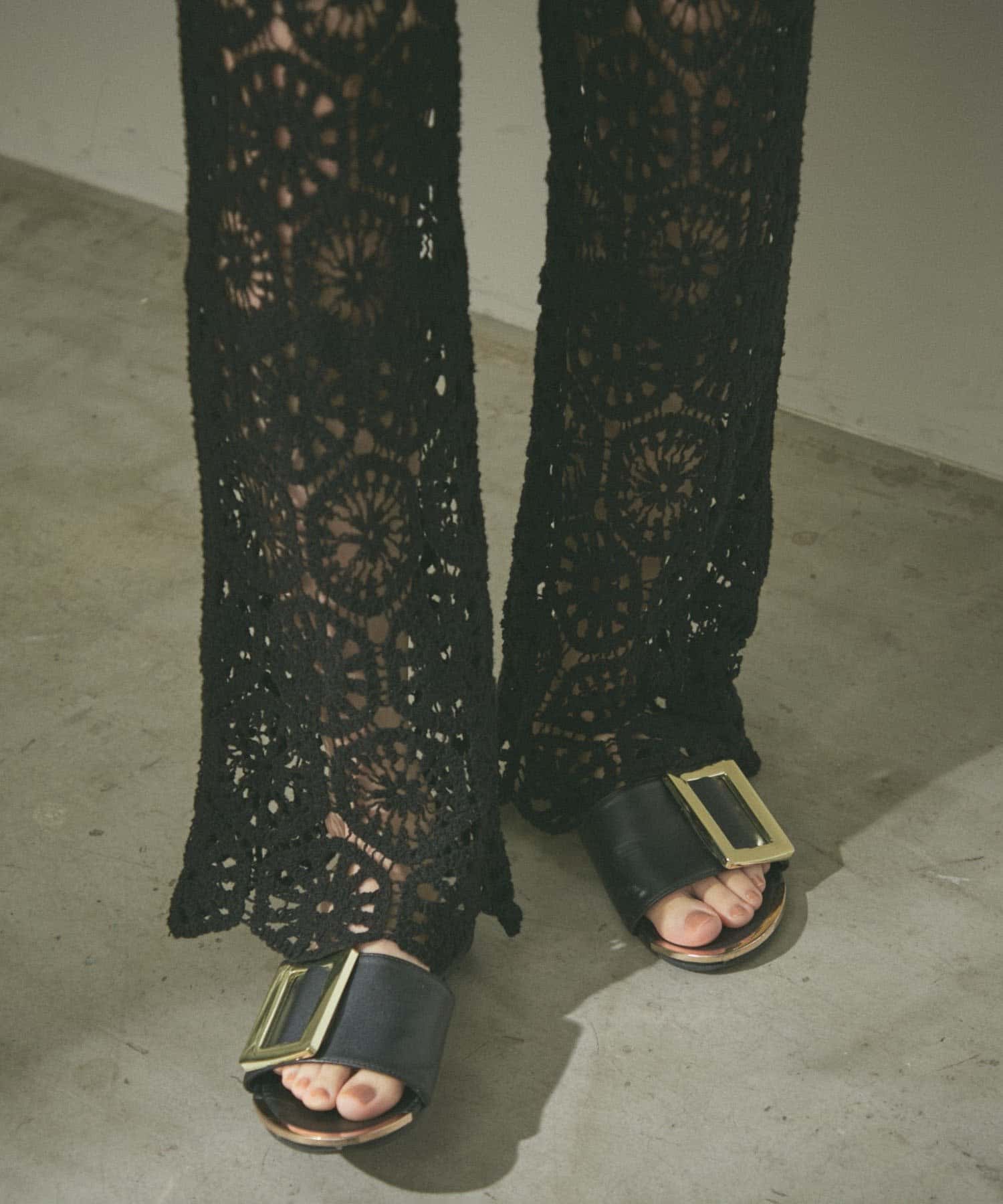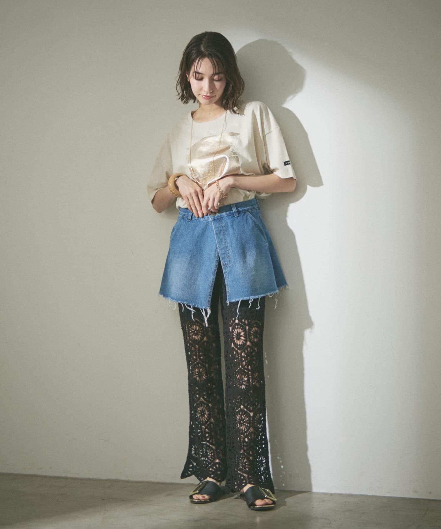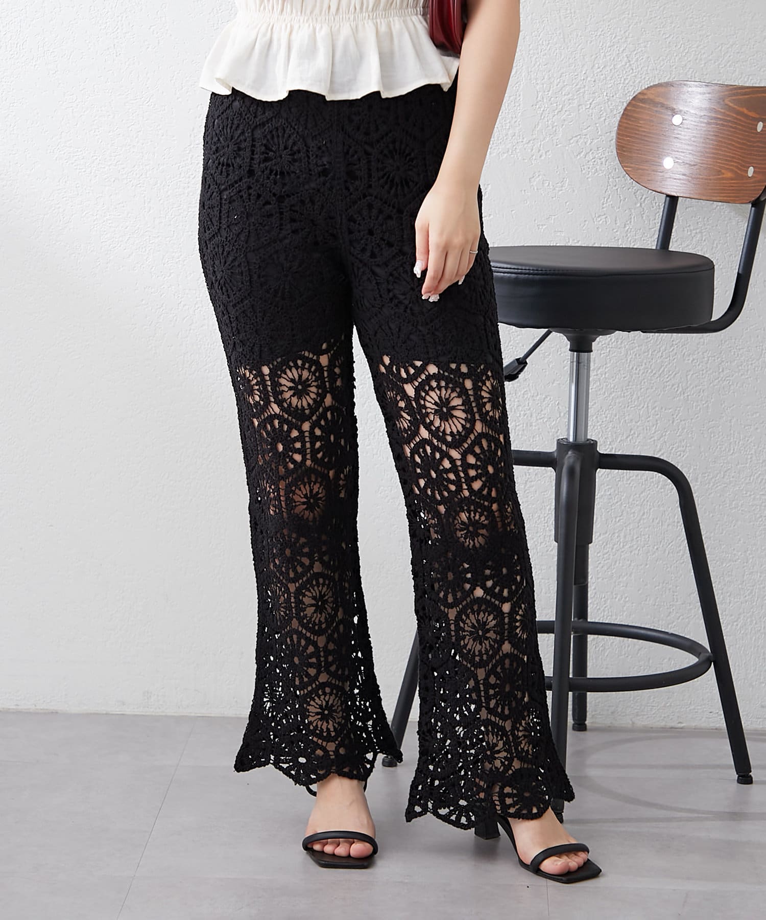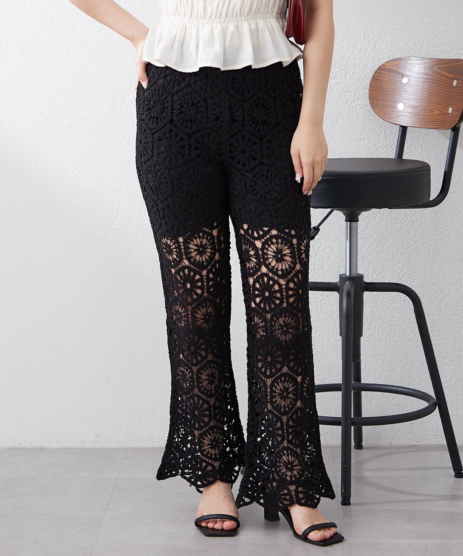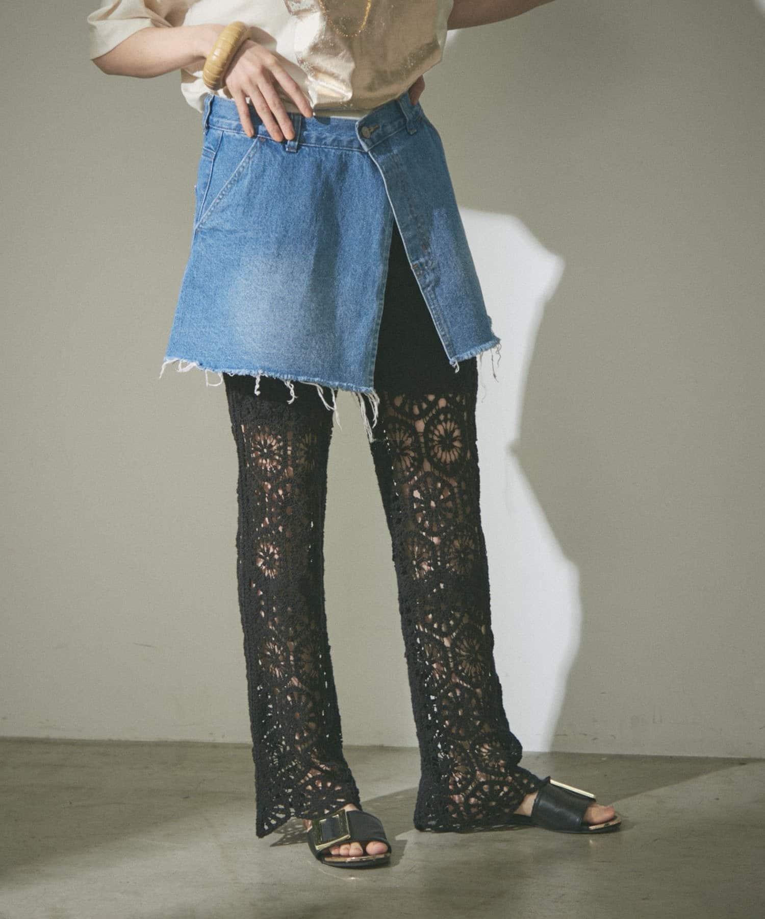 レイヤードコーデにおすすめ!カギ針ニットパンツ