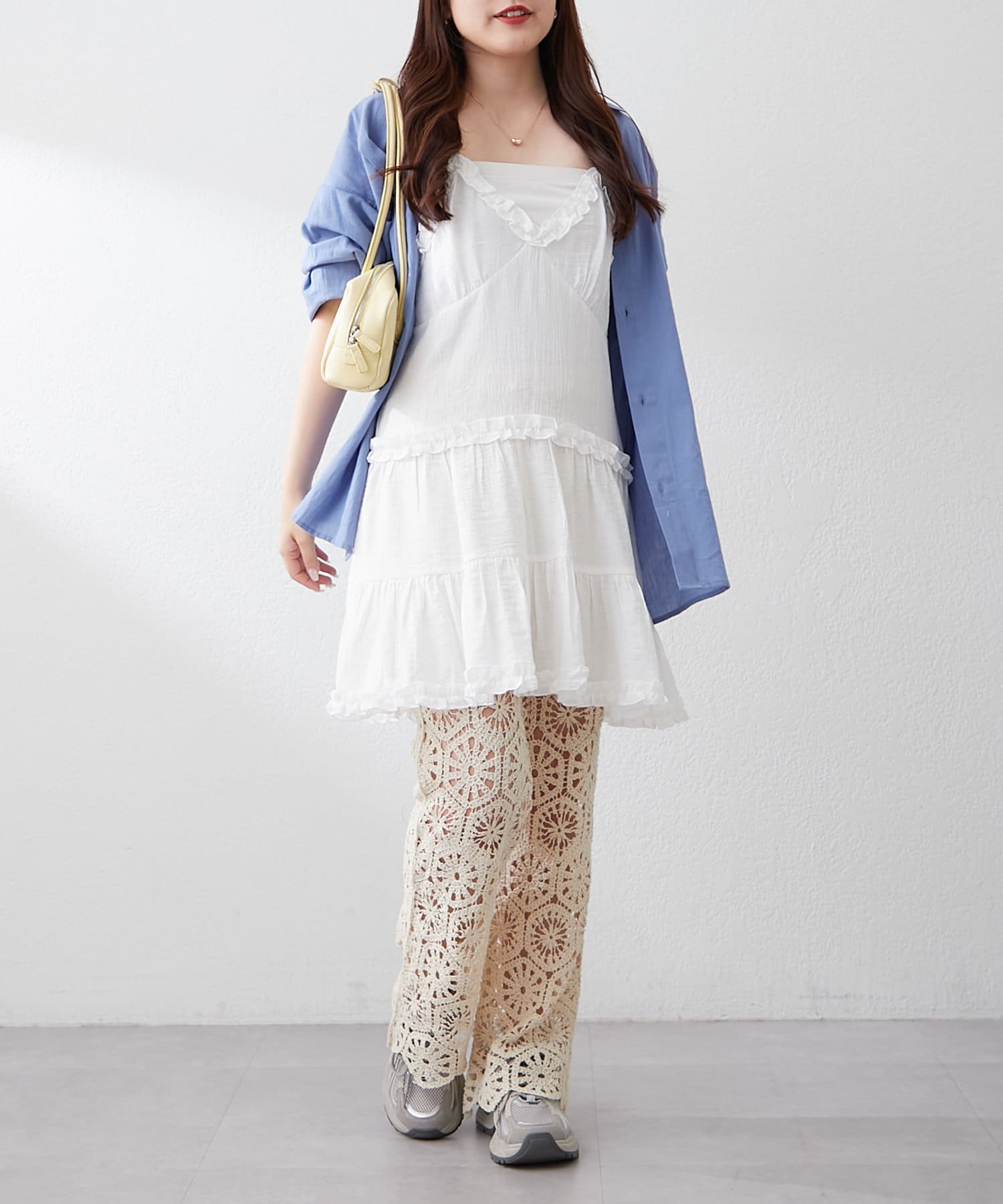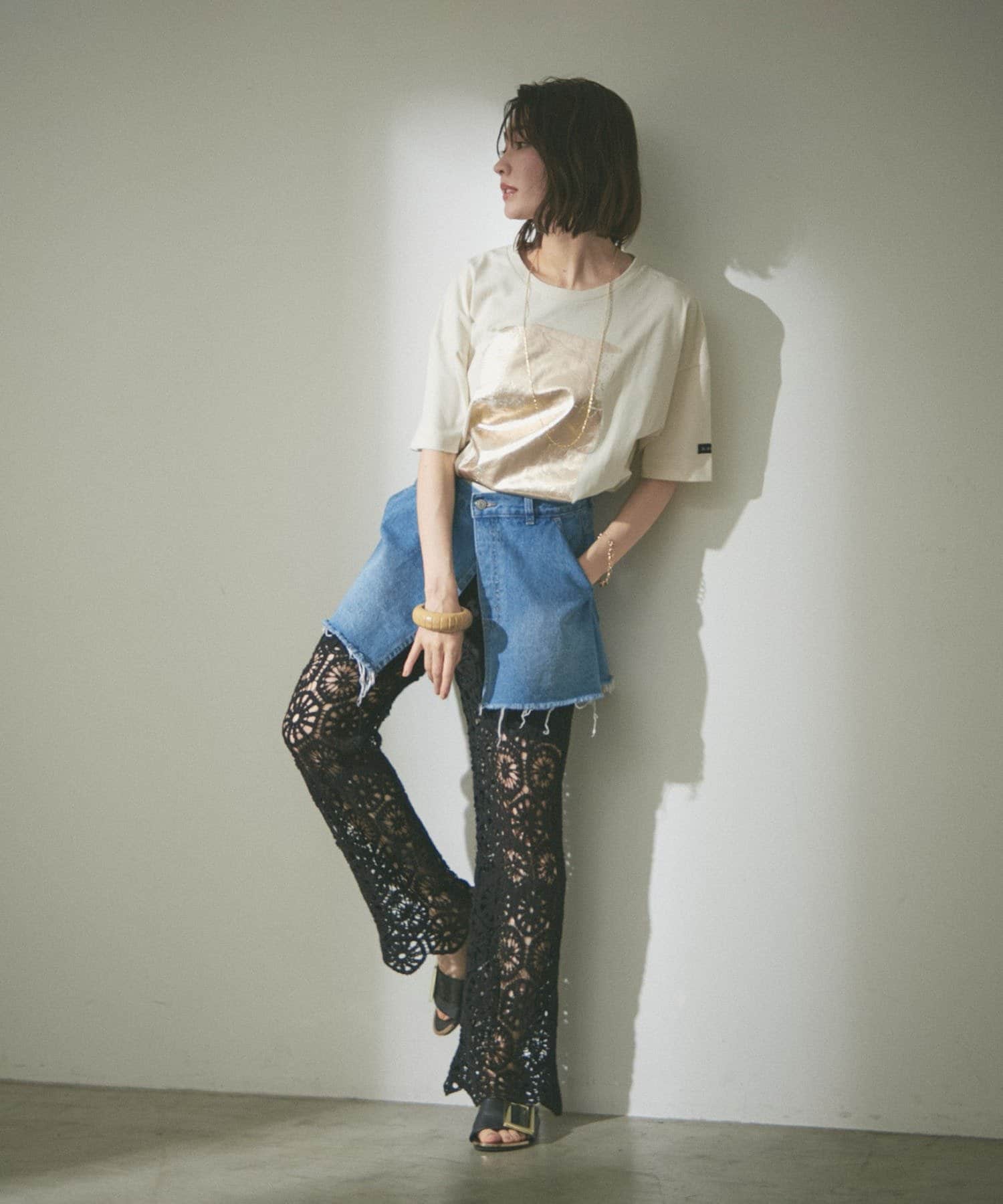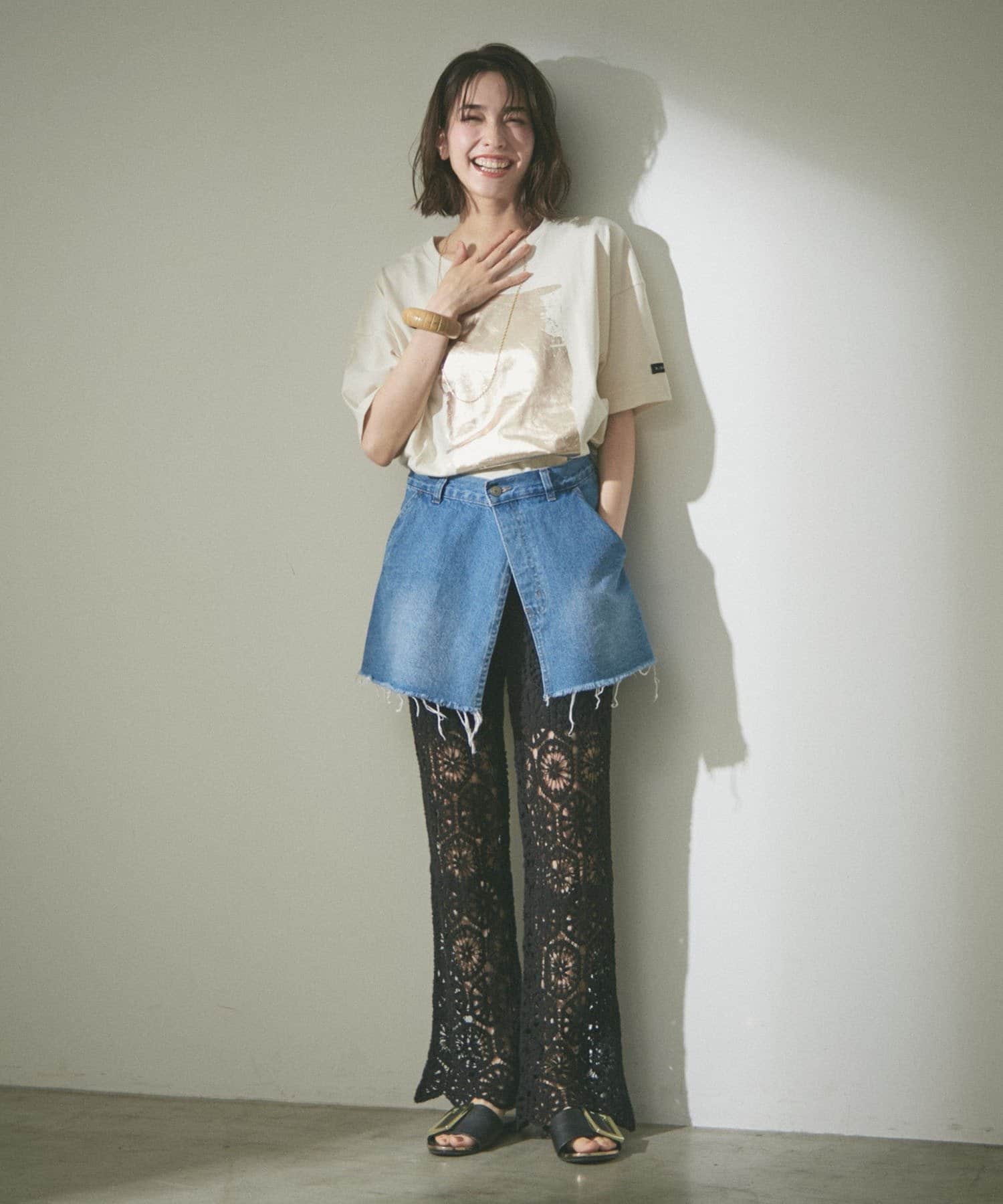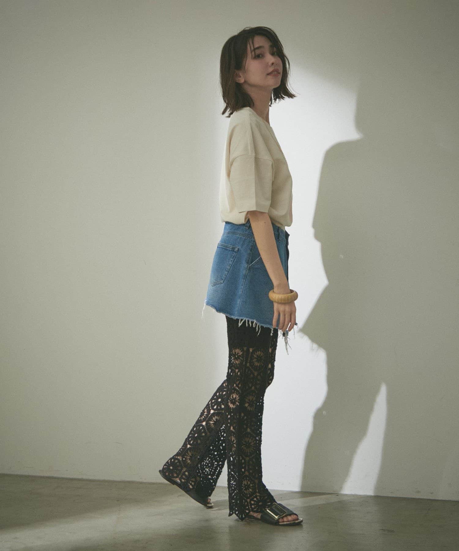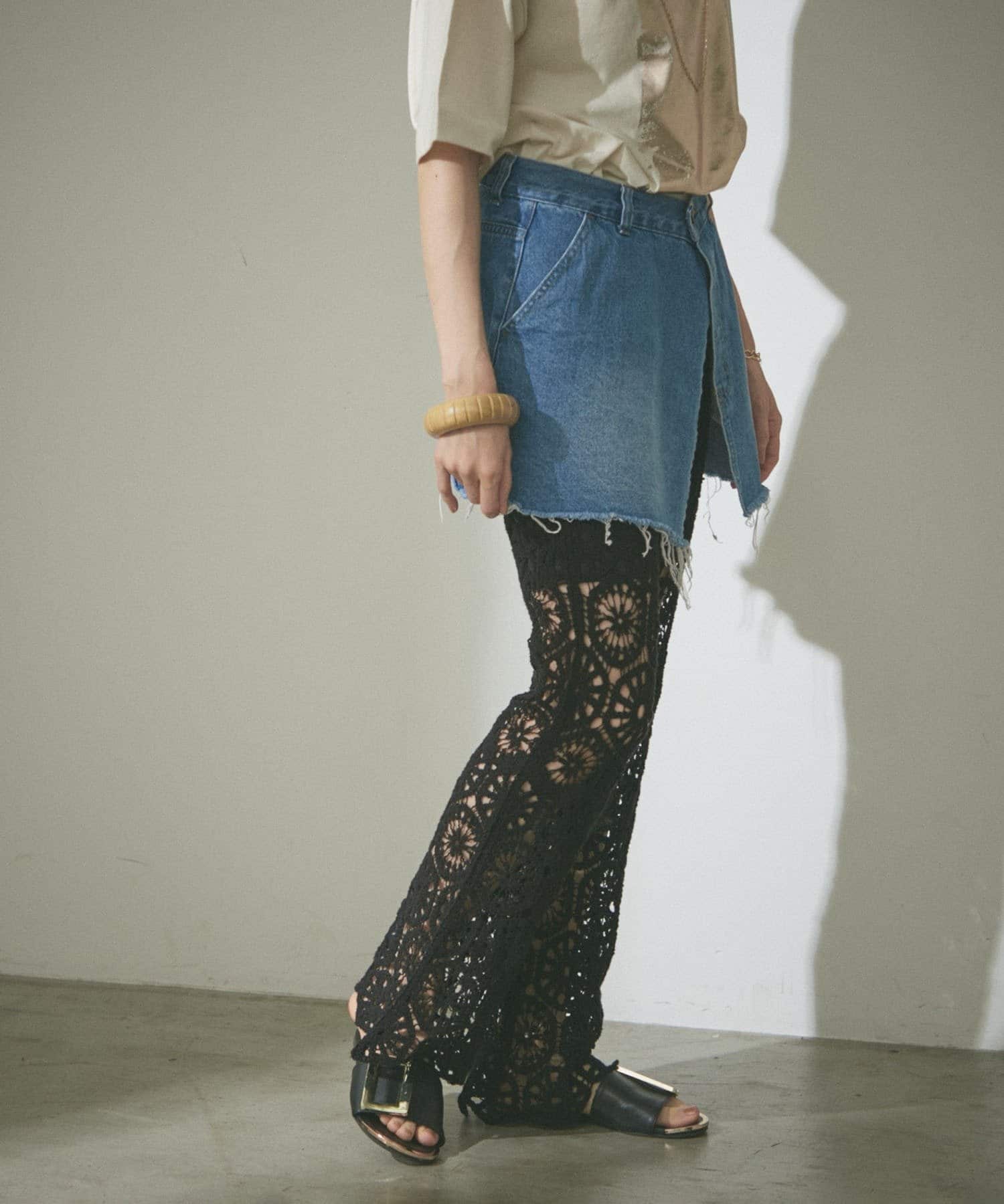 レイヤードコーデにおすすめ!カギ針ニットパンツ