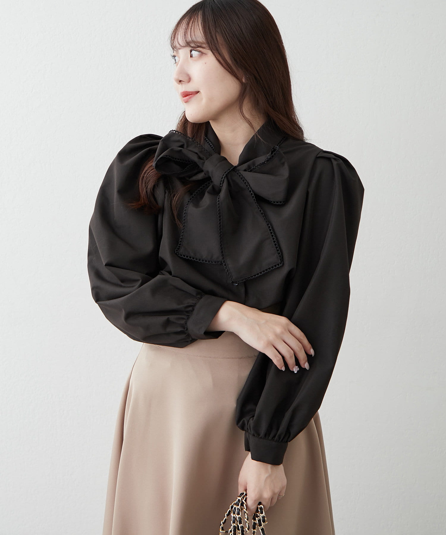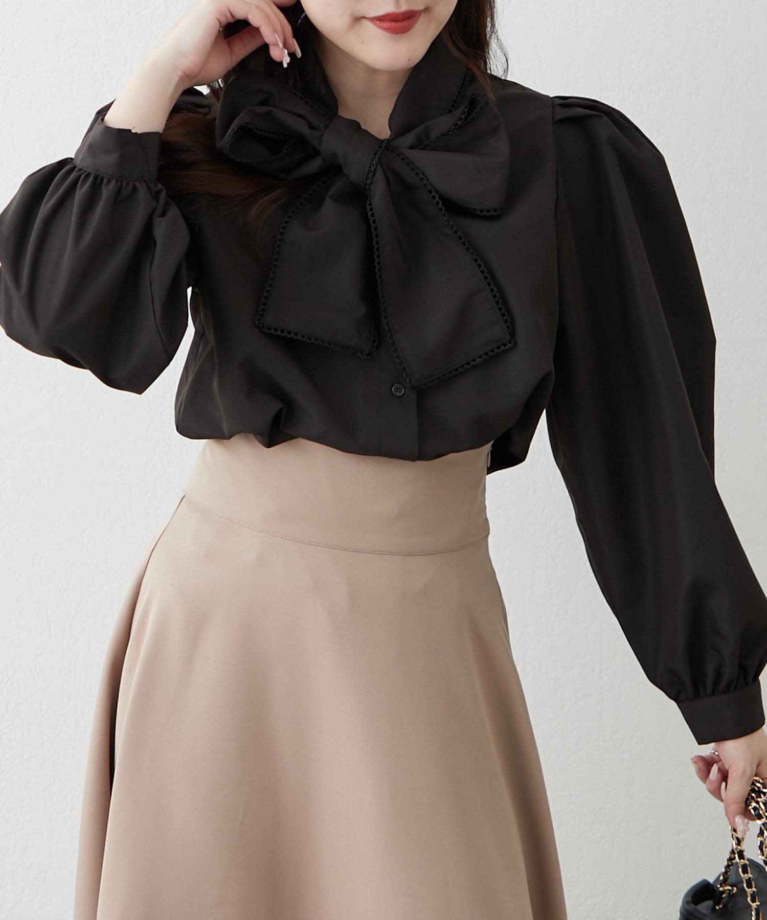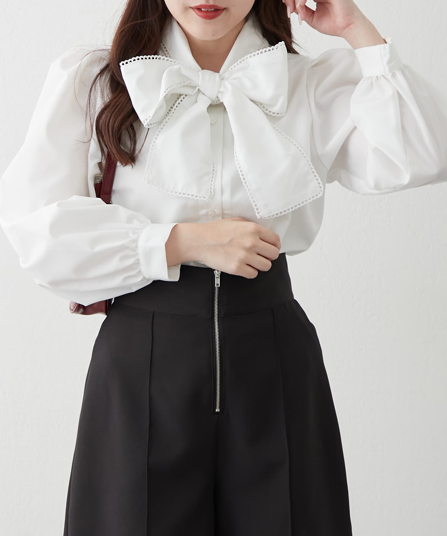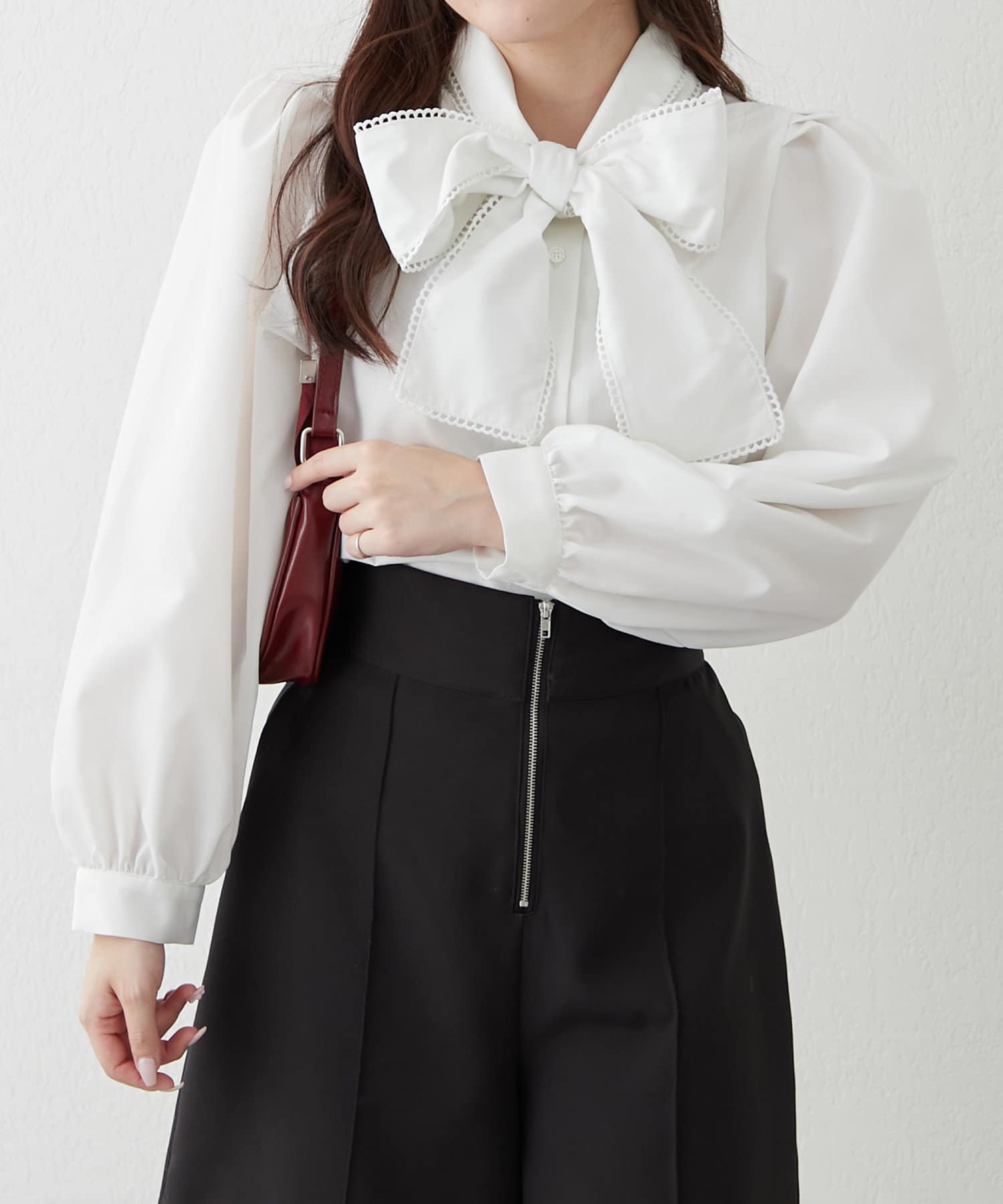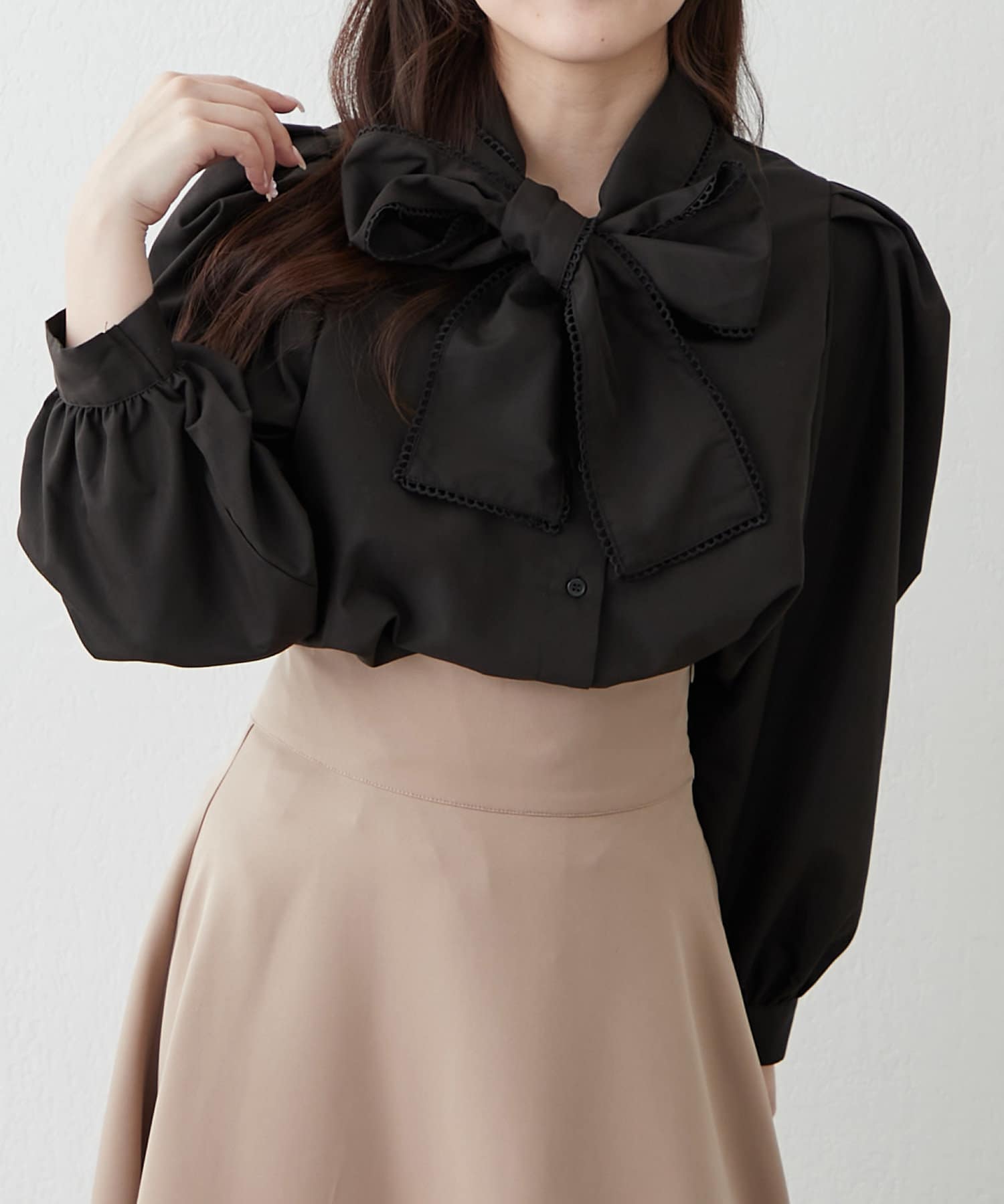 ・レースと大きなボウタイが目を惹く可愛らしいブラウス。