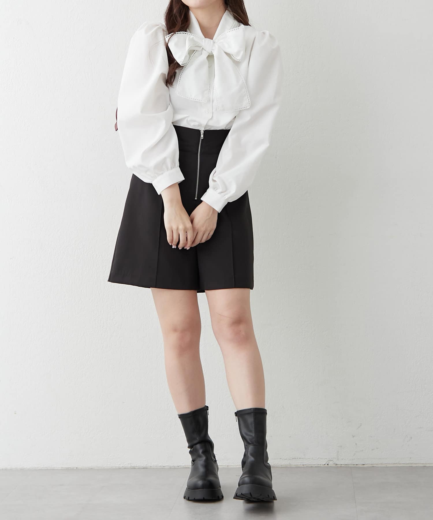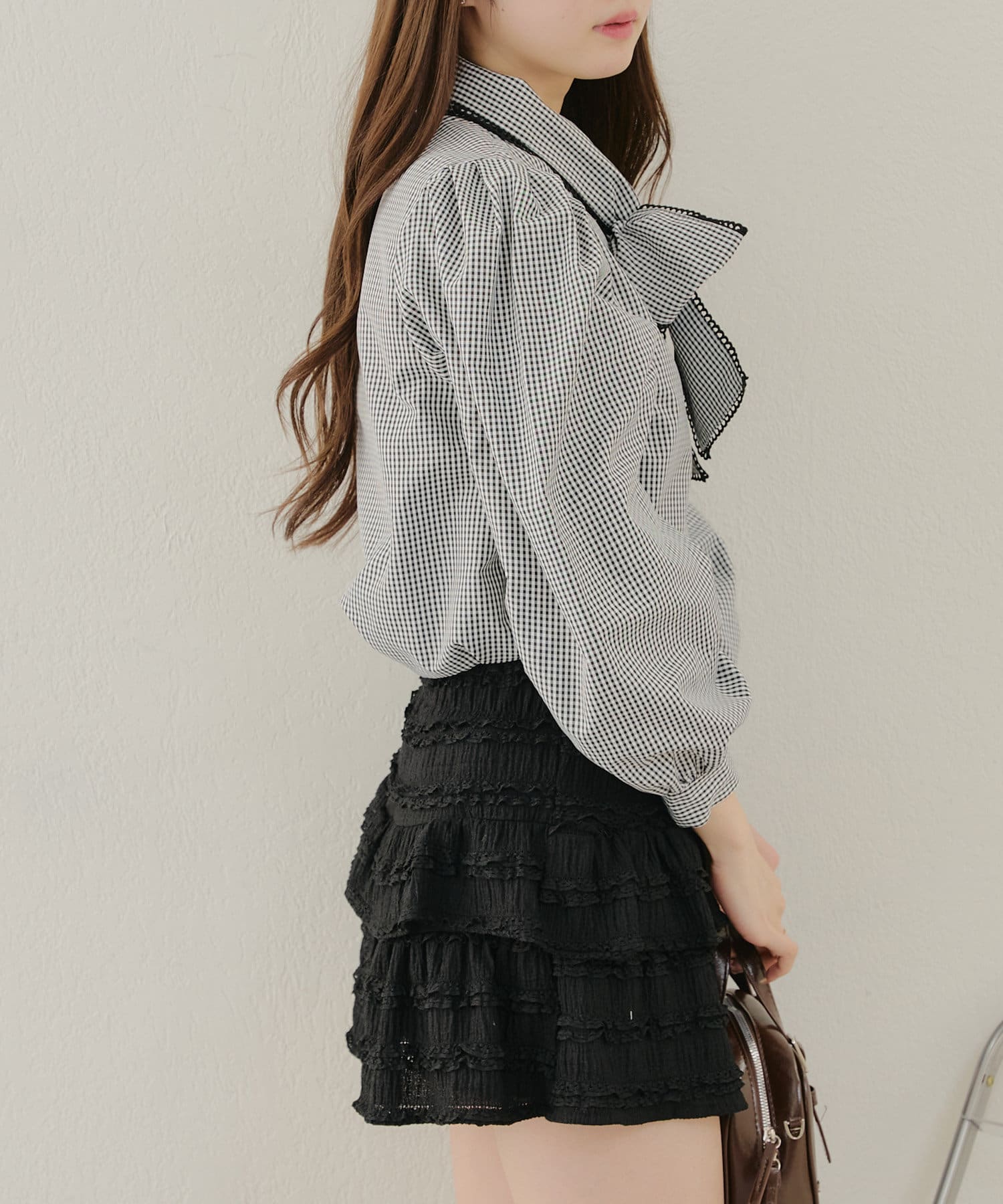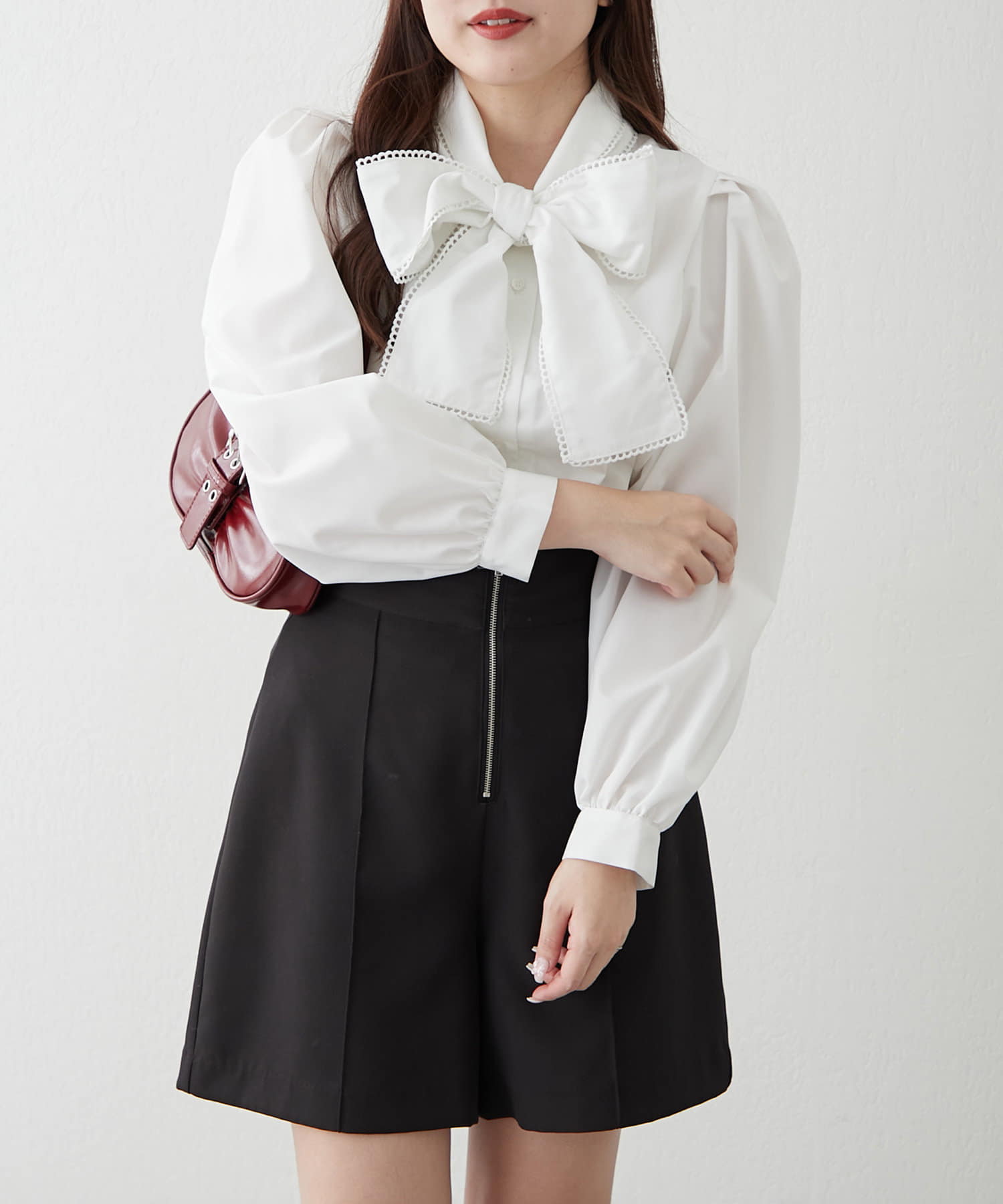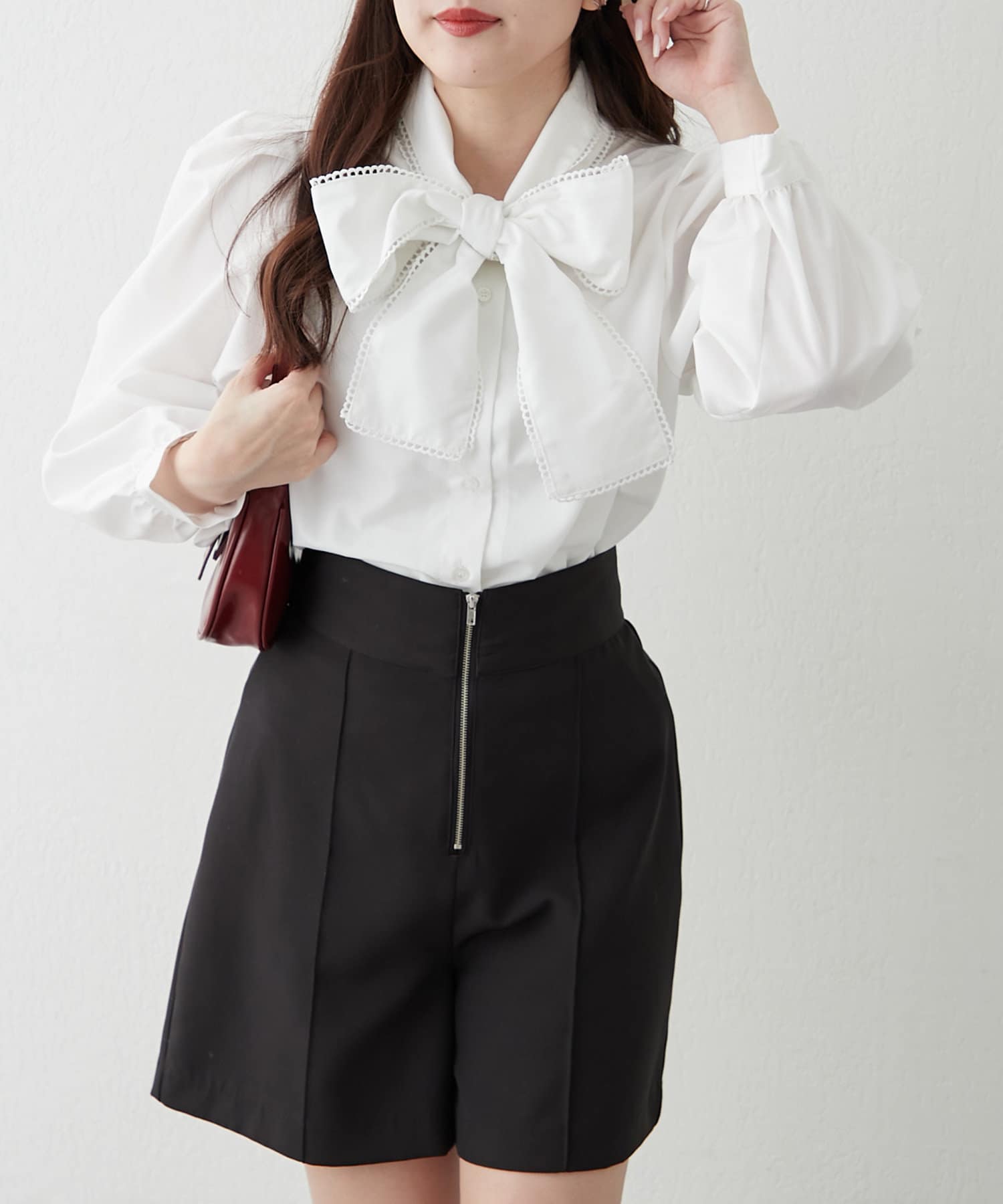 ・レースと大きなボウタイが目を惹く可愛らしいブラウス。