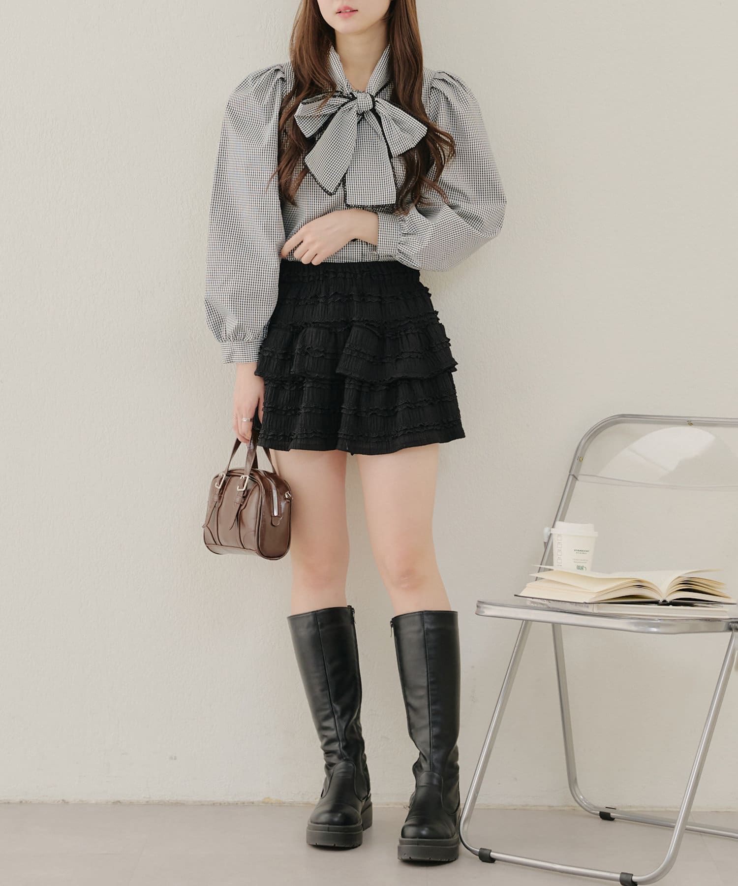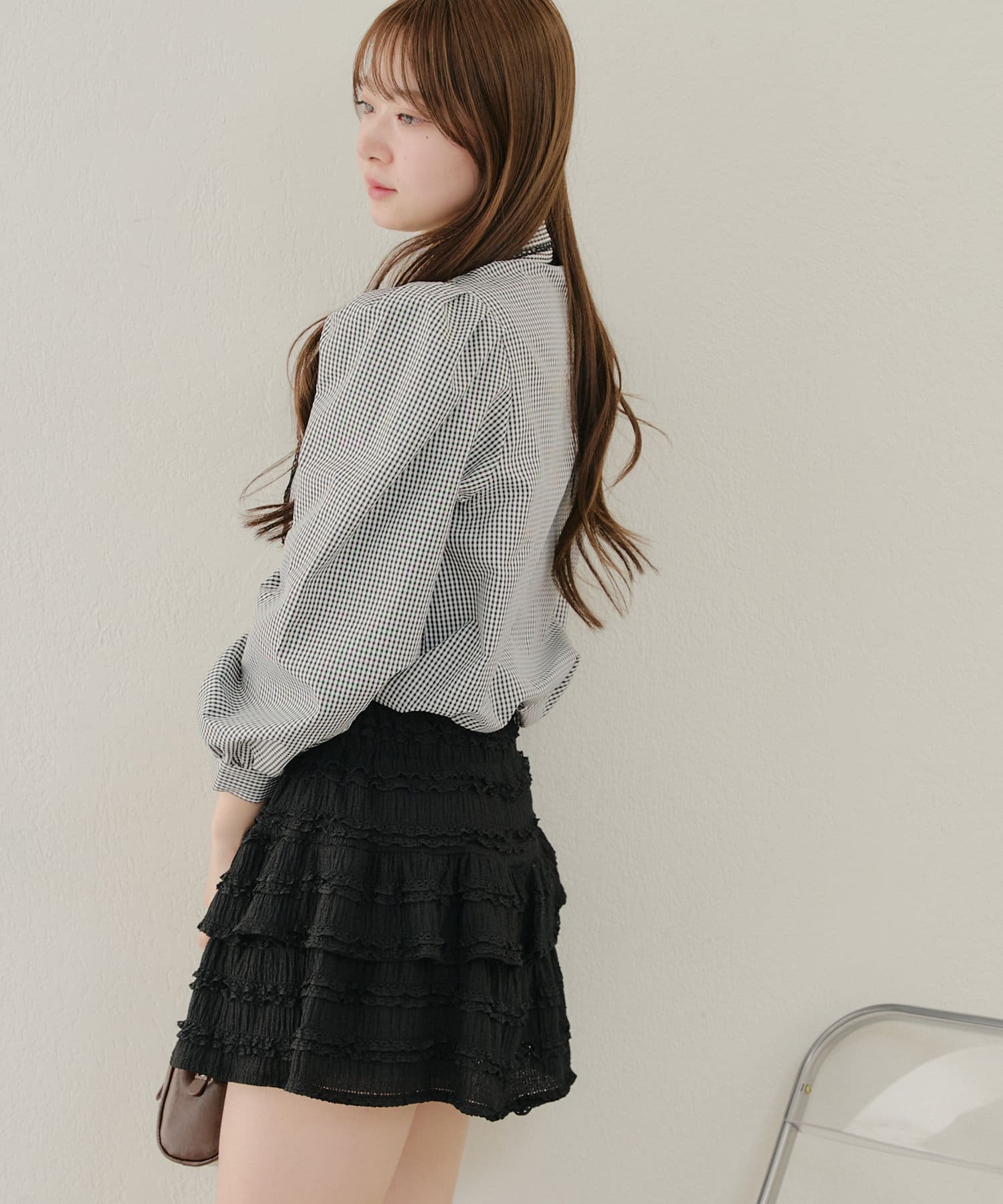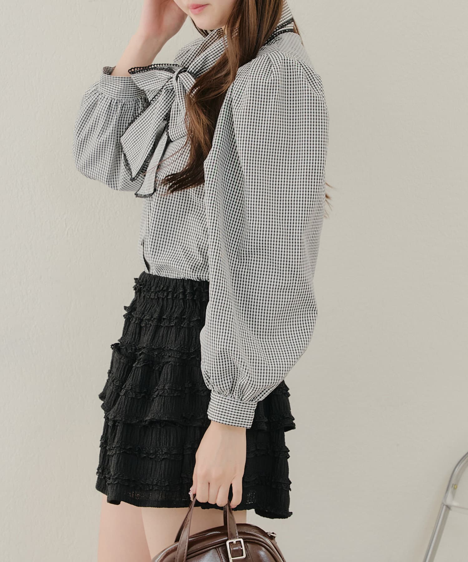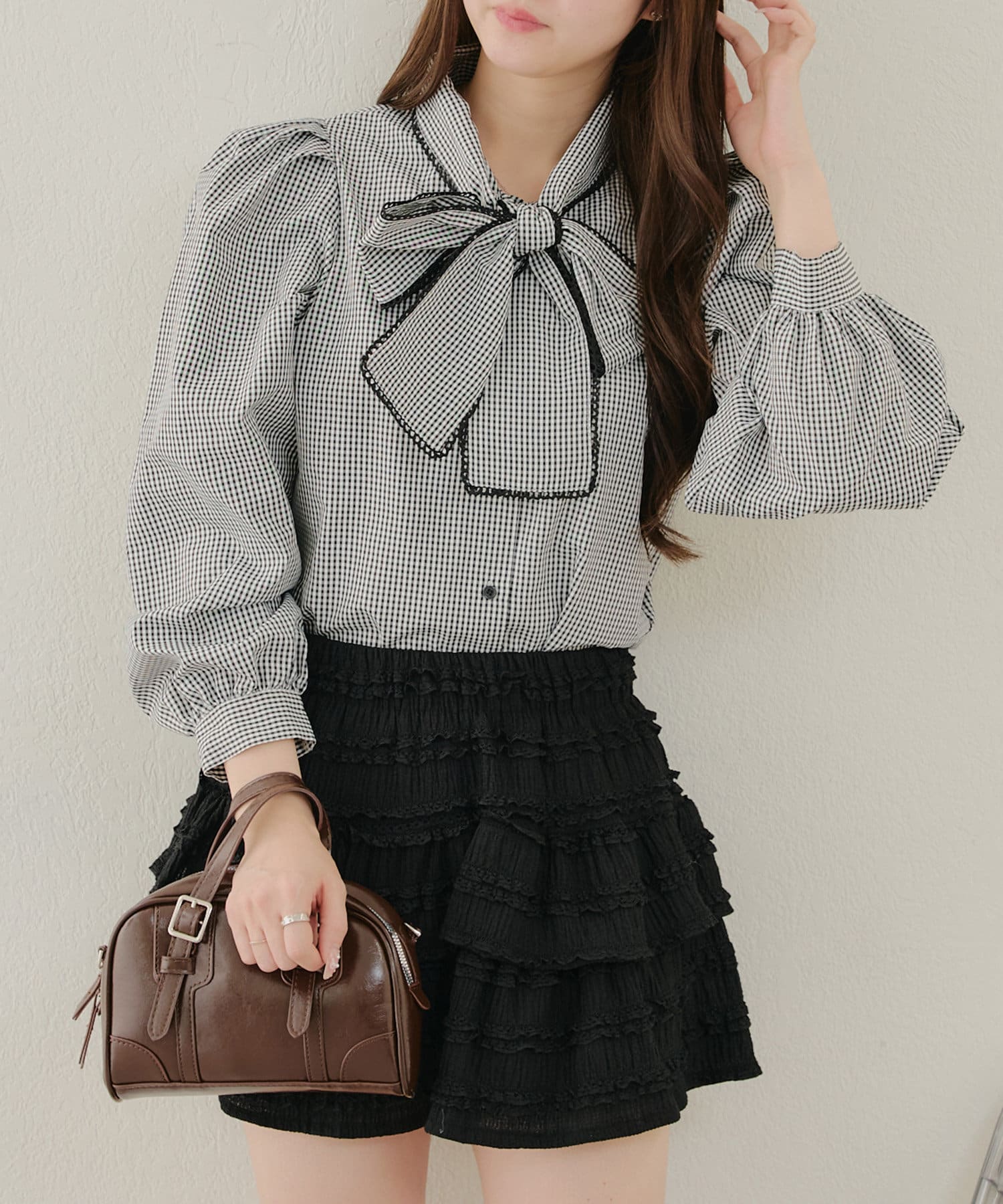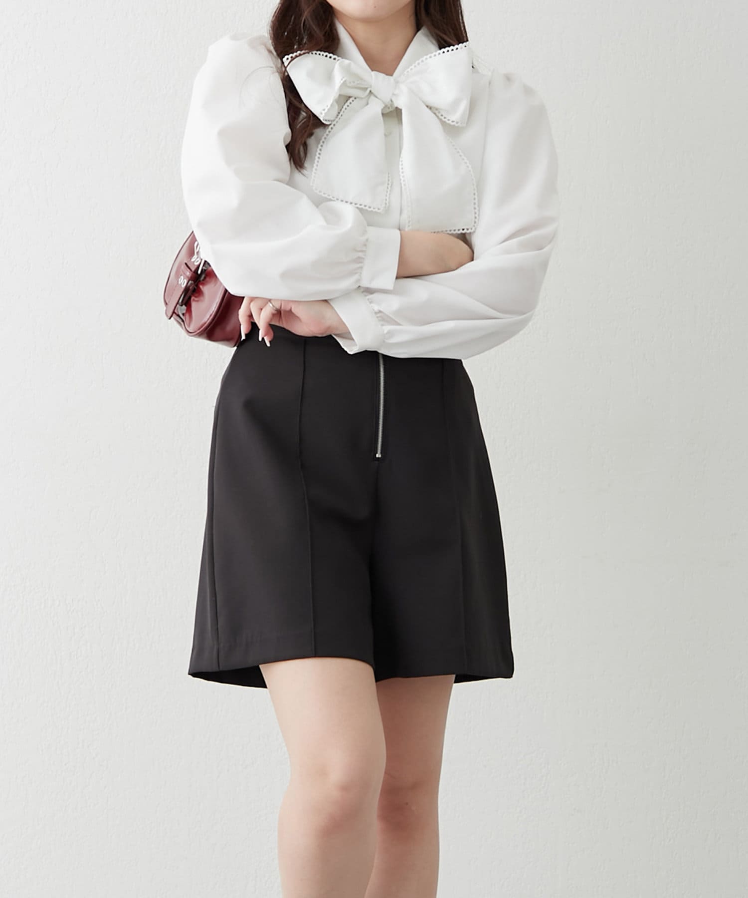 ・レースと大きなボウタイが目を惹く可愛らしいブラウス。