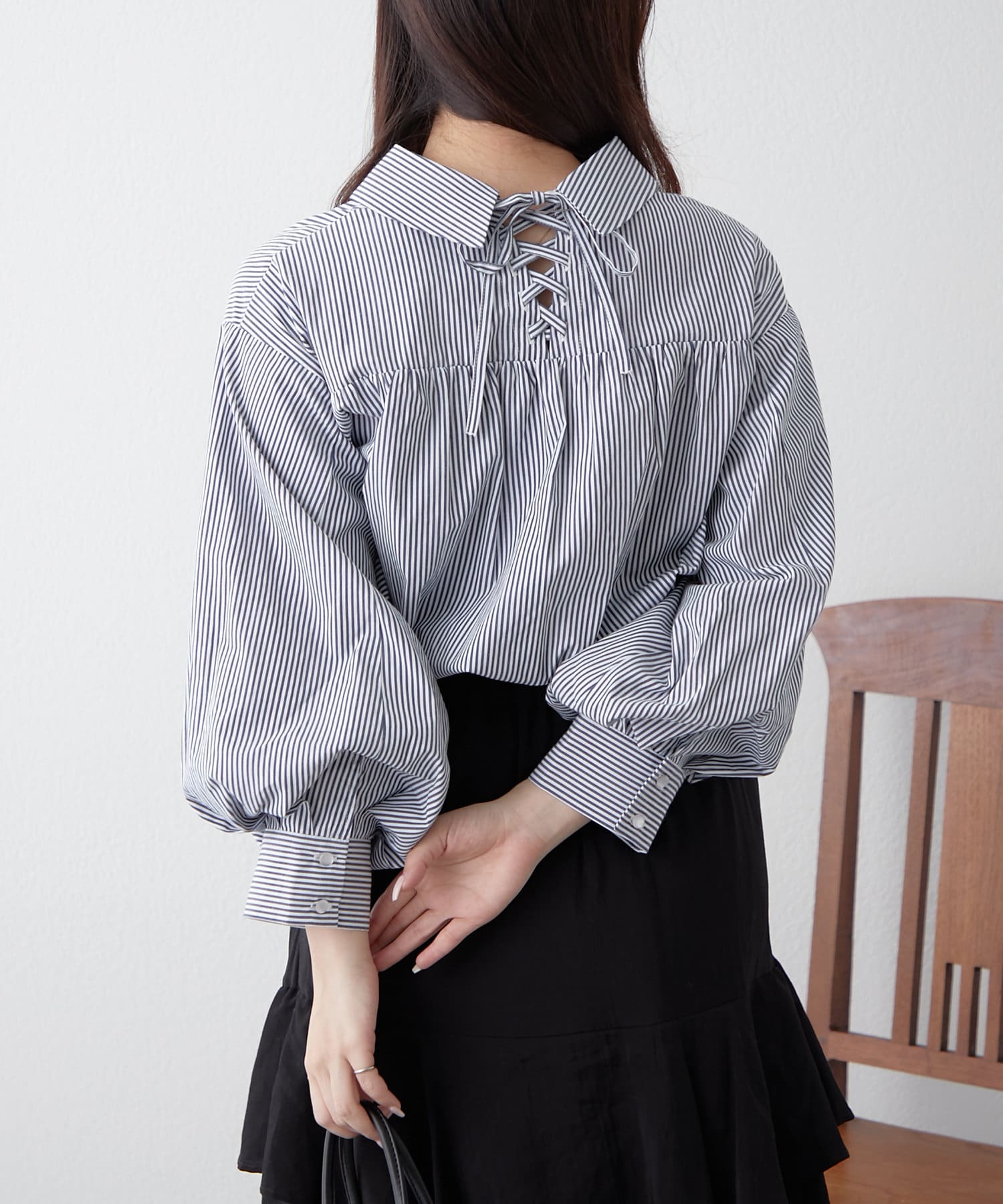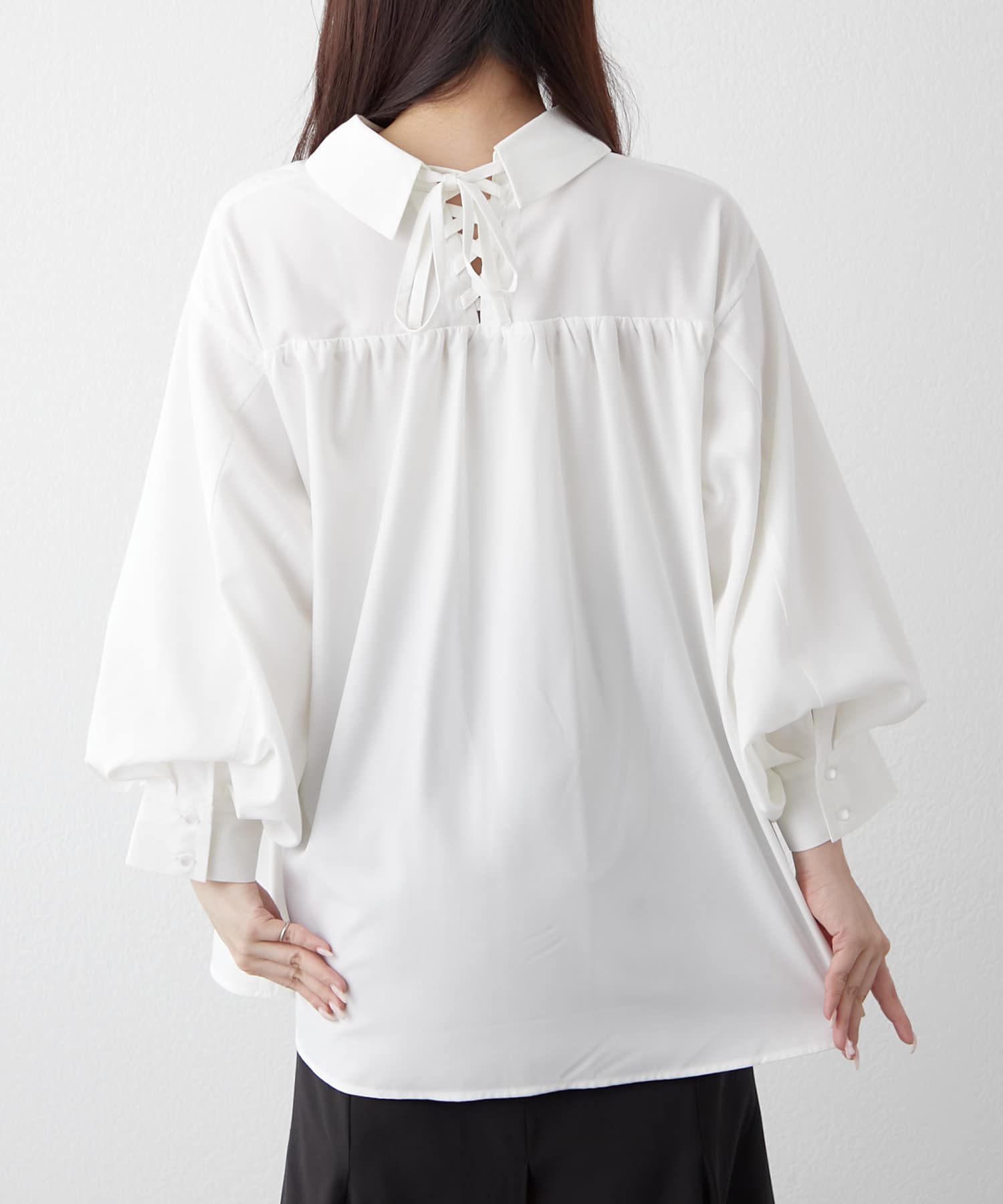 ◇バックリボンが女性らしいバックレースアップブラウス◇