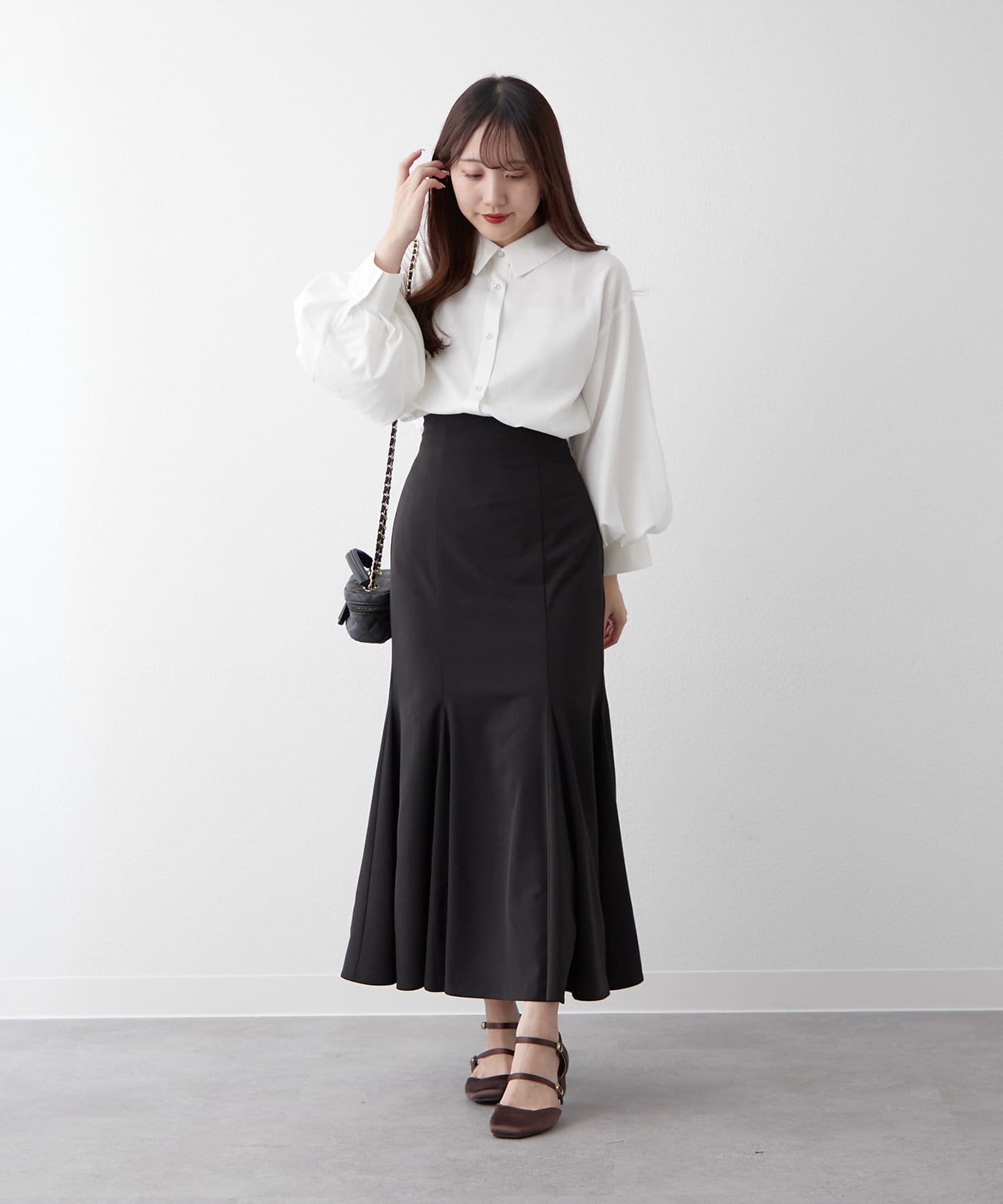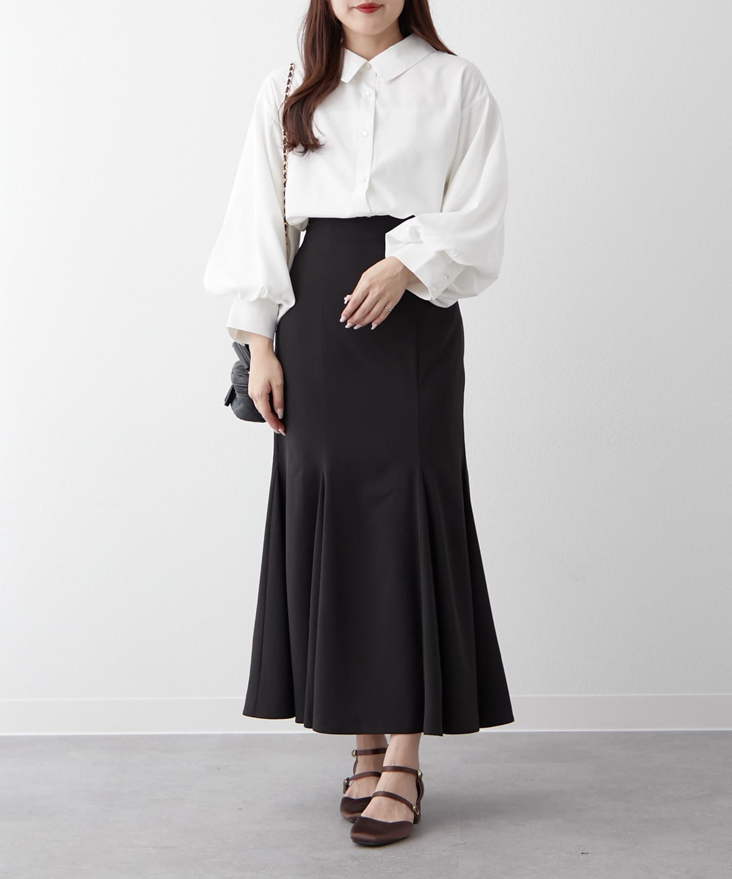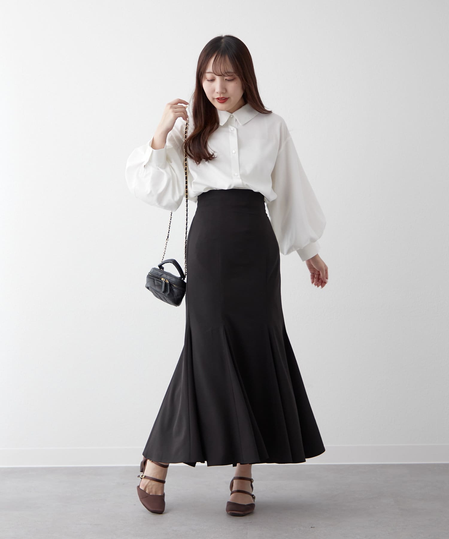 ・ロングスカートやスラックスパンツと合わせてオフィスコーデに。