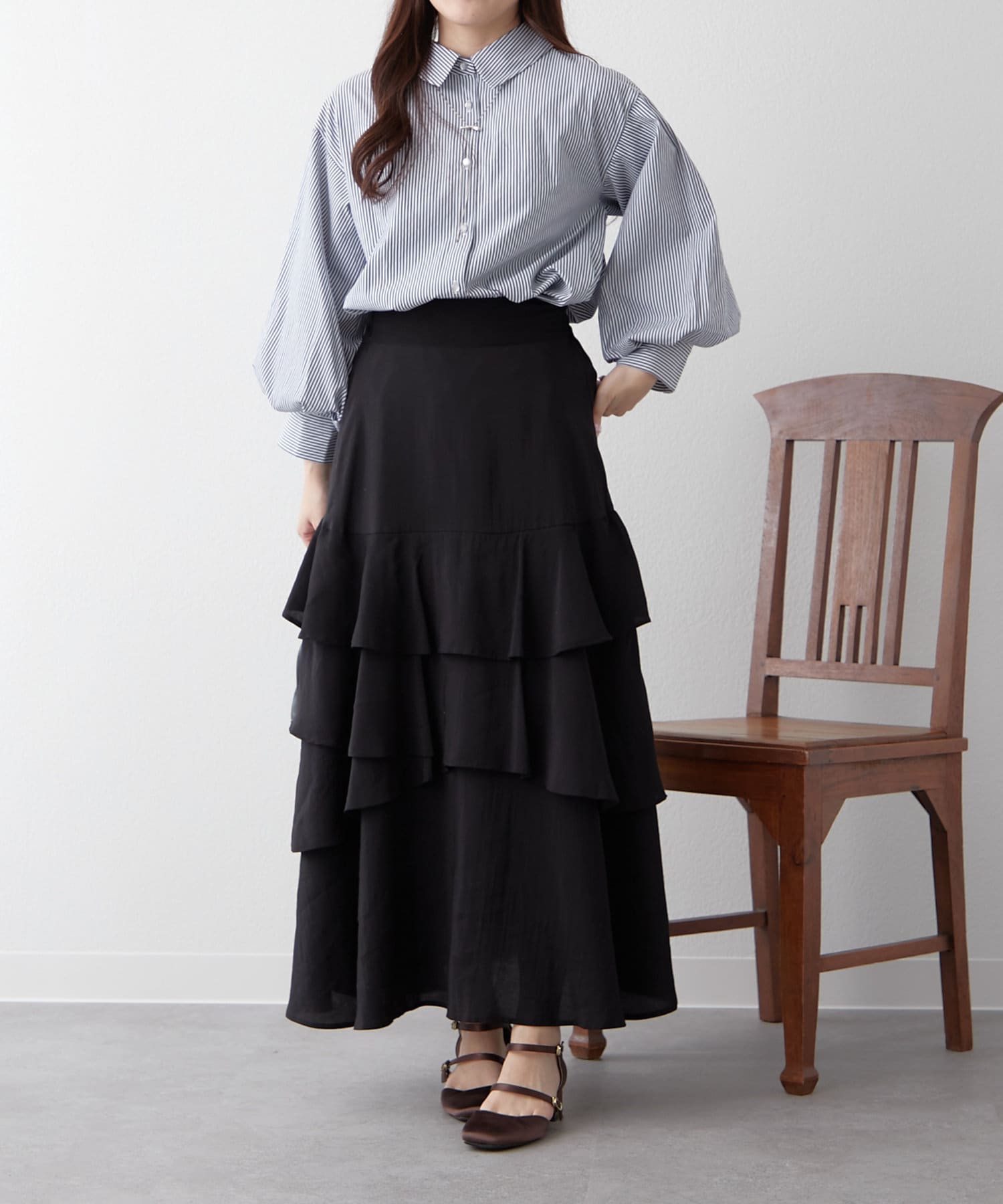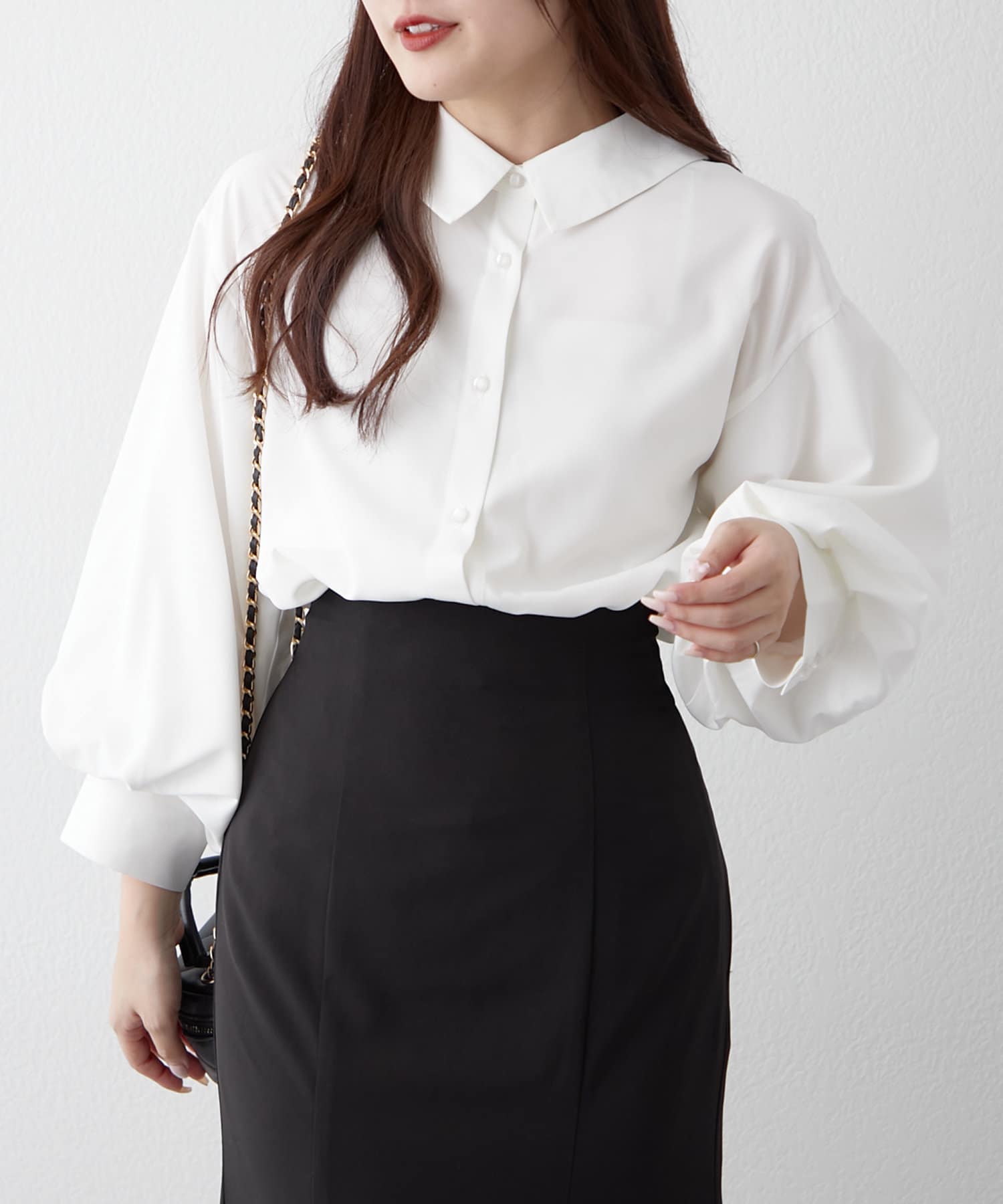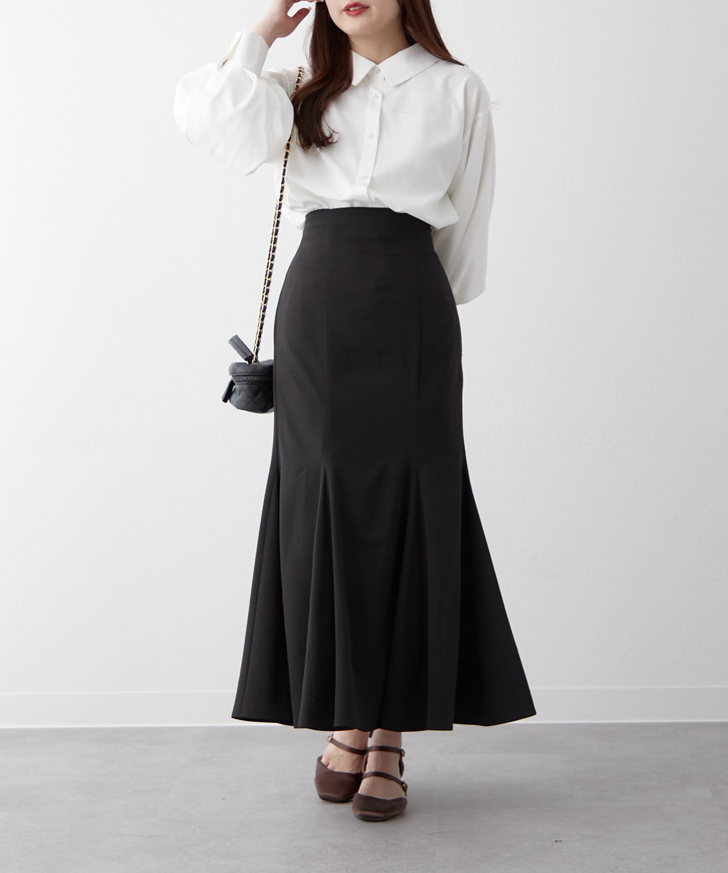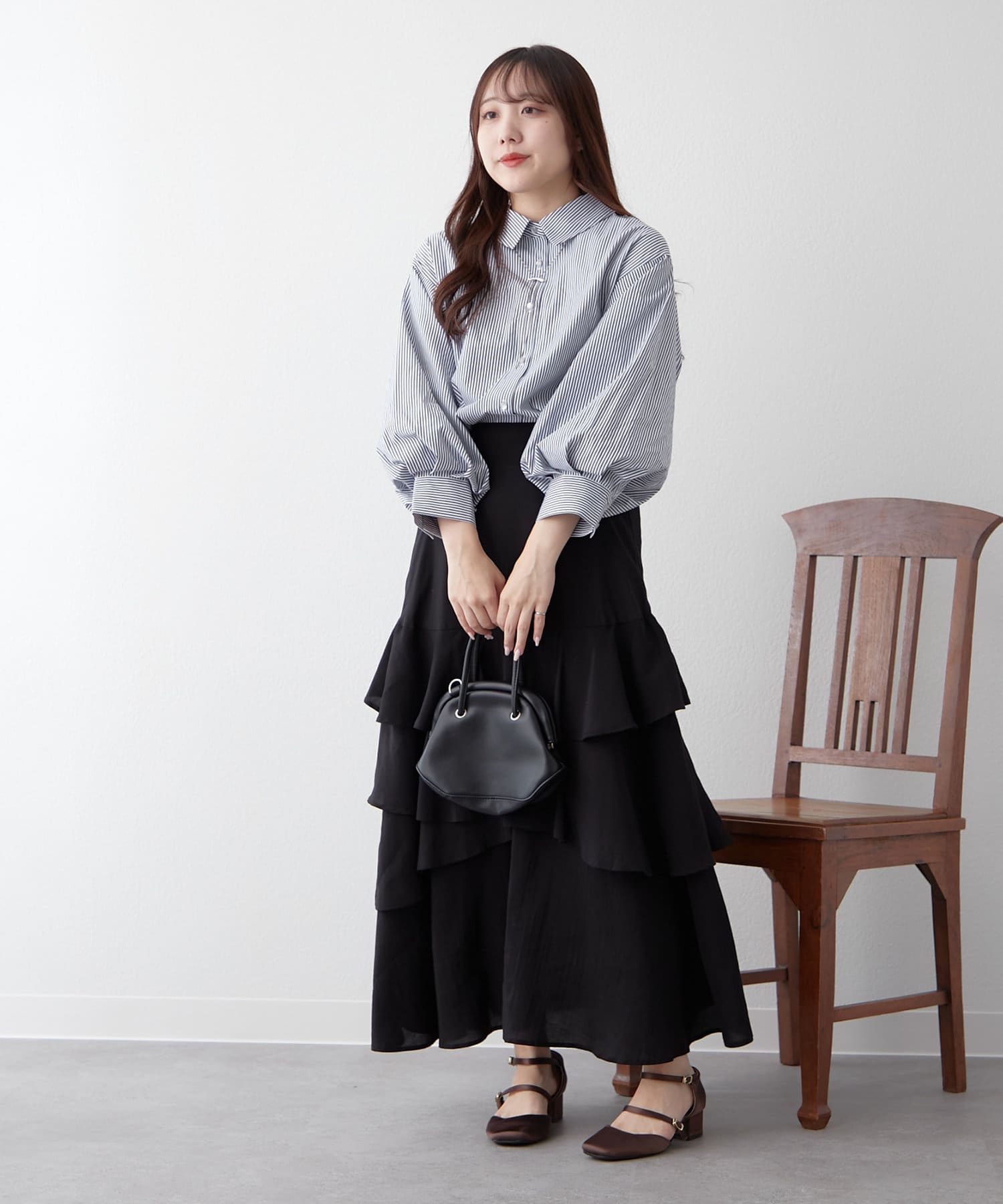 ・ロングスカートやスラックスパンツと合わせてオフィスコーデに。