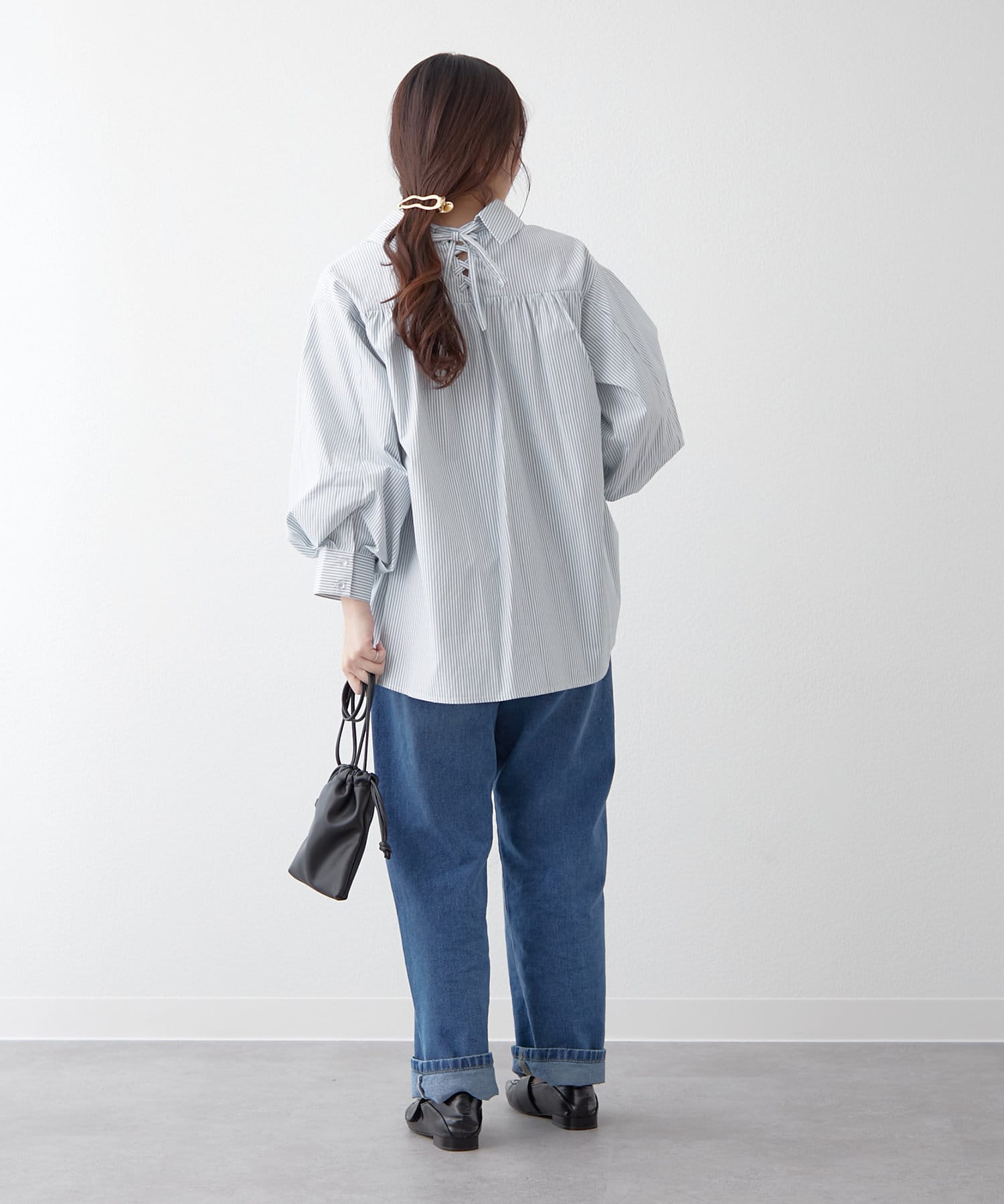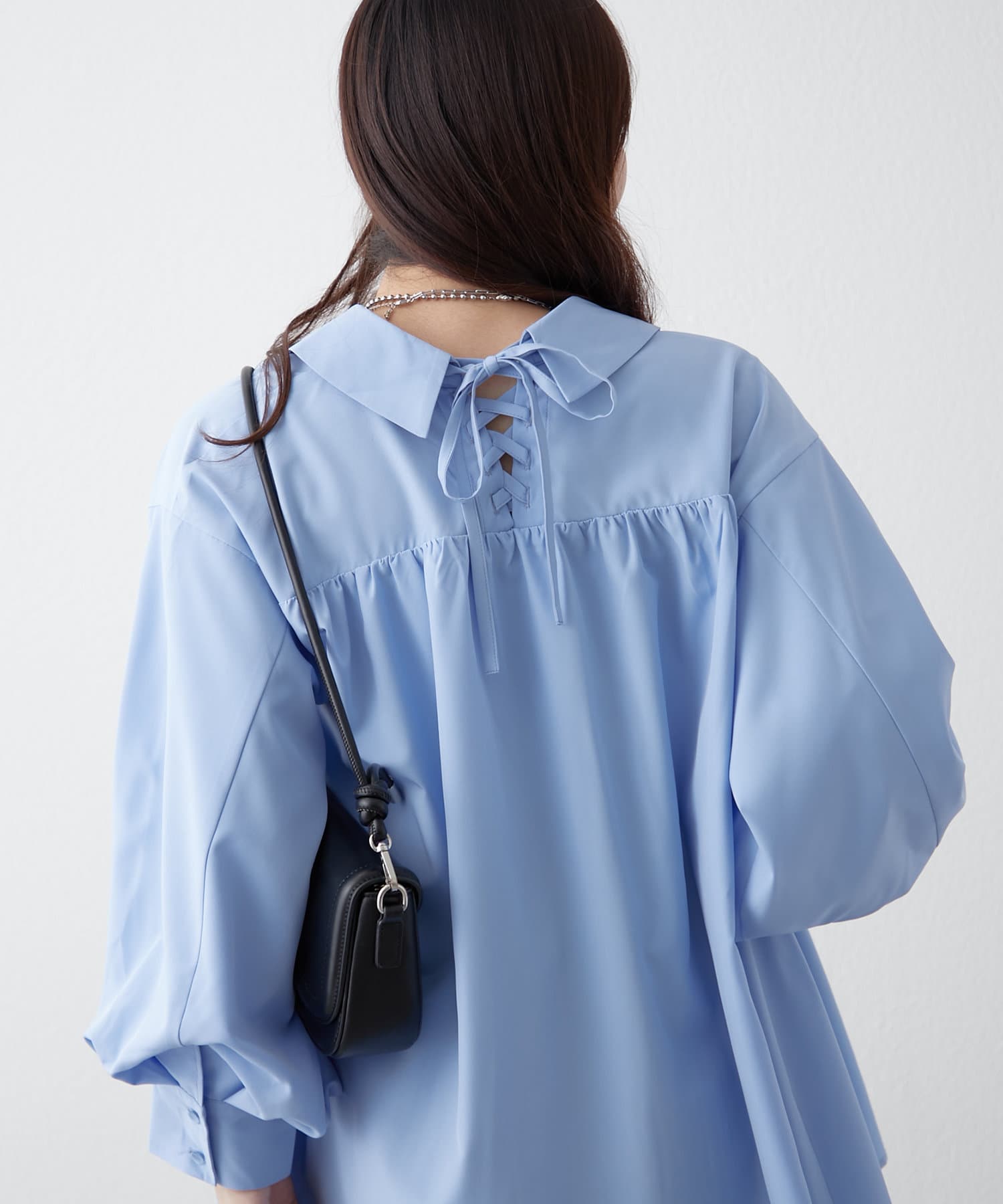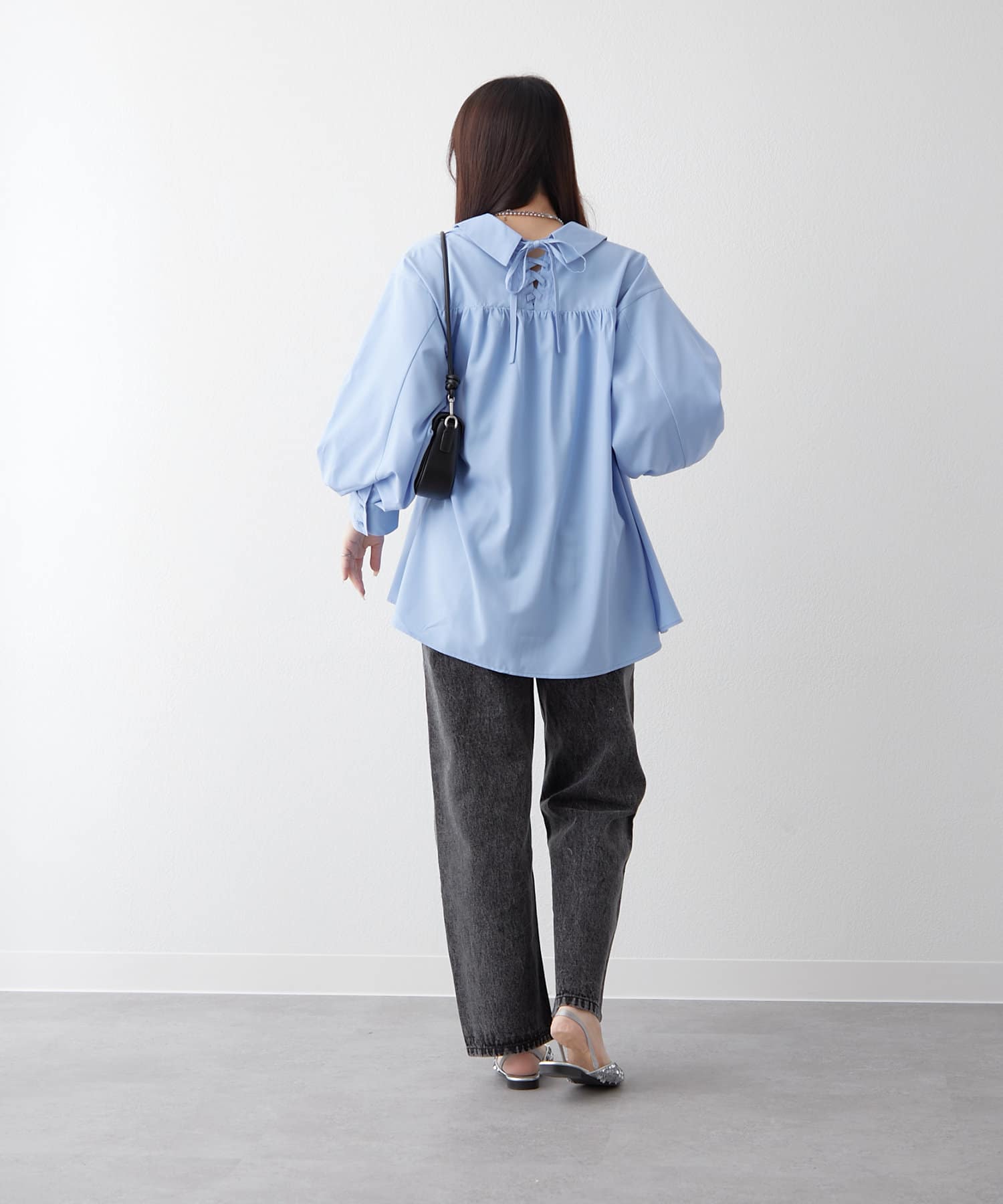 【春の新作】【ON・OFF問わず着まわせる】後レースアップAラインブラウス