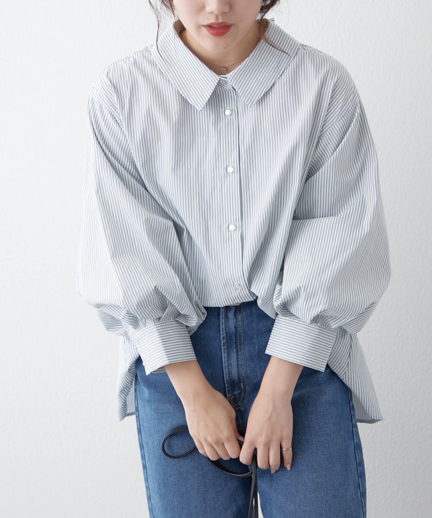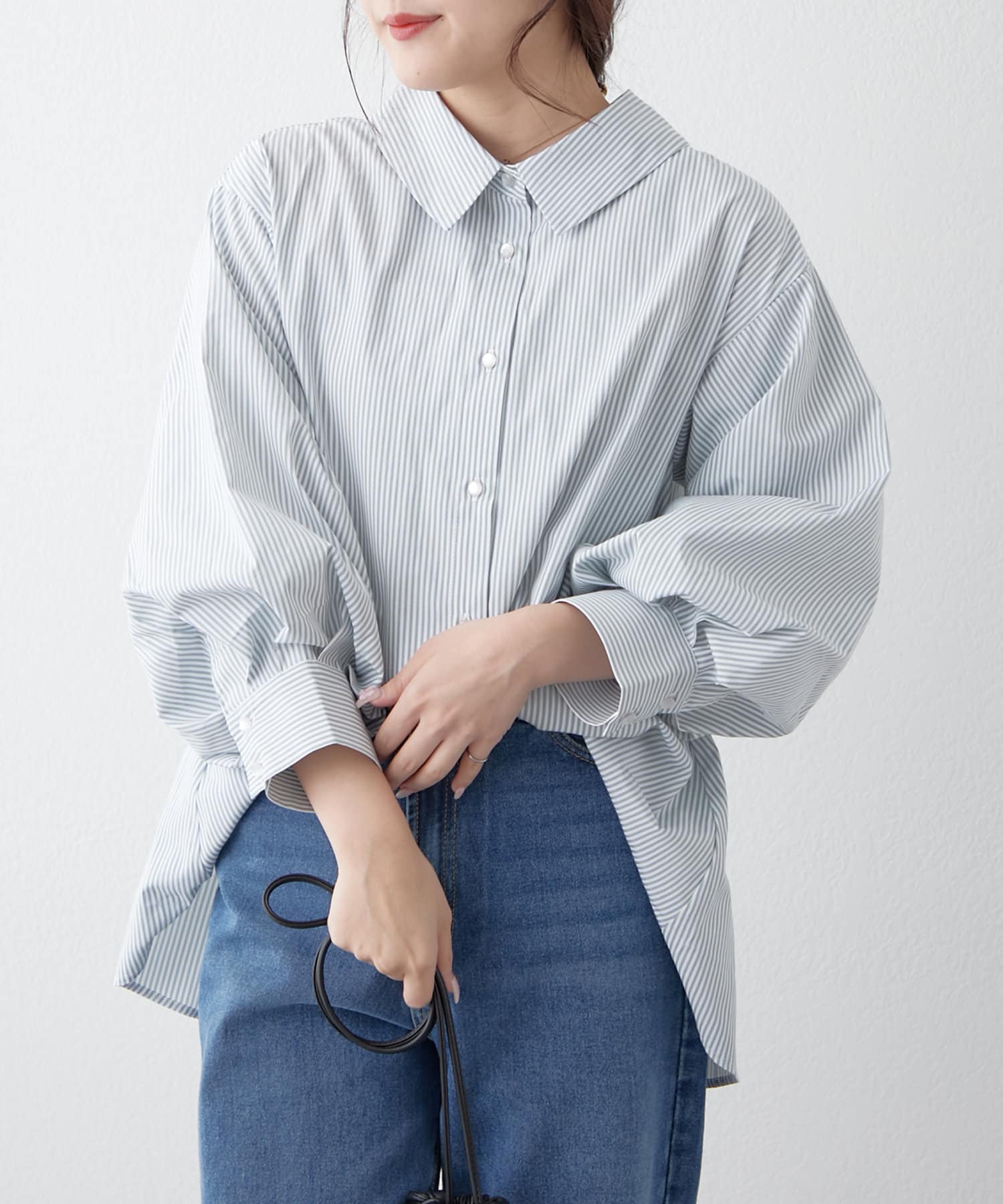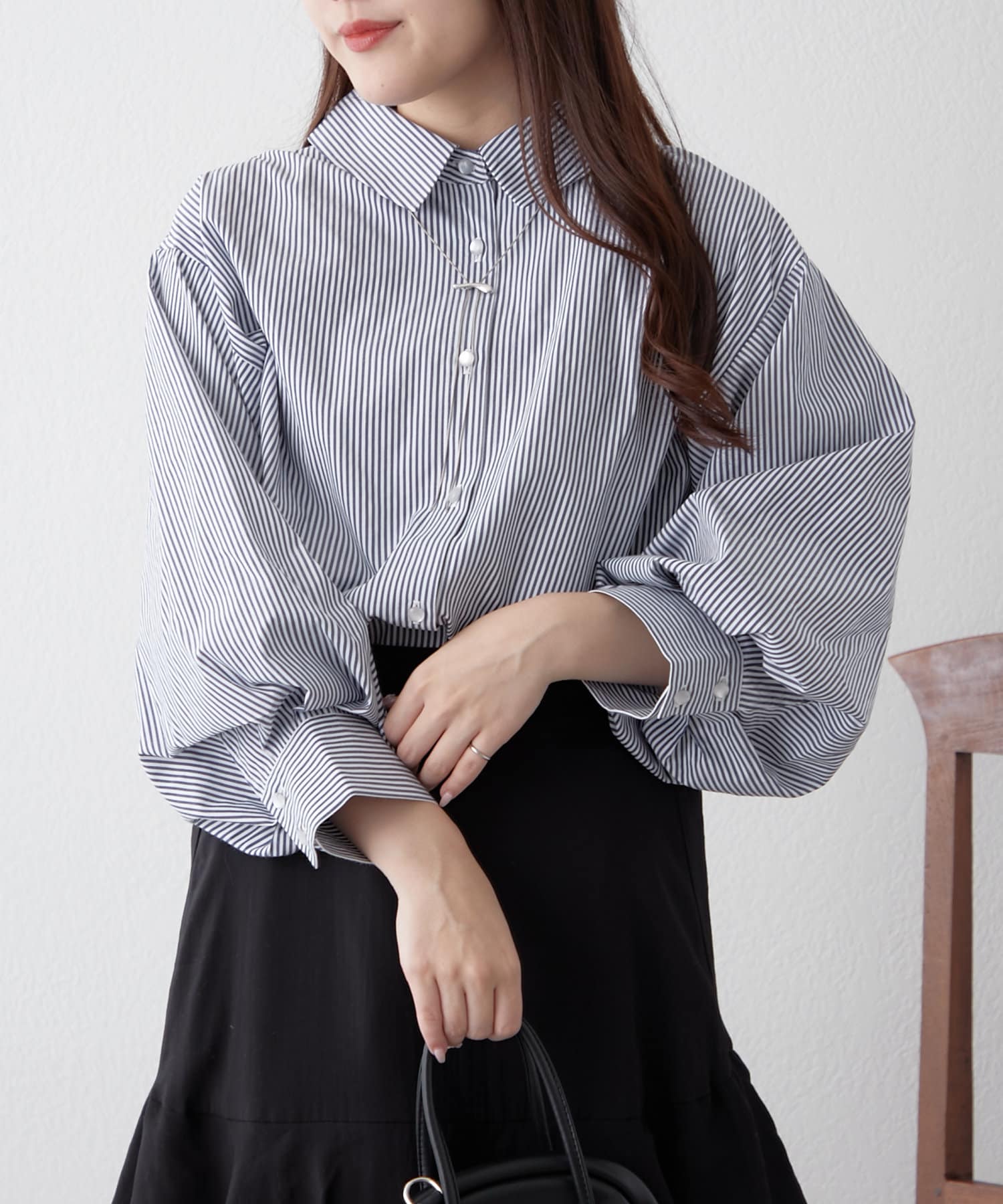 【ストライプ】ミント/ネイビー 表地ポリエステル65%、コットン35% 裏地ポリエステル100%原産国 中国 サイズ FREE カテゴリ トップス > シャツ/ブラウス(ボタン) タイプ レディース ギフト ラッピング 可 取り扱い - アイテムサイズ