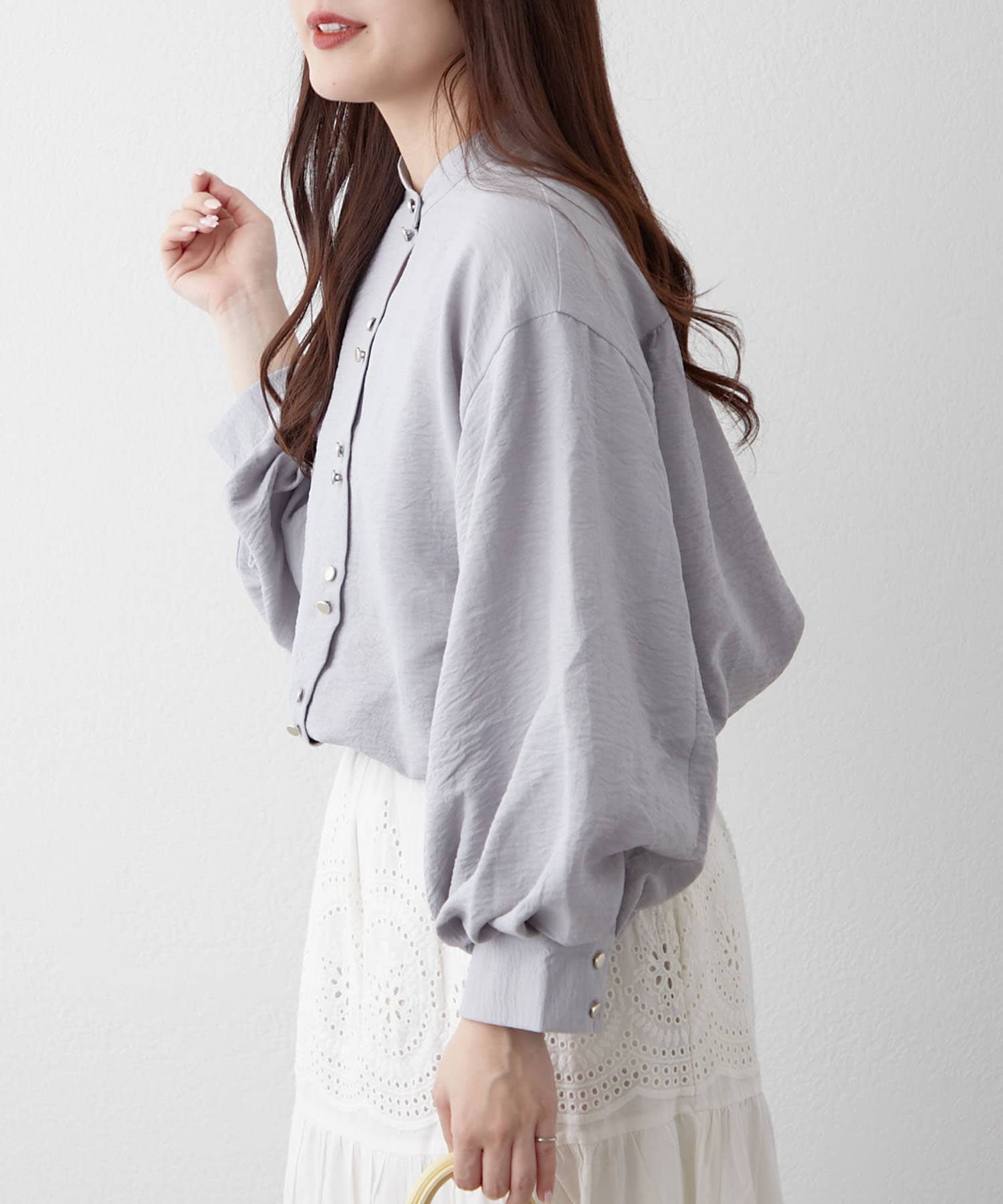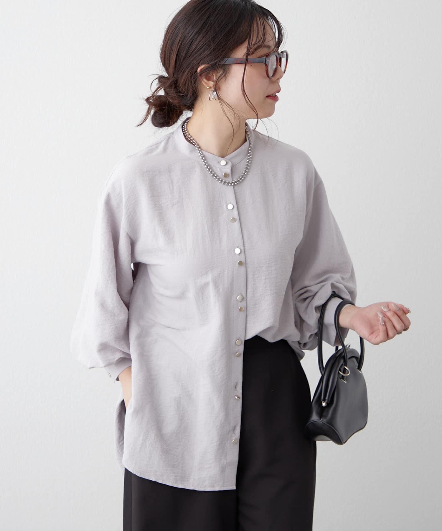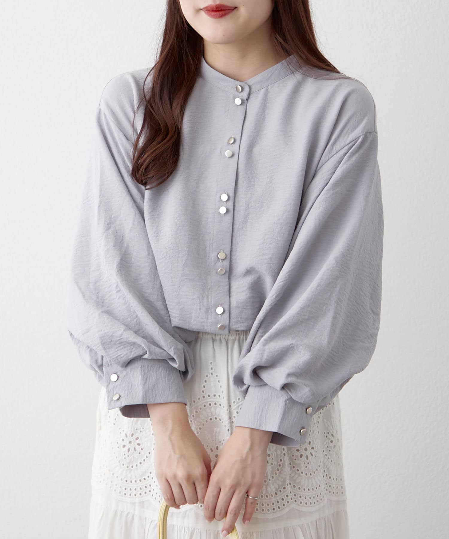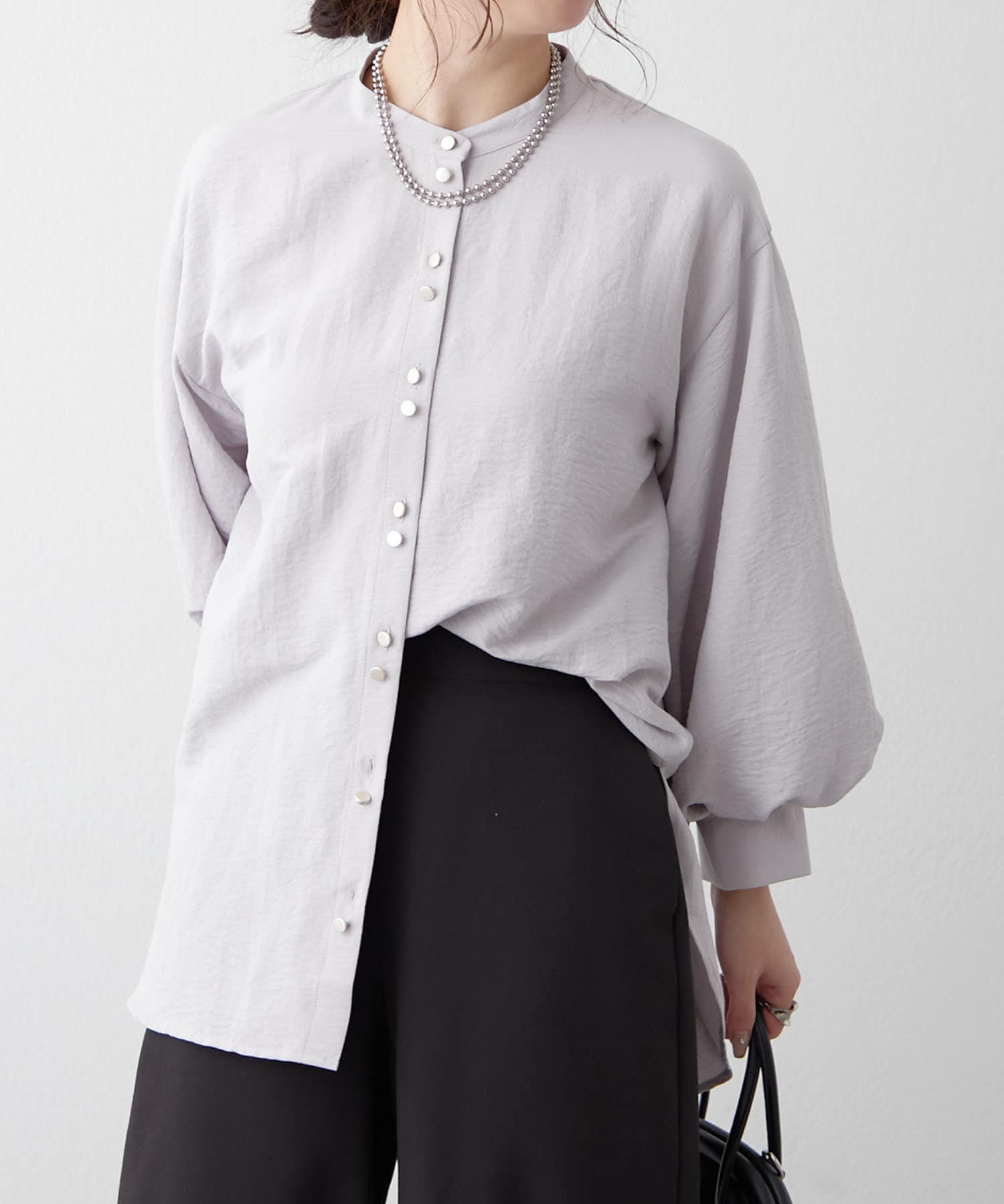 TOP > Remind me and forever > レディース > トップス > シャツ/ブラウス(ボタン) > 【人気シリーズ】W釦バンドカラーシャツ