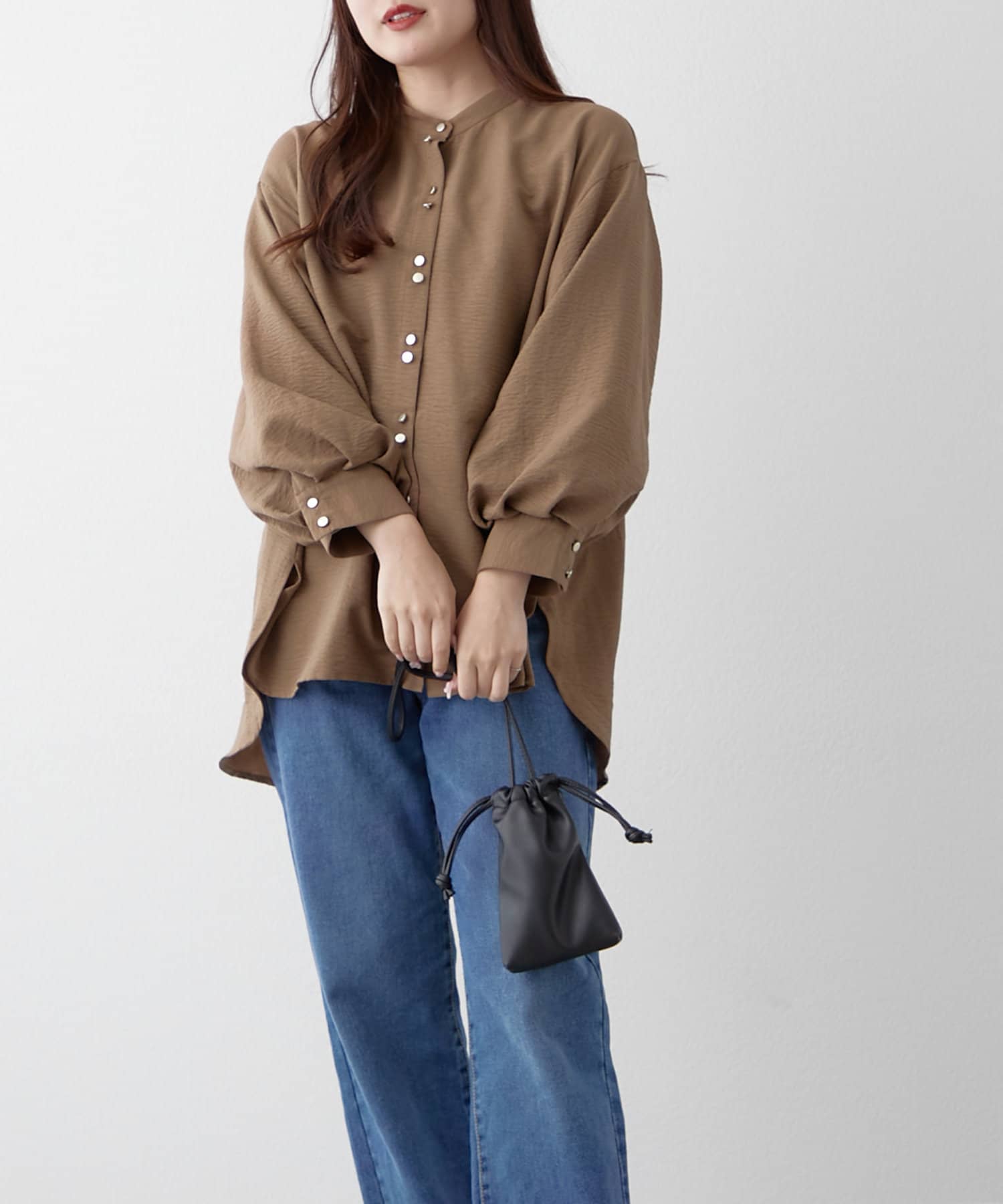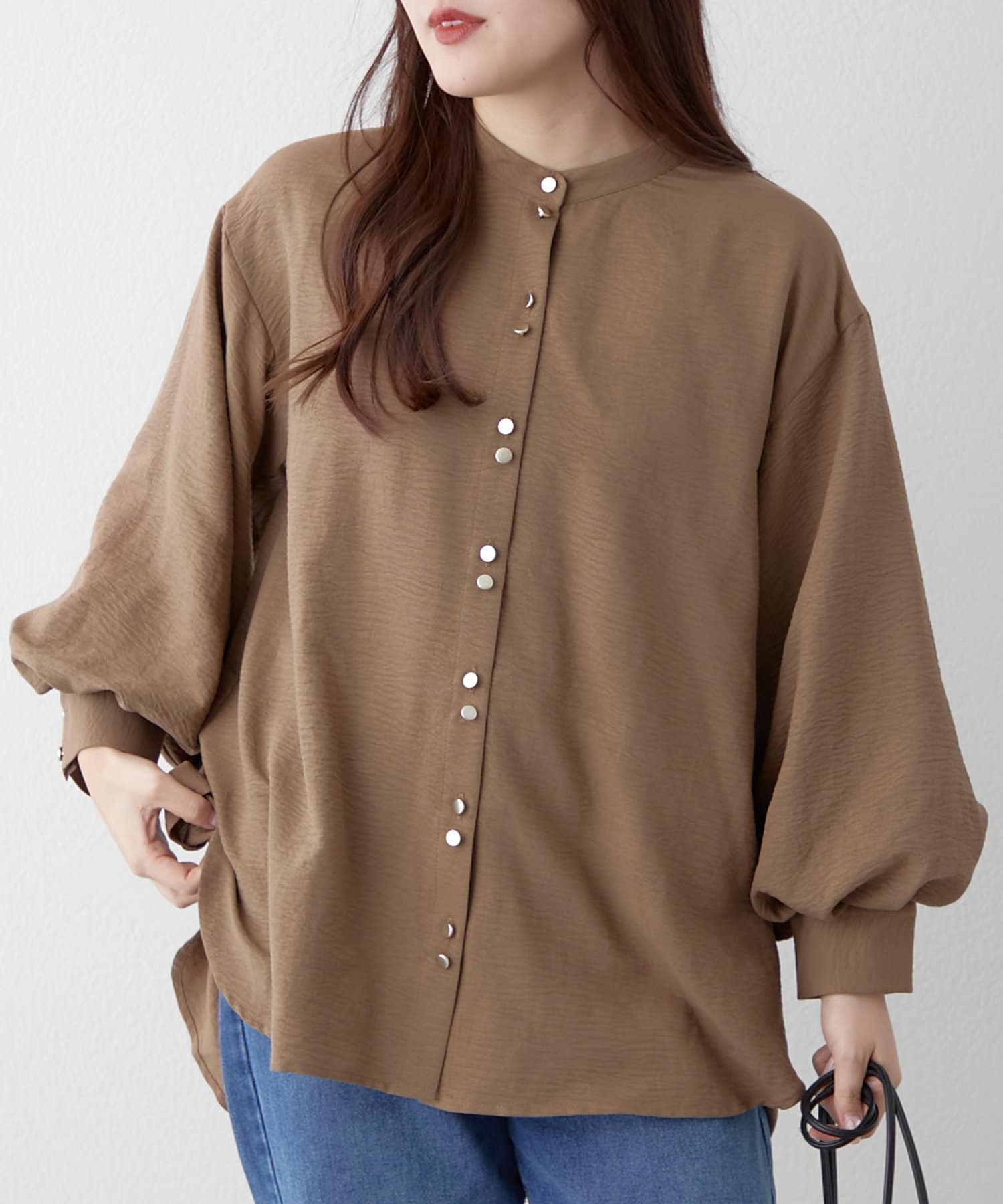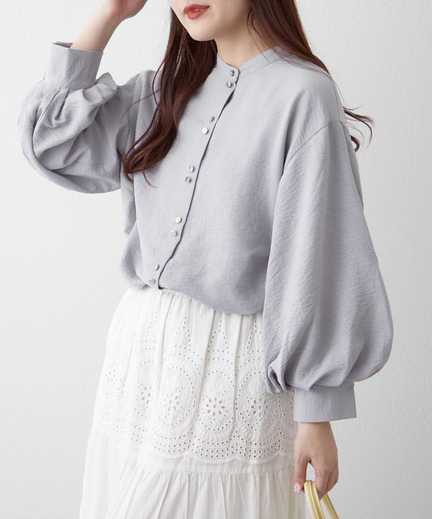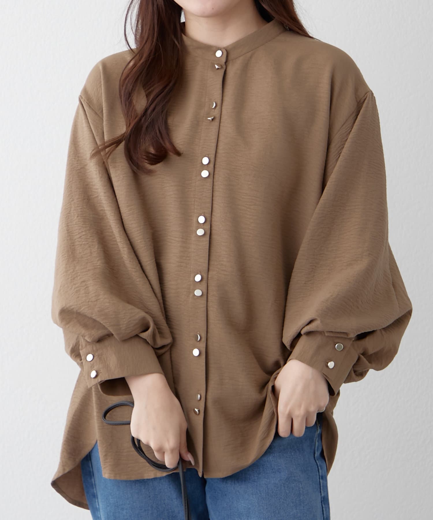 TOP > Remind me and forever > レディース > トップス > シャツ/ブラウス(ボタン) > 【人気シリーズ】W釦バンドカラーシャツ