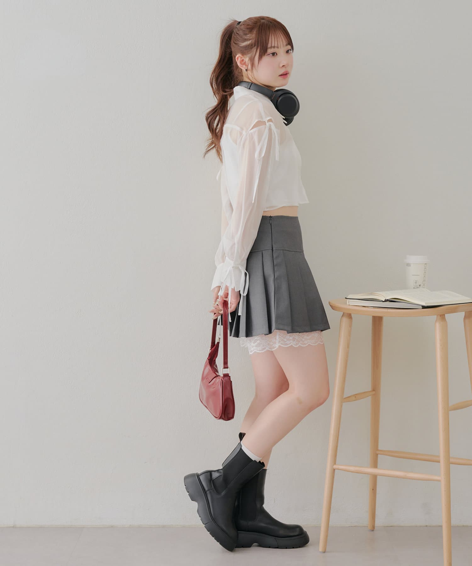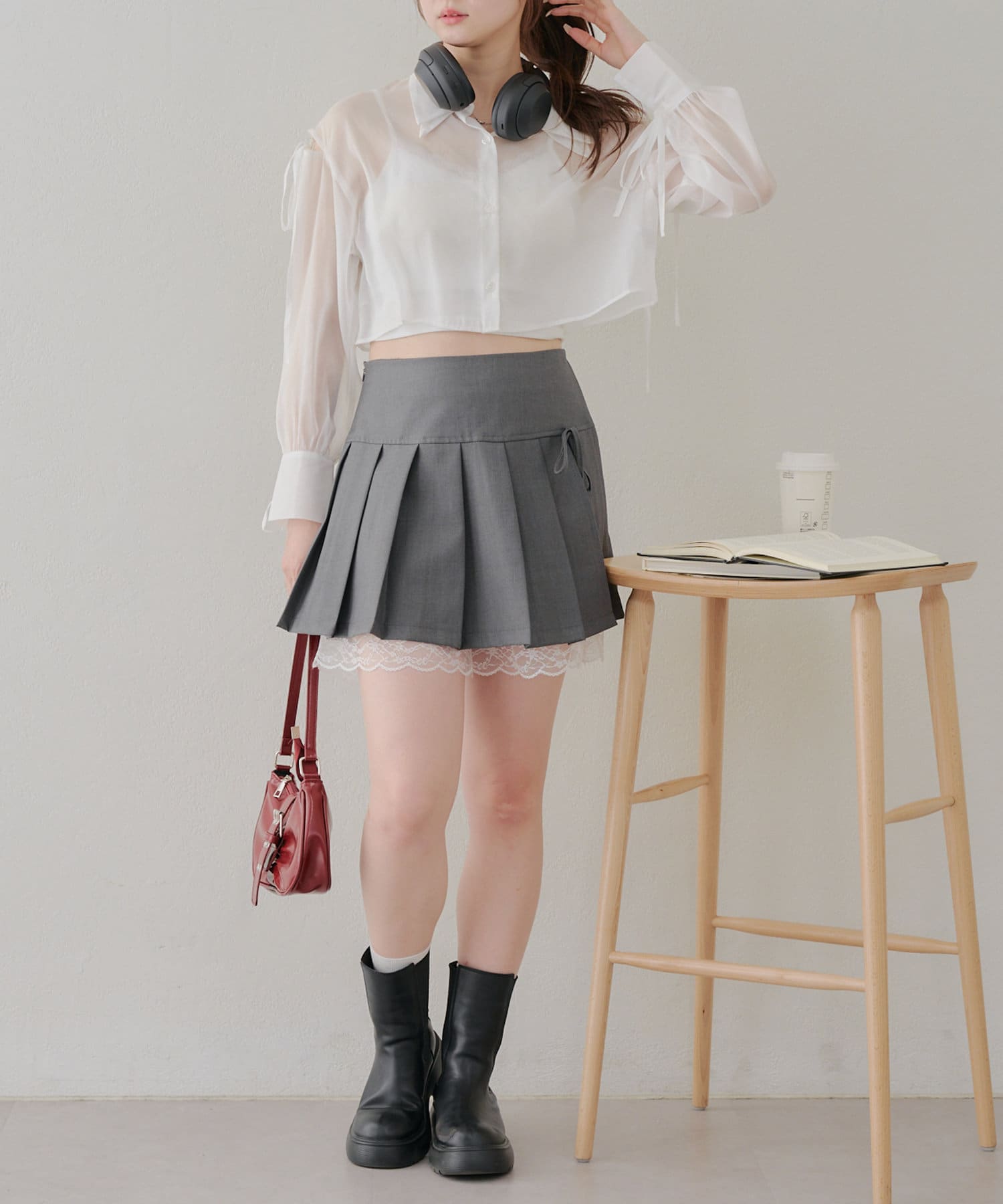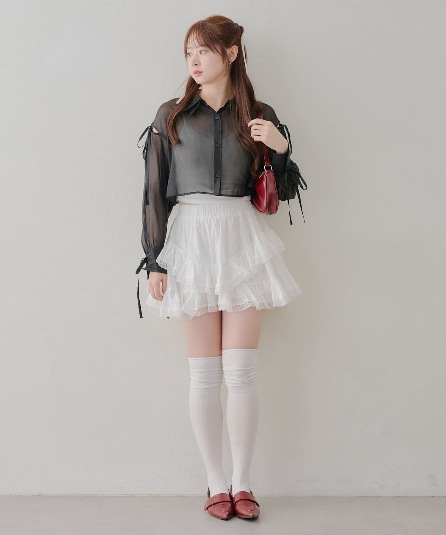 ・ティアードやプリーツ、トレンドのバルーンなどのミニスカ合わせが旬なコーデに