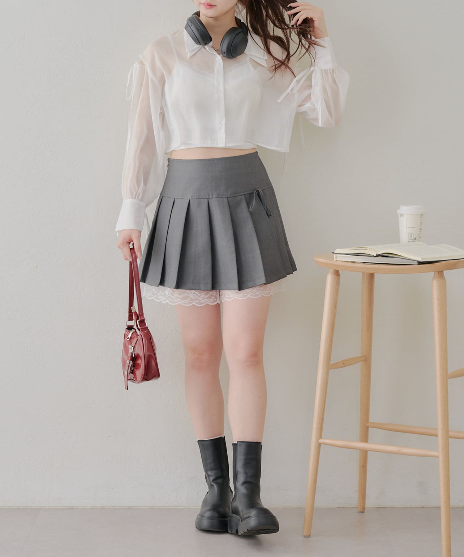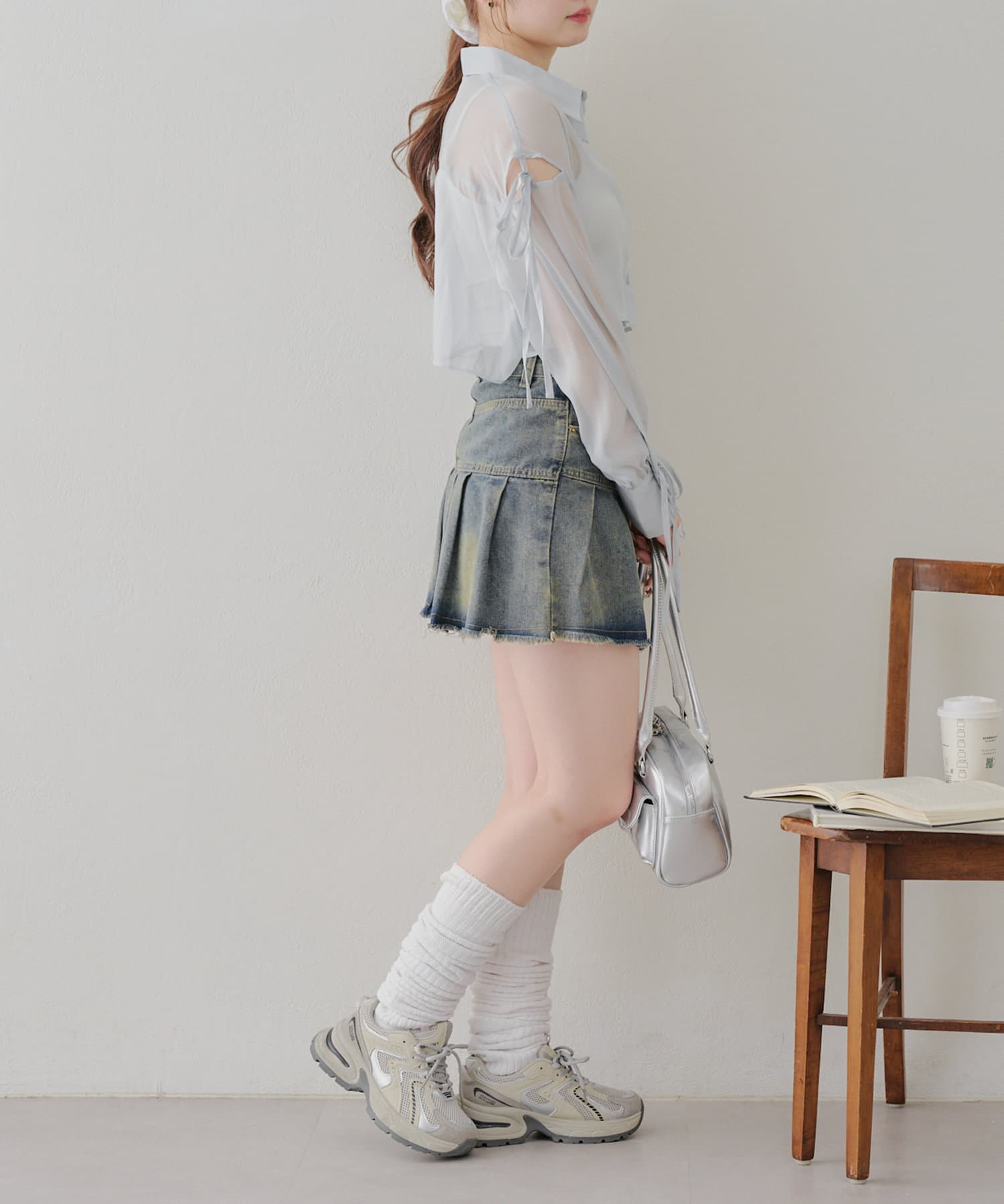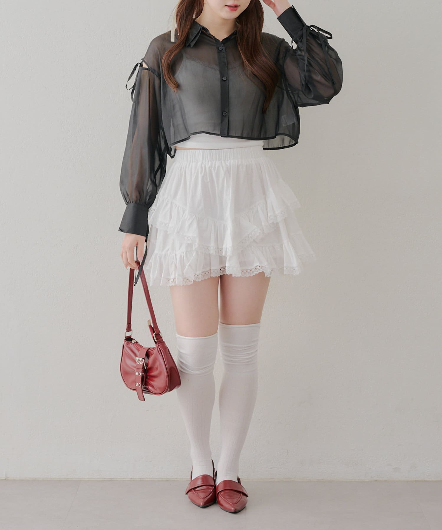 ・ティアードやプリーツ、トレンドのバルーンなどのミニスカ合わせが旬なコーデに